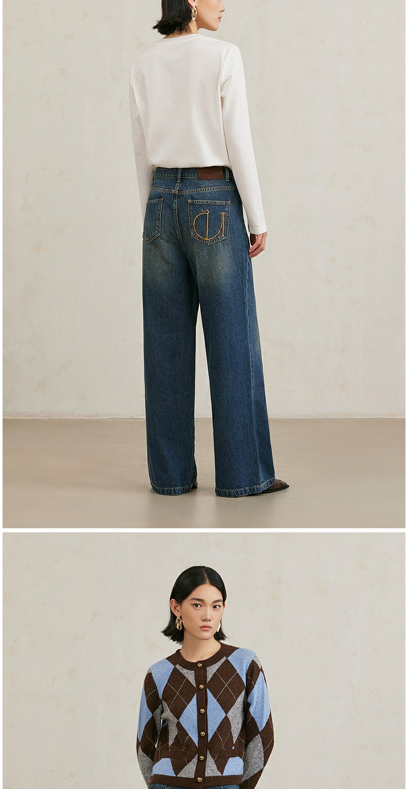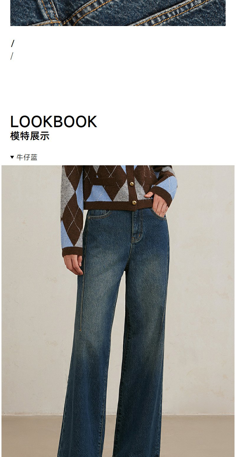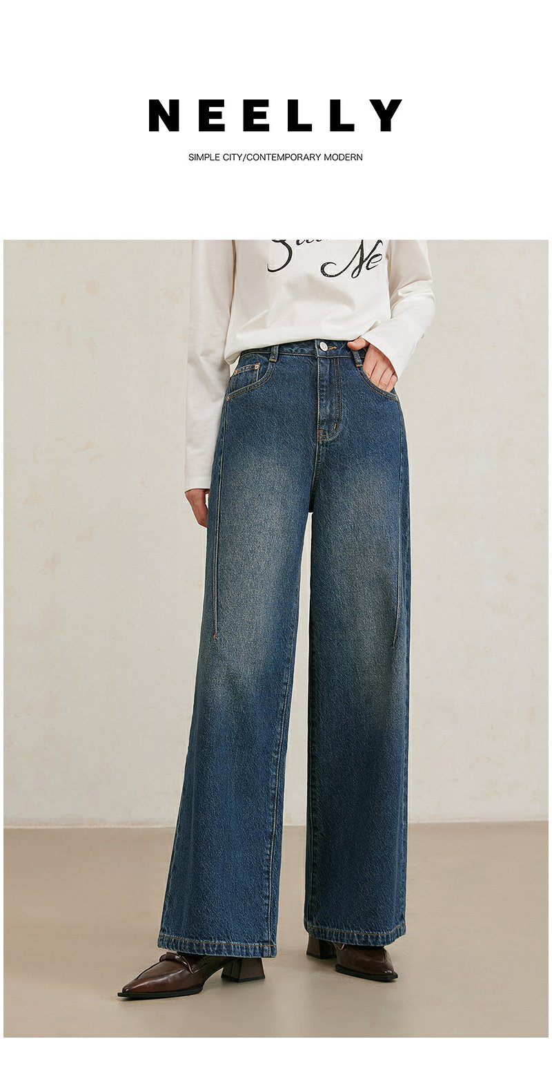 NEELLY纳俪商场同款冬季新款复古水洗宽松百搭直筒裤长裤女牛仔裤N25104H04423