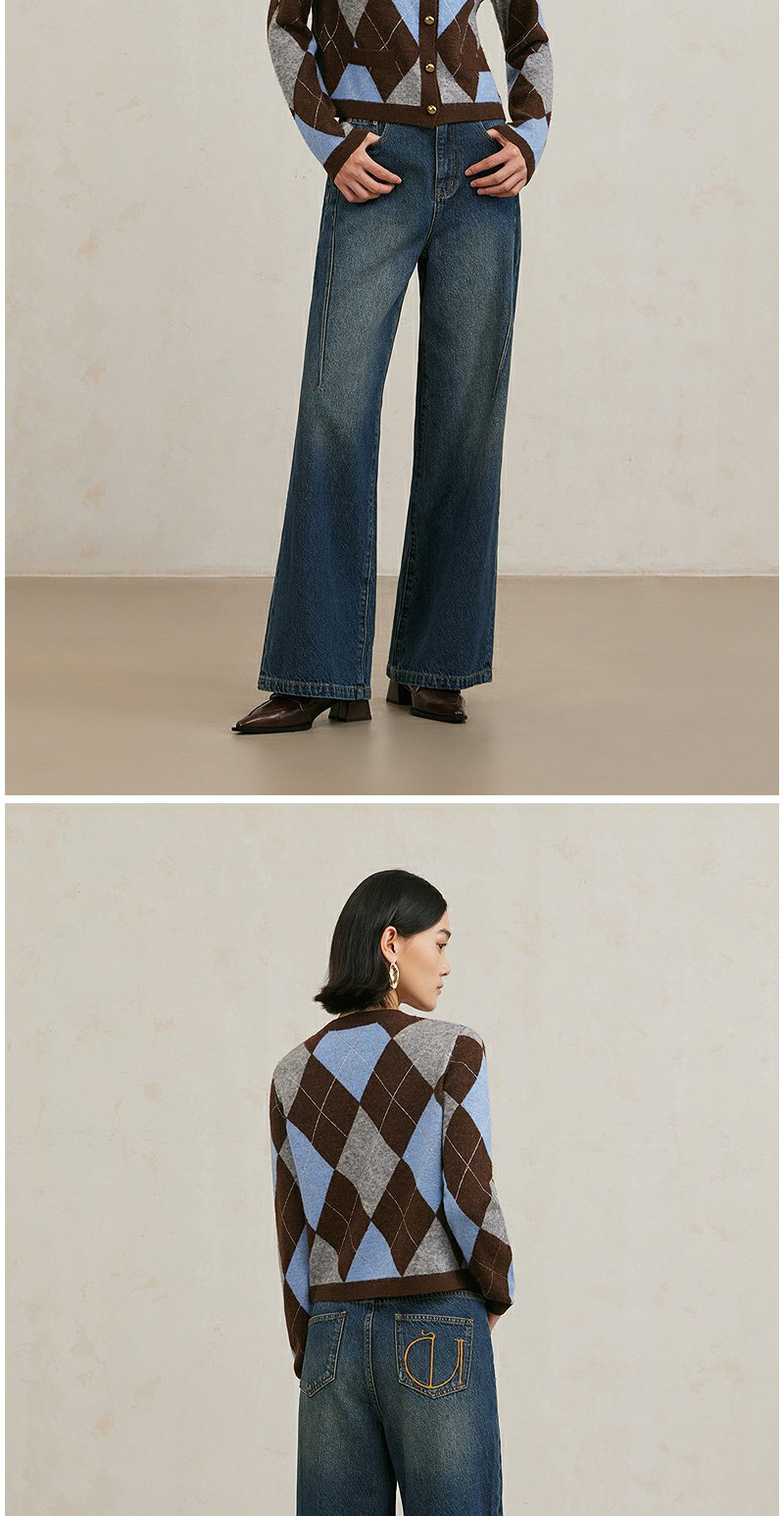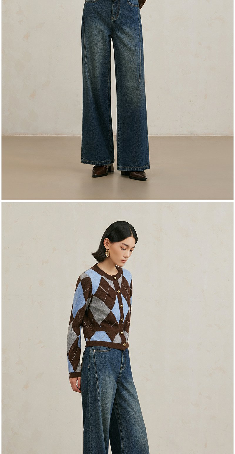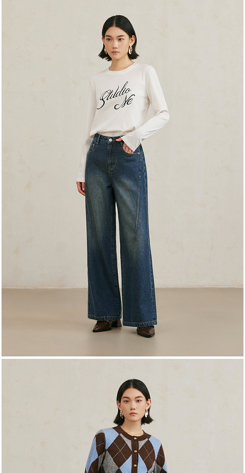 NEELLY纳俪商场同款冬季新款复古水洗宽松百搭直筒裤长裤女牛仔裤N25104H04423