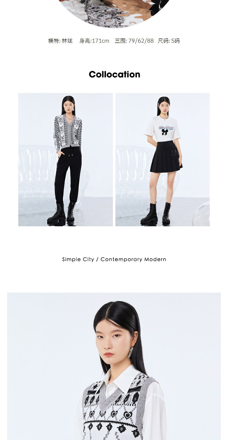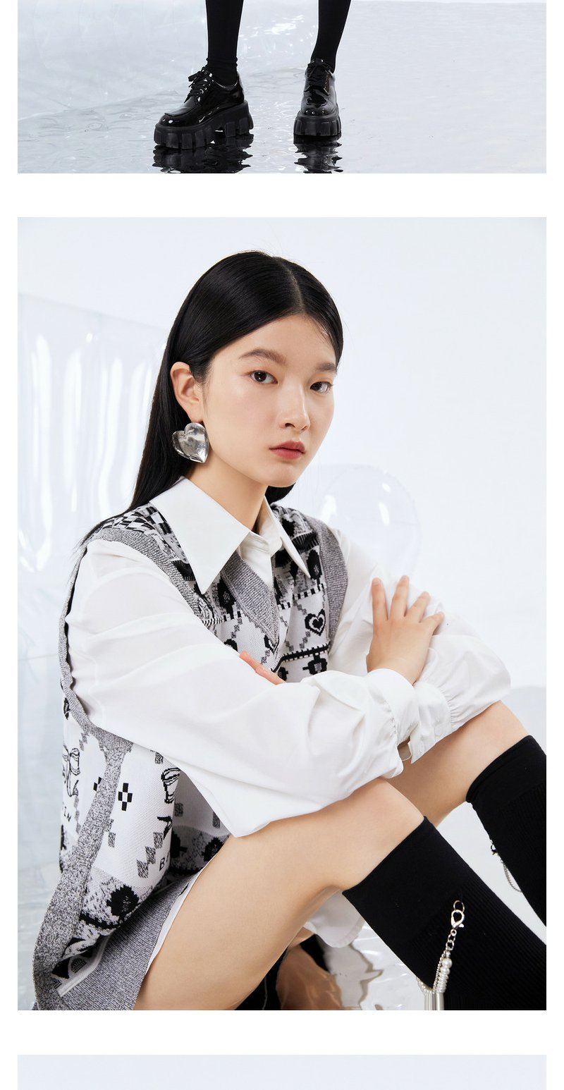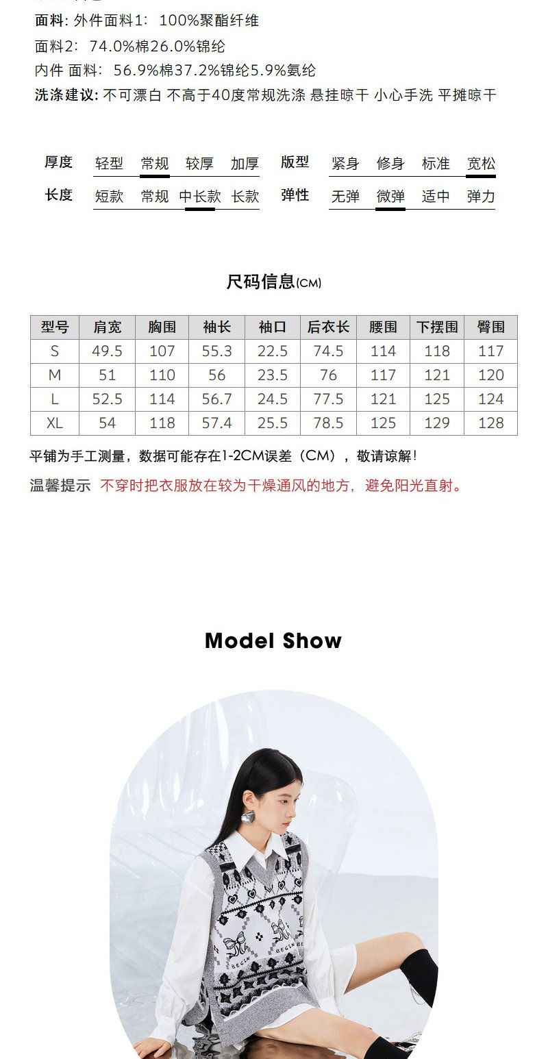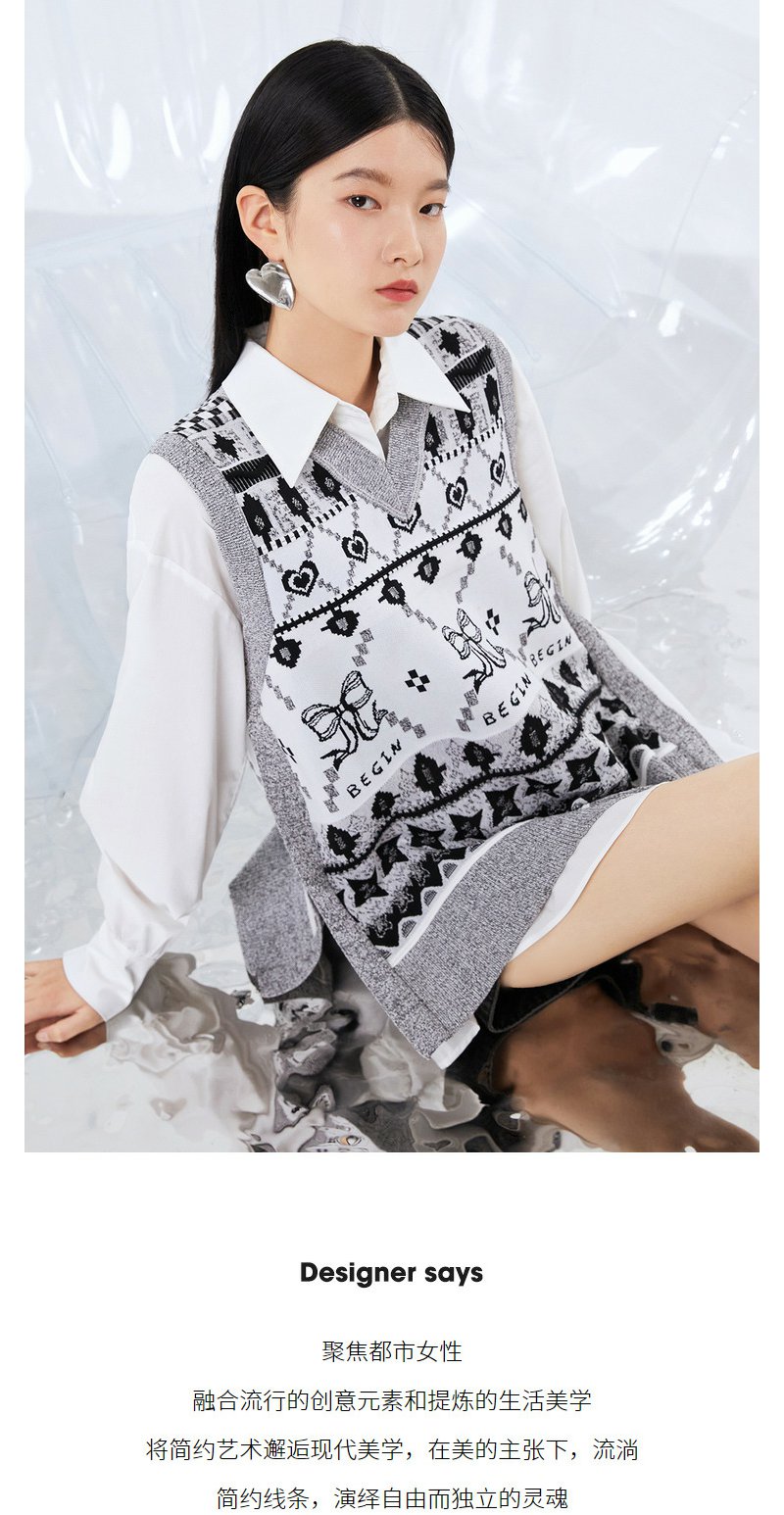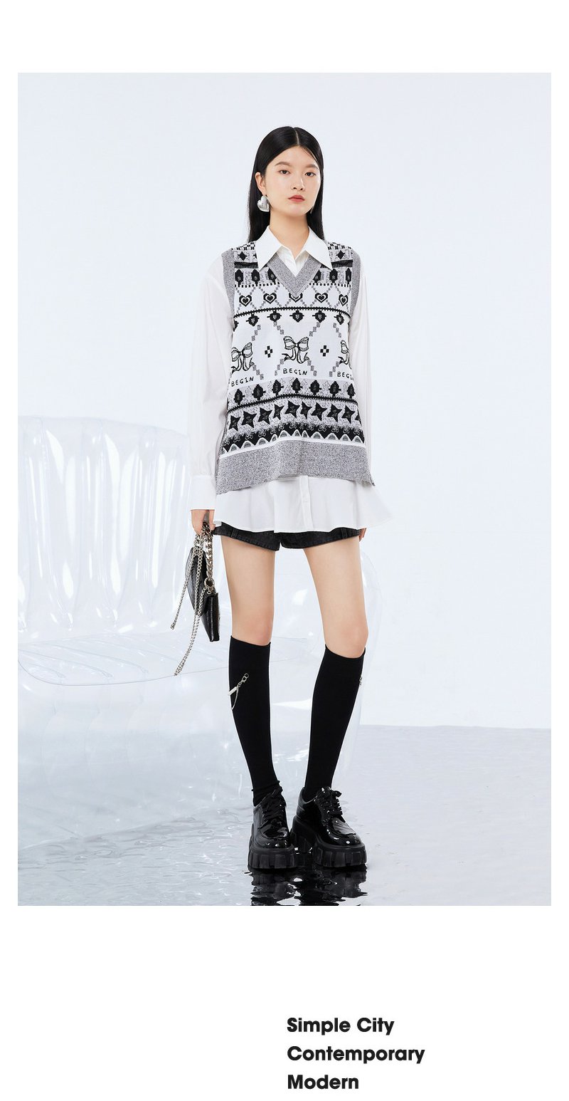 NEELLY纳俪商场同款两件套衬衫连衣裙V领马甲侧开叉针织套头衫N21081Y01107