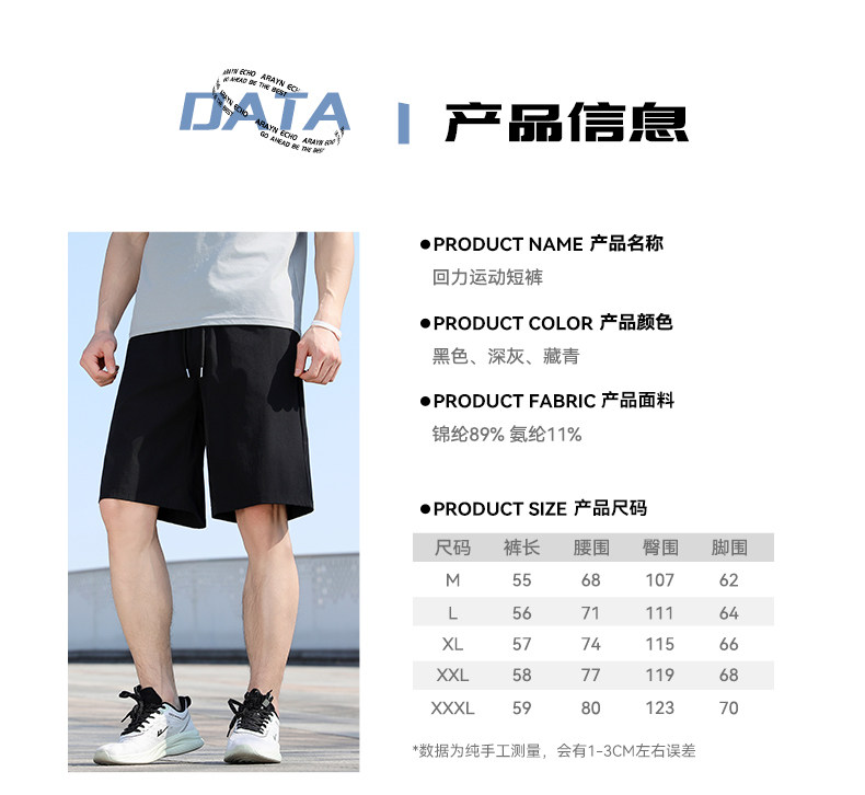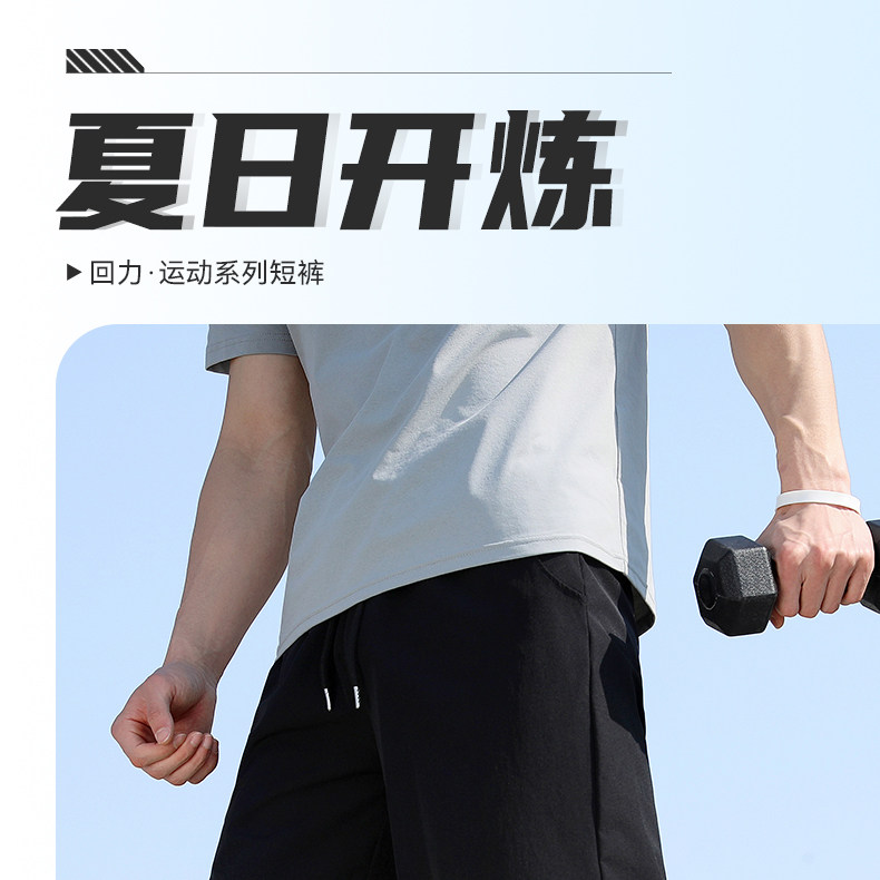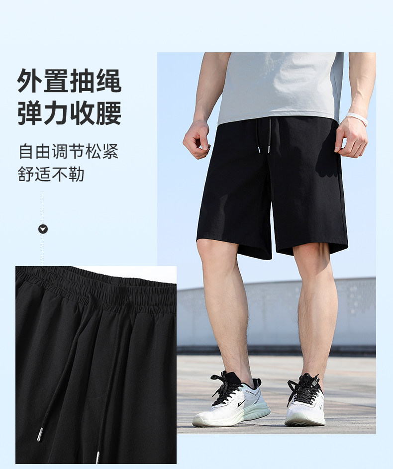 回力运动短裤男士速干夏季五分裤黑色冰丝健身训练裤子跑步男裤