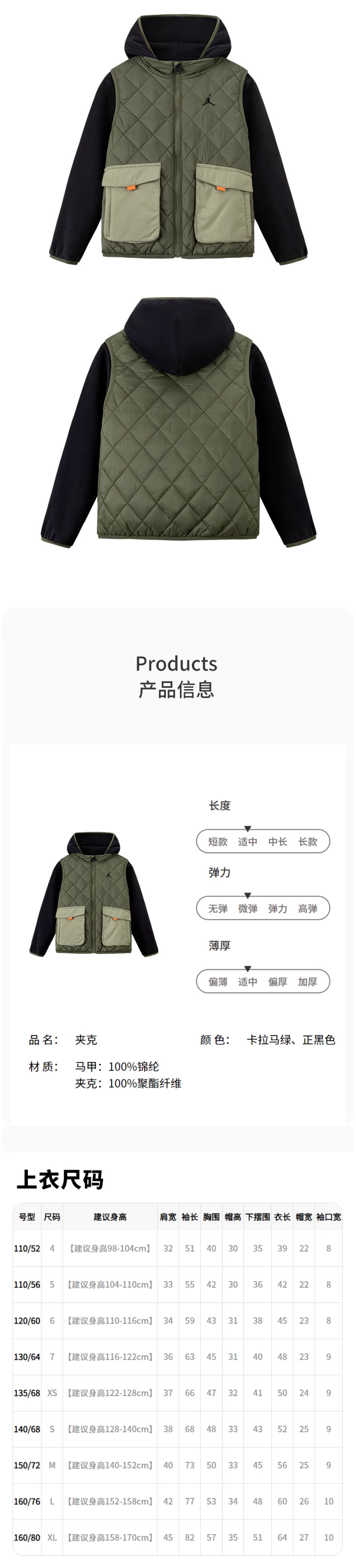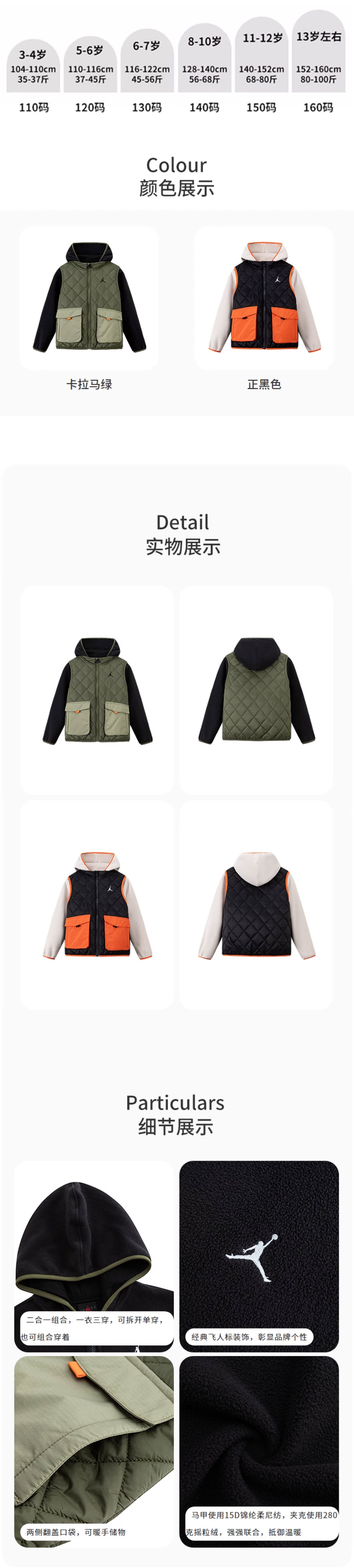 【ROOKIE】Jordan儿童装装男童夹克棉马甲2件套2025冬季新款JD2542067GS-002
