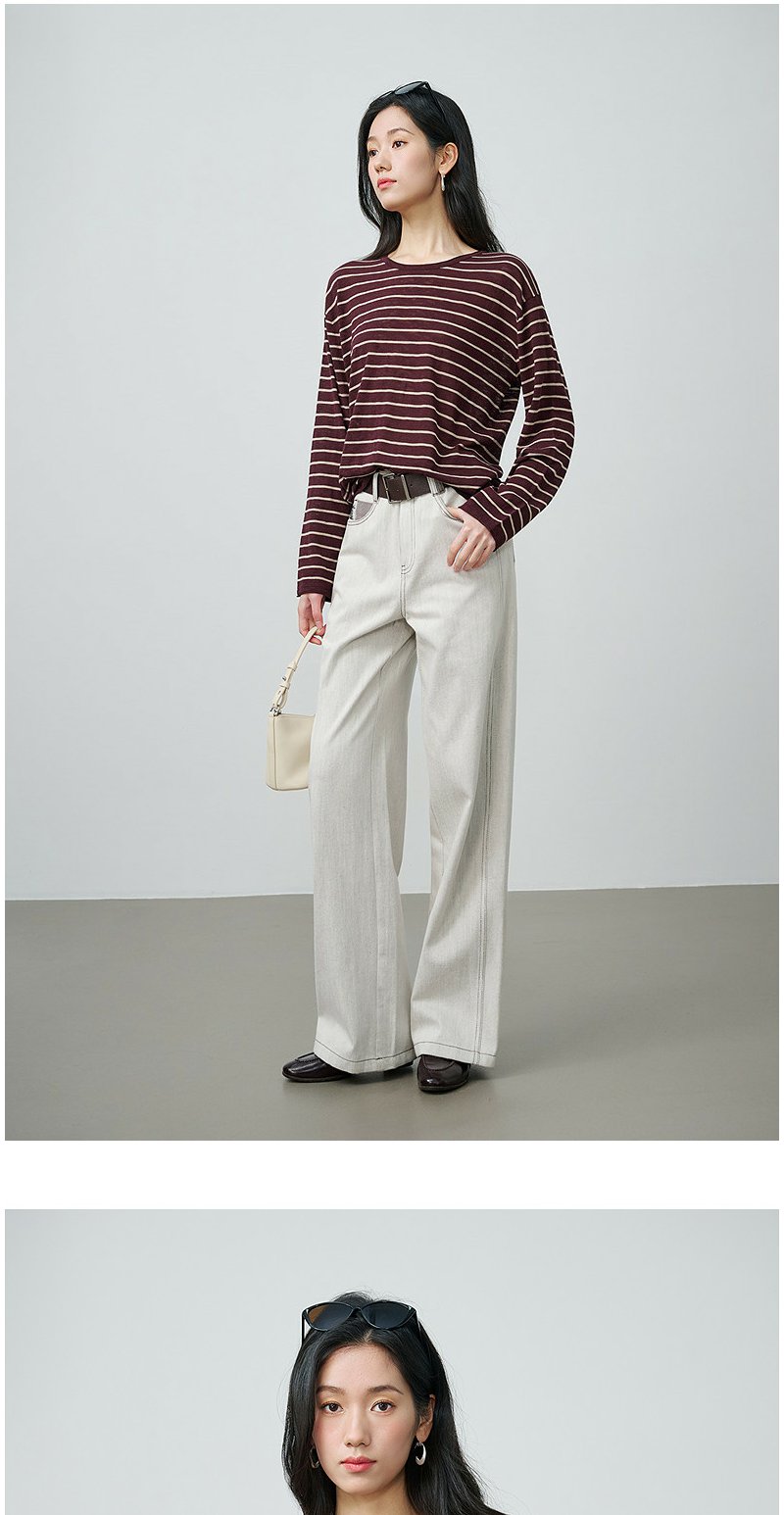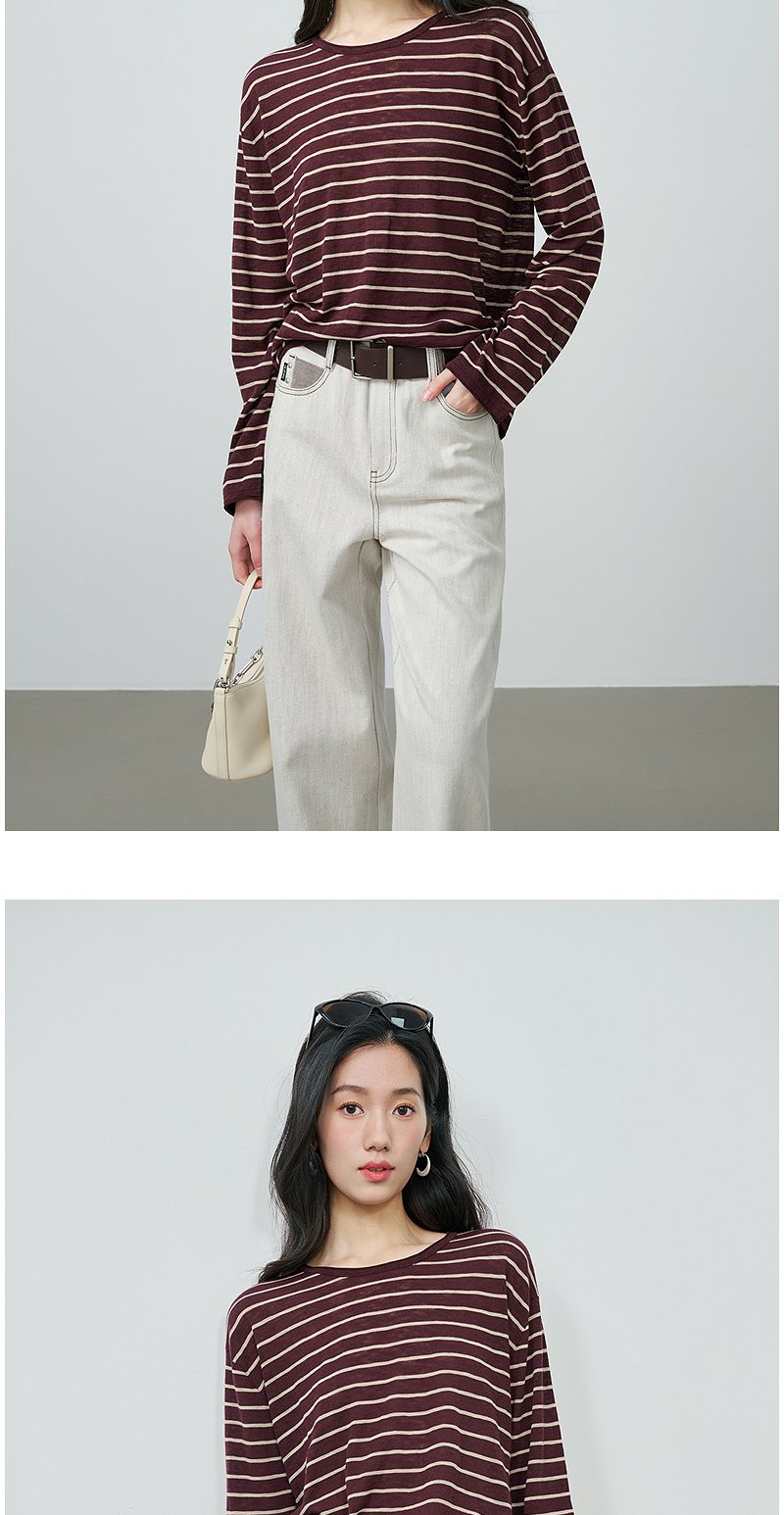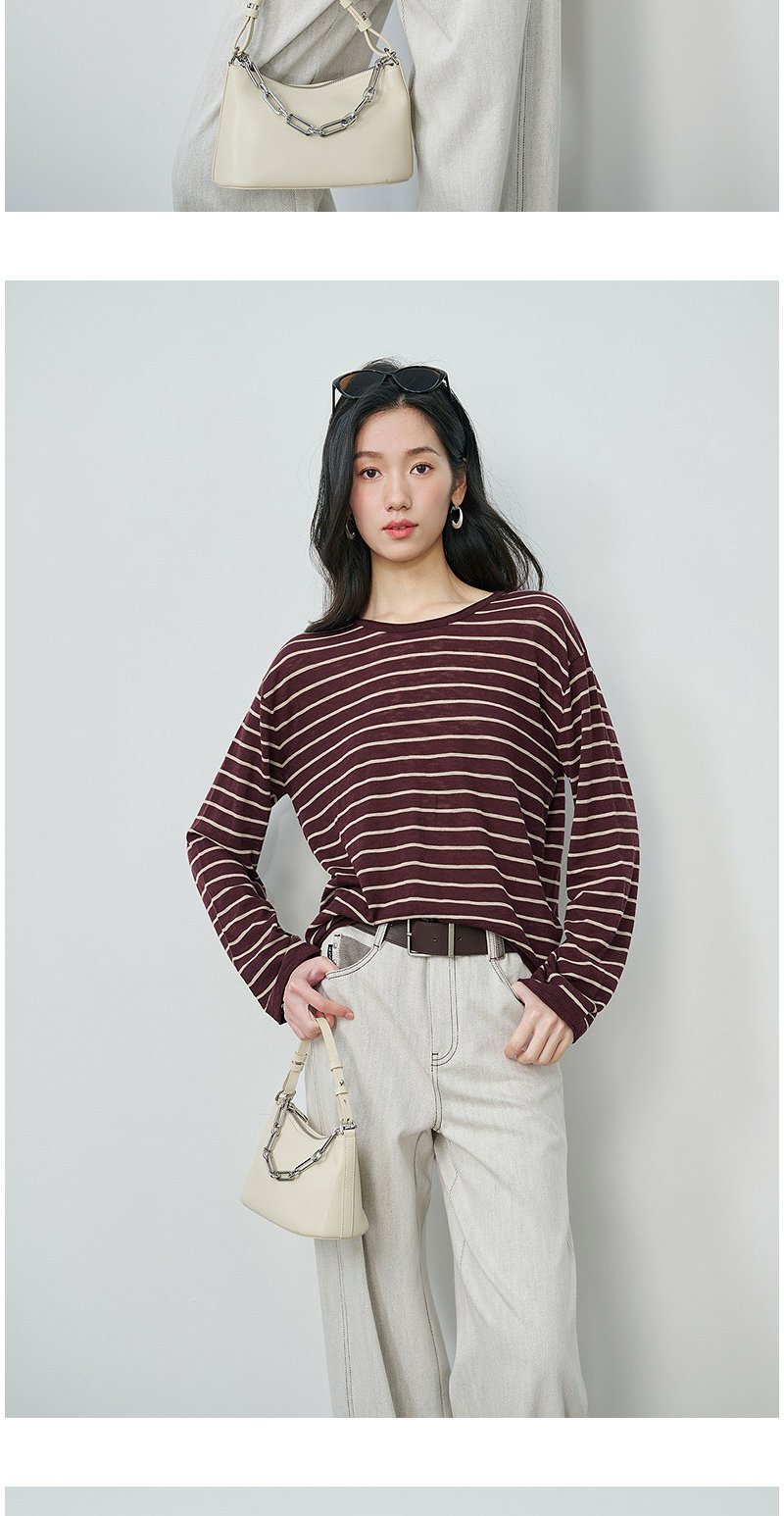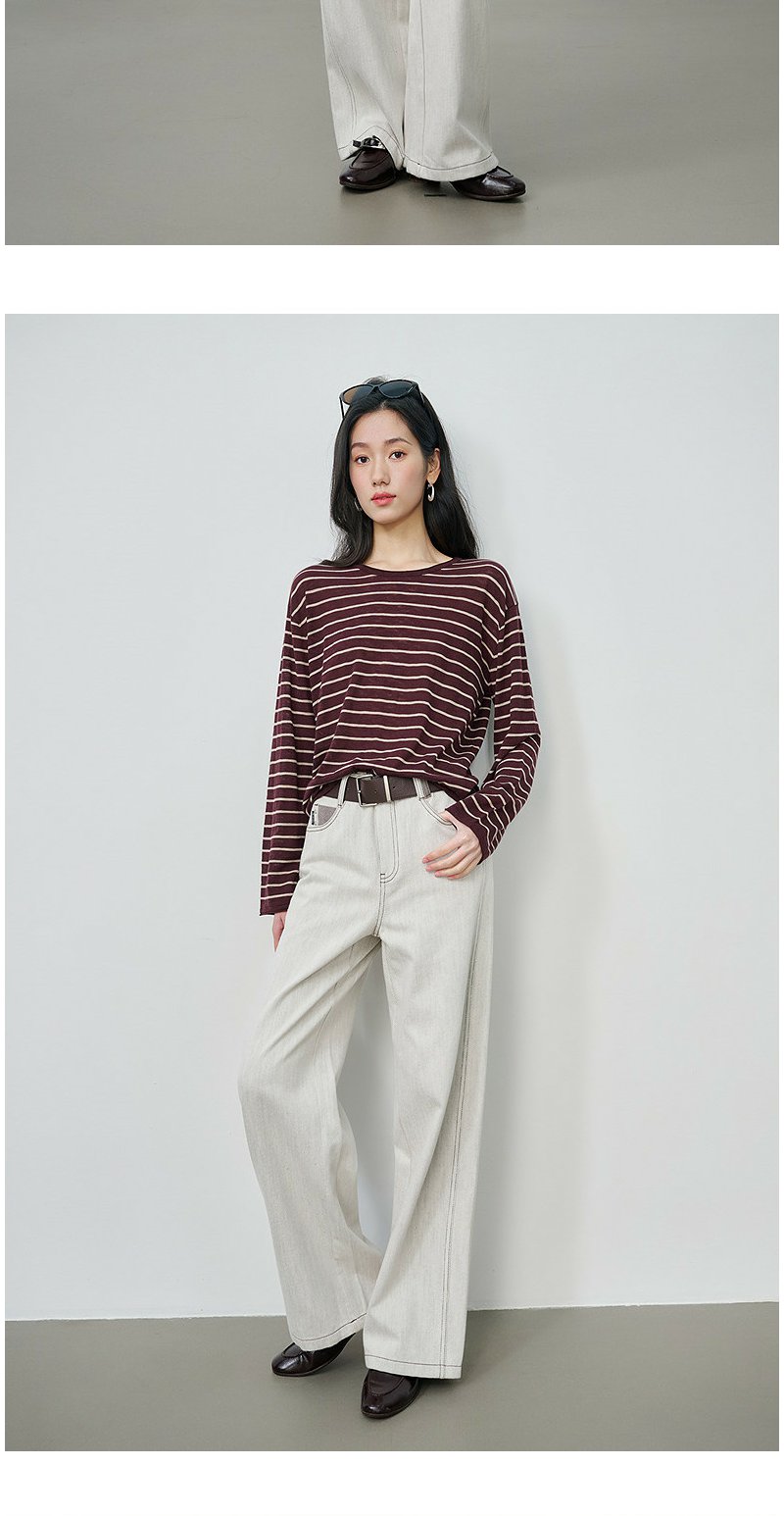 NEELLY纳俪商场同款春季新款复古条纹圆领撞色T恤女简约随性上衣N26014A06611