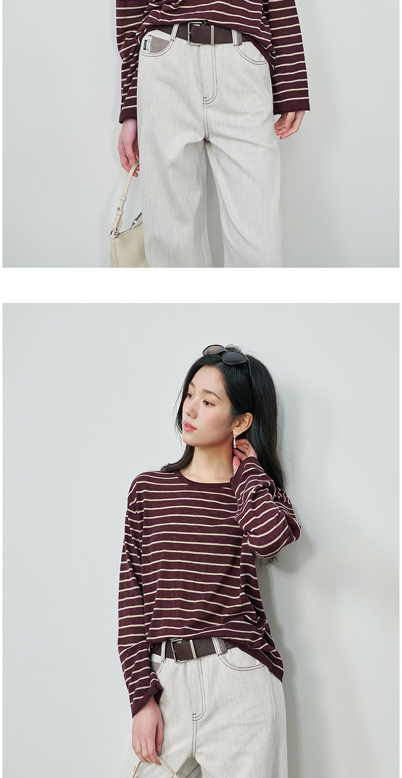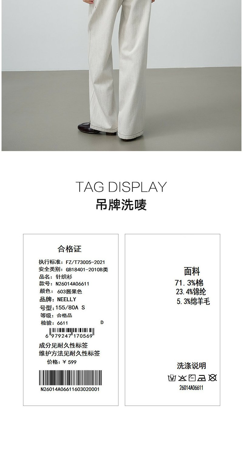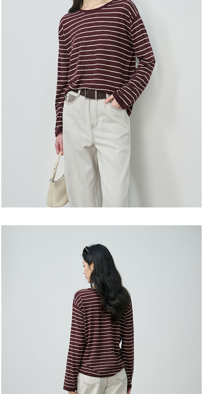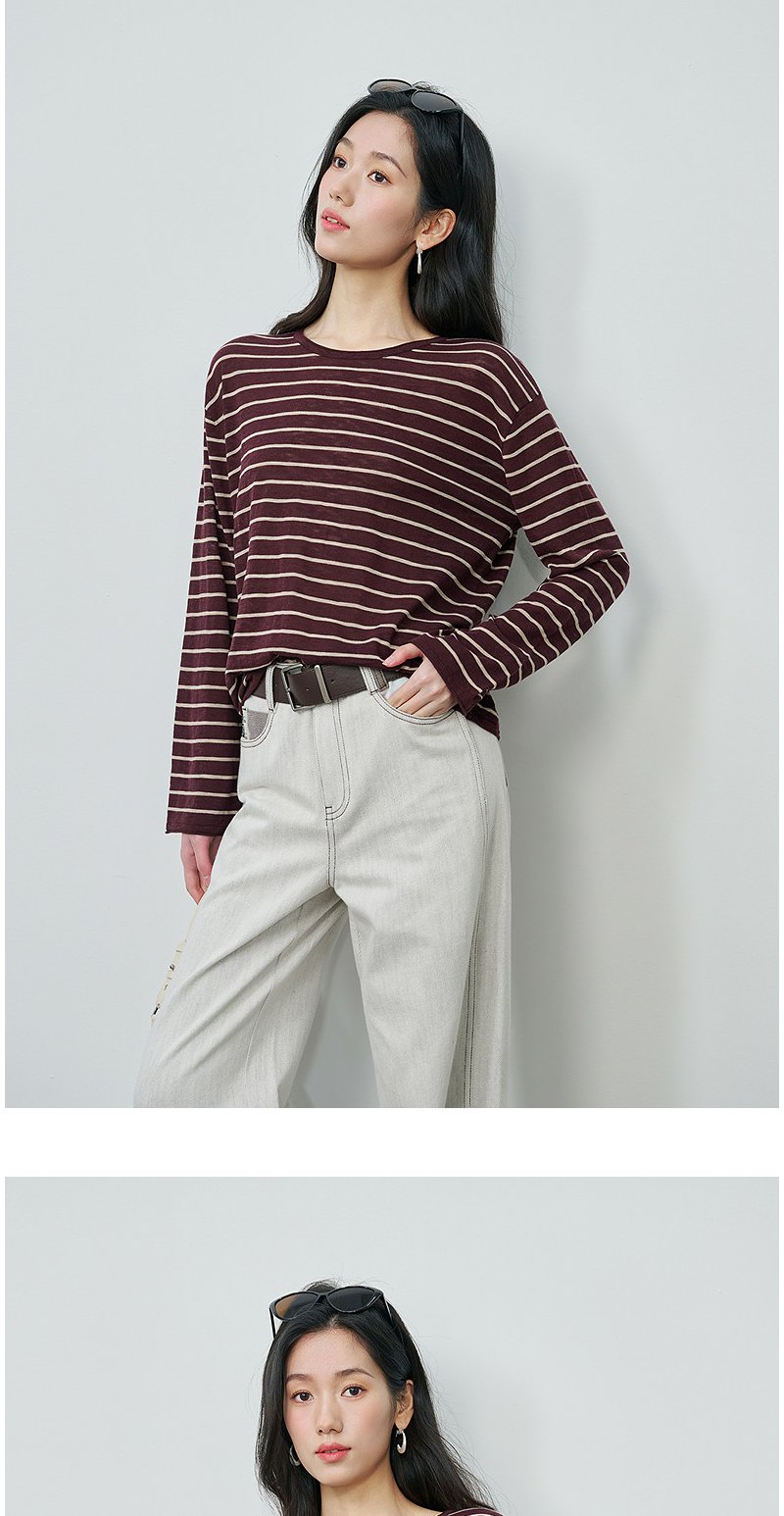 NEELLY纳俪商场同款春季新款复古条纹圆领撞色T恤女简约随性上衣N26014A06611