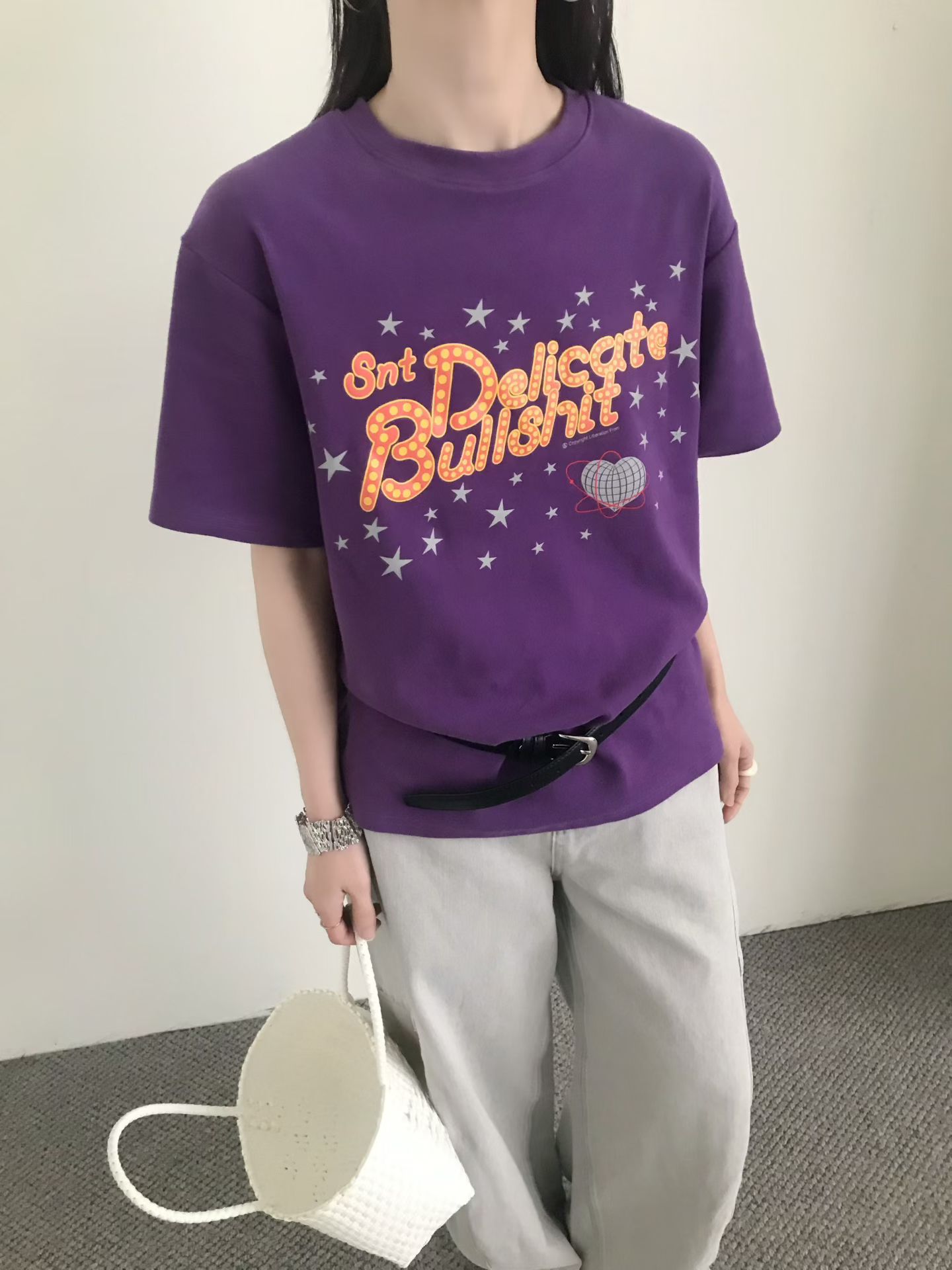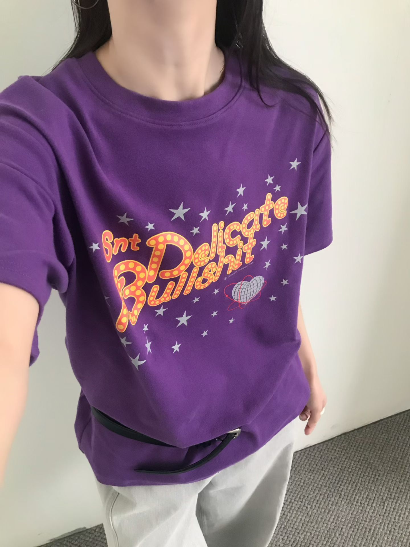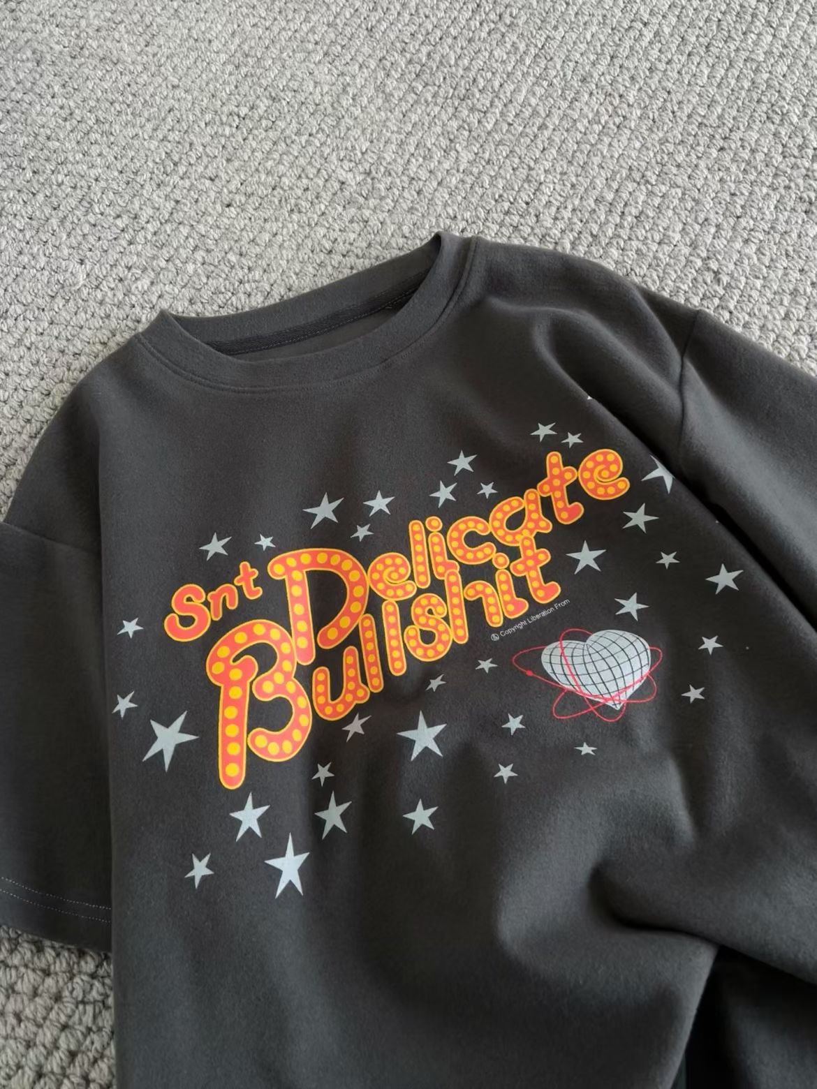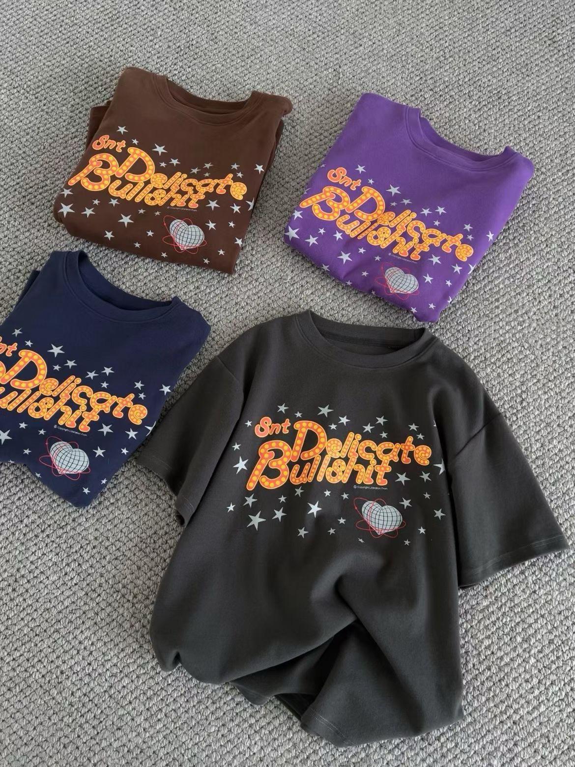 老米优品🎈3-5天。潮牌同款!《霓虹星芒字母印花 加厚磨毛短袖tee》可叠搭,宽松慵懒,复古范~ T260107A