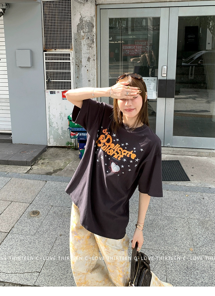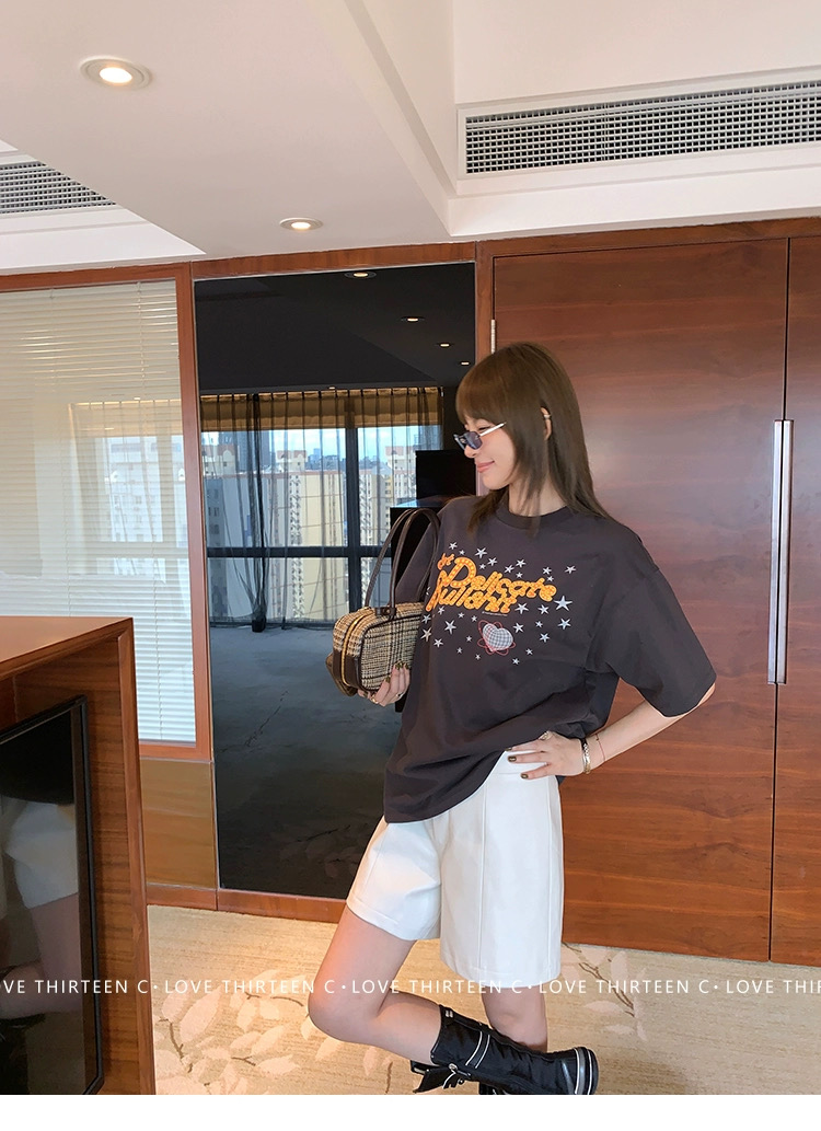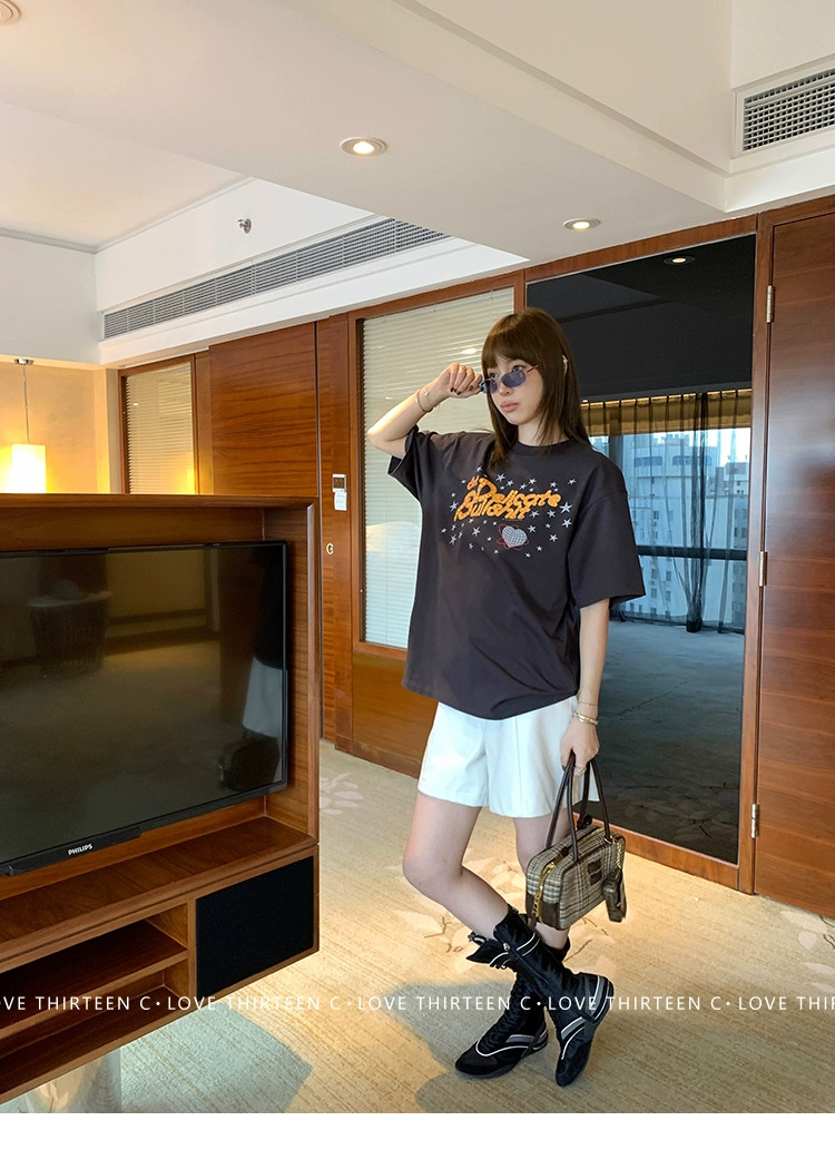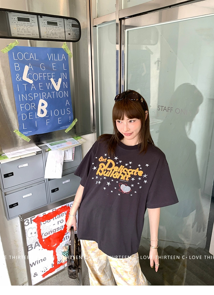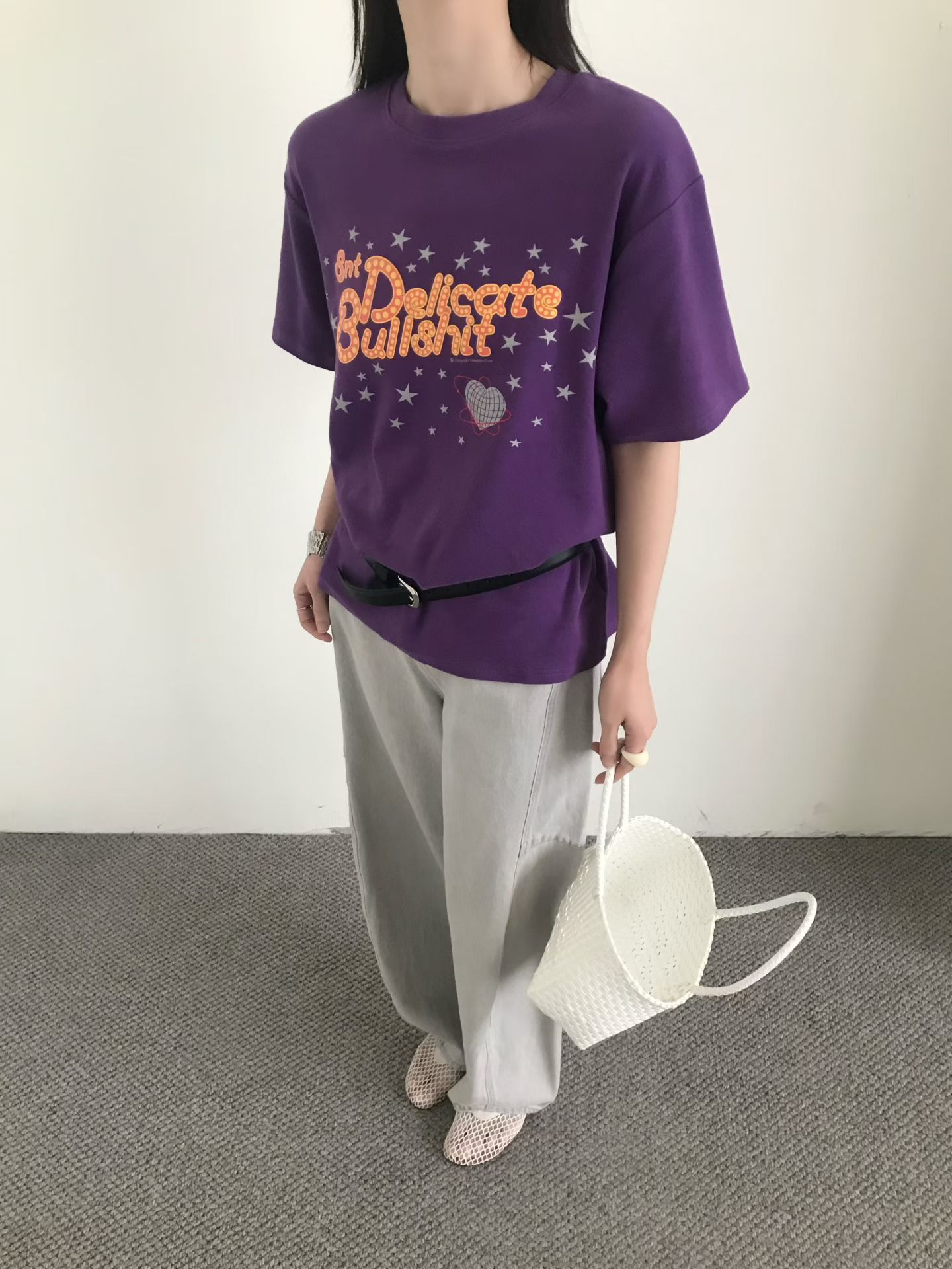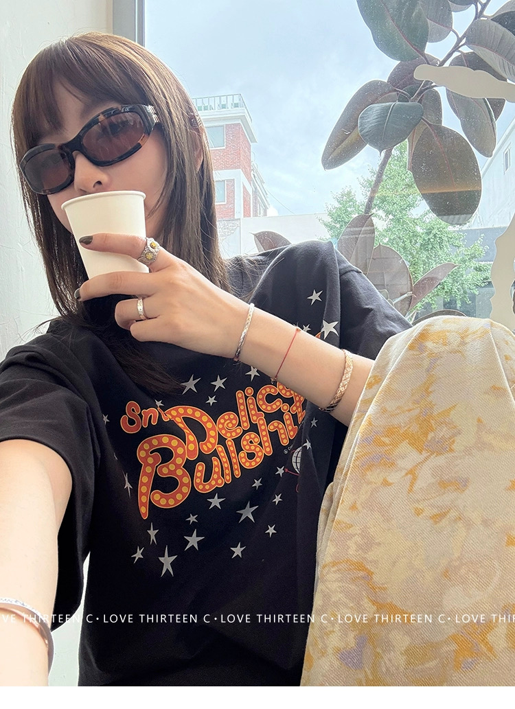 老米优品🎈3-5天。潮牌同款!《霓虹星芒字母印花 加厚磨毛短袖tee》可叠搭,宽松慵懒,复古范~ T260107A