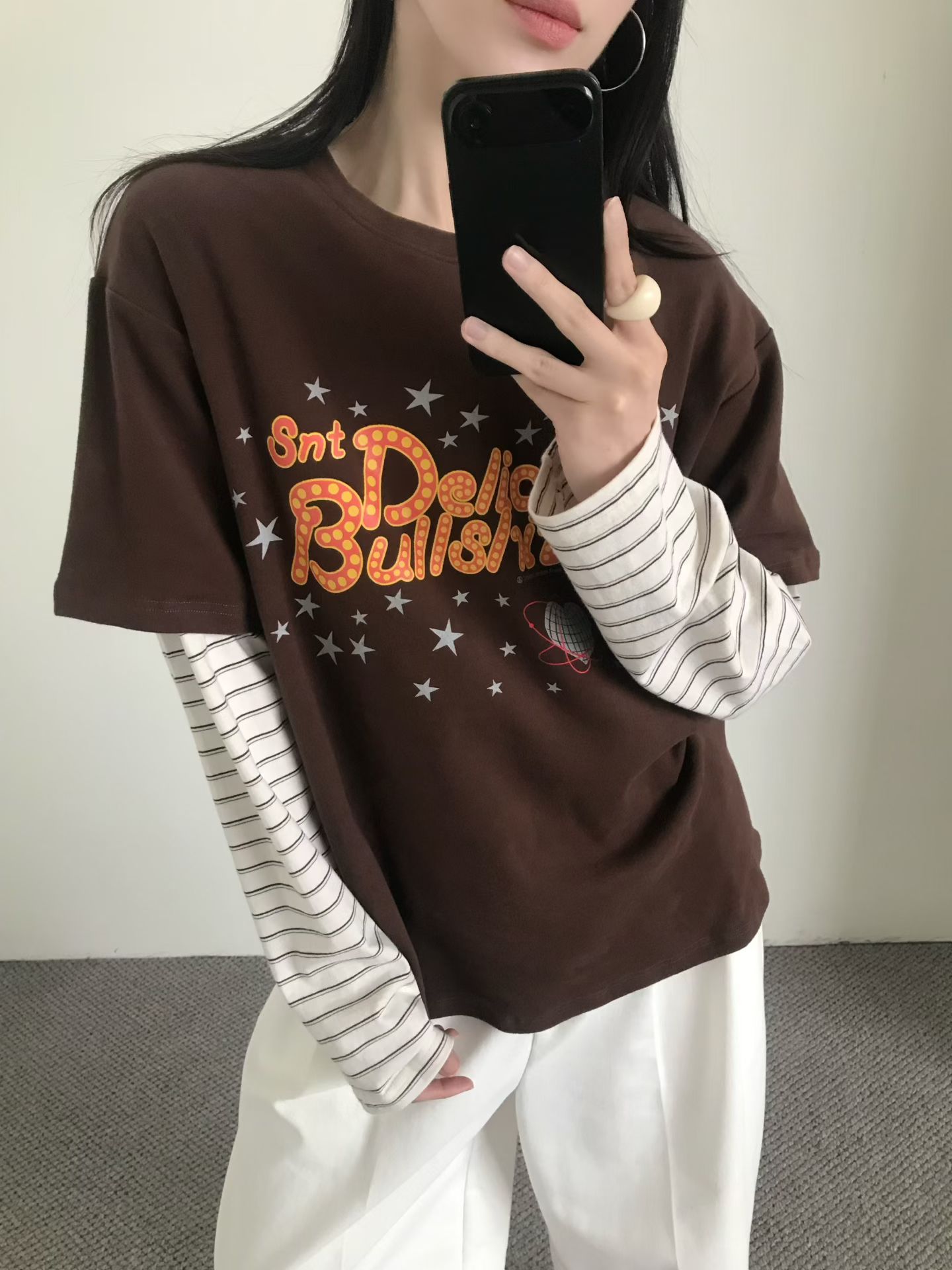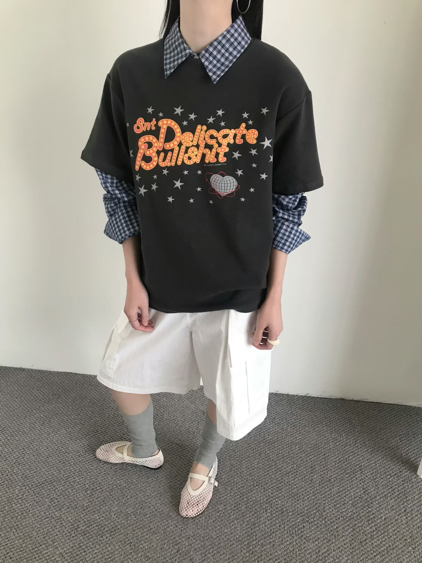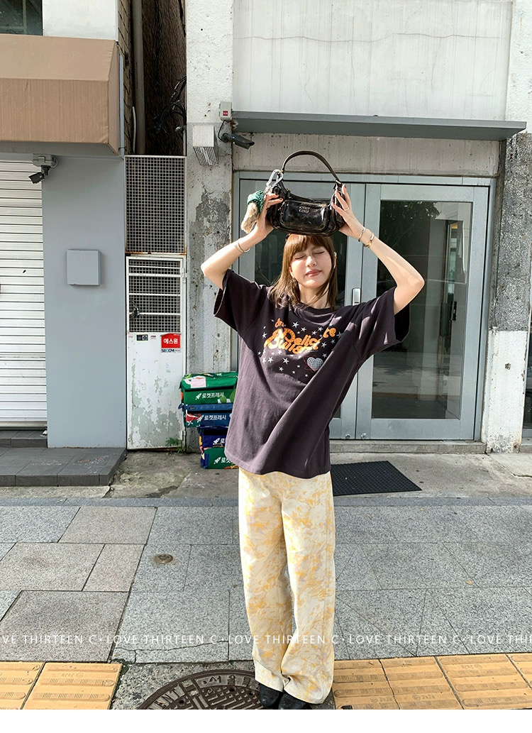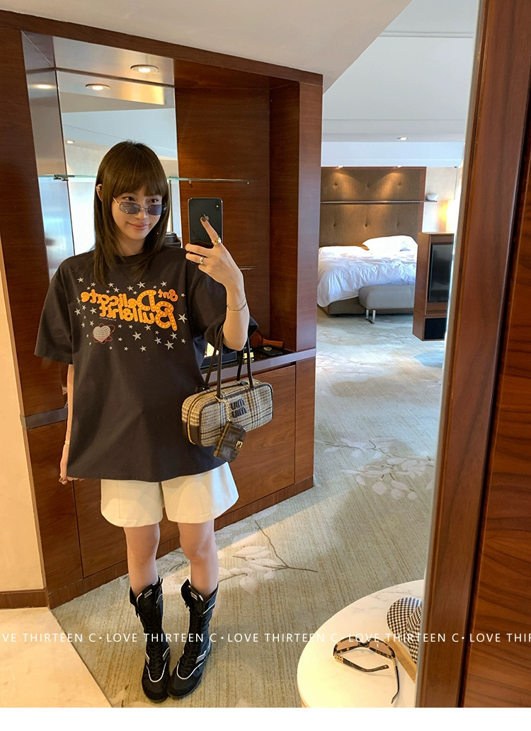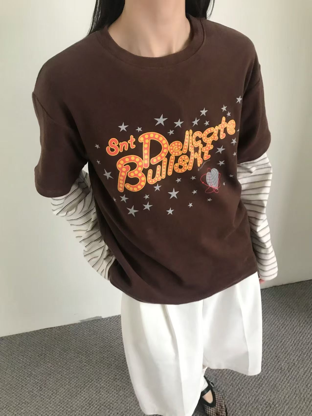 老米优品🎈3-5天。潮牌同款!《霓虹星芒字母印花 加厚磨毛短袖tee》可叠搭,宽松慵懒,复古范~ T260107A