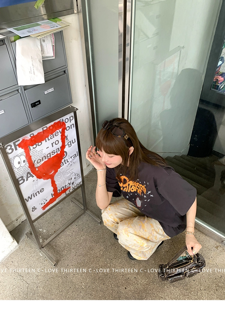 复古潮牌设计,霓虹字母撞色爱心印花,