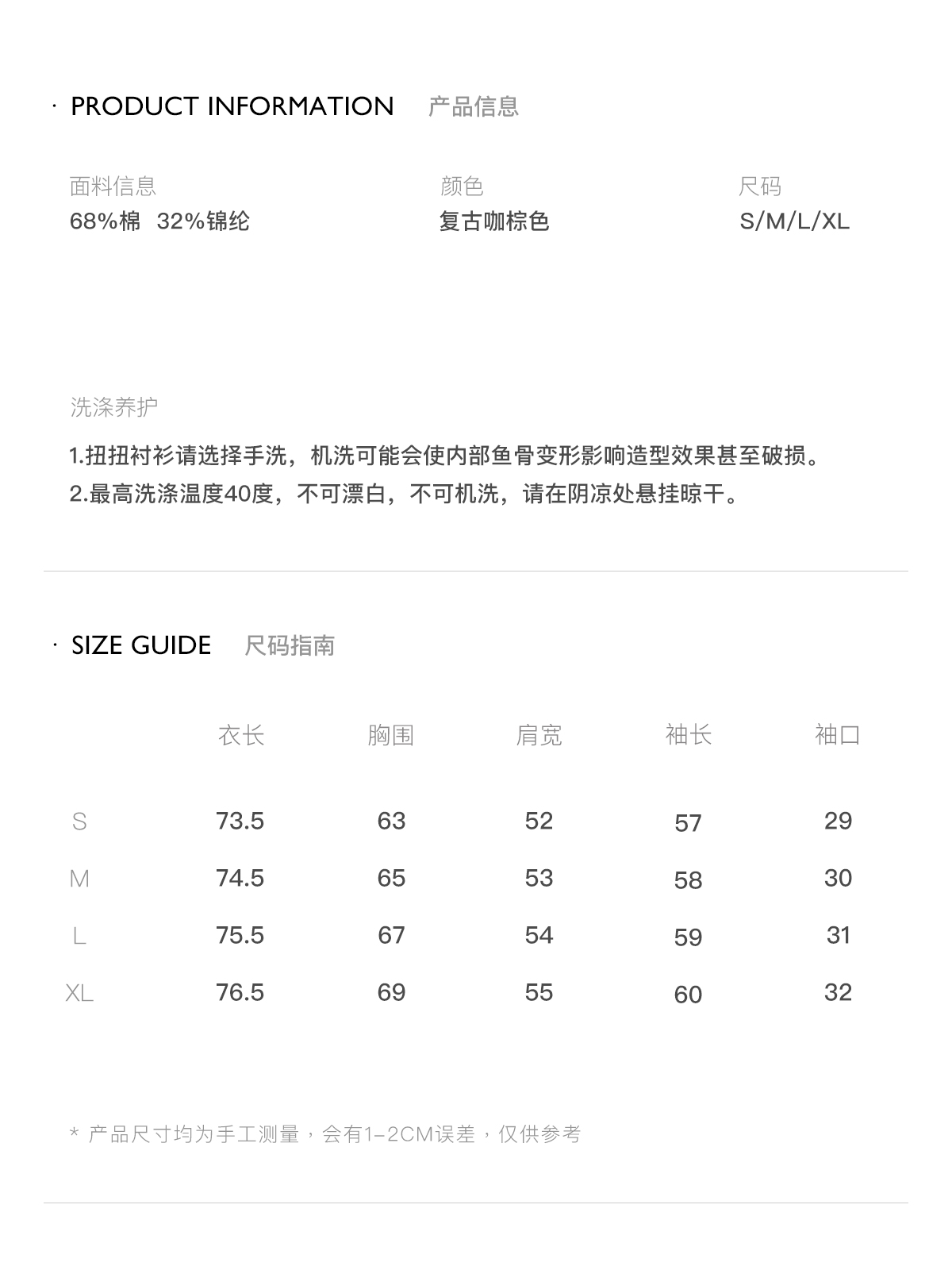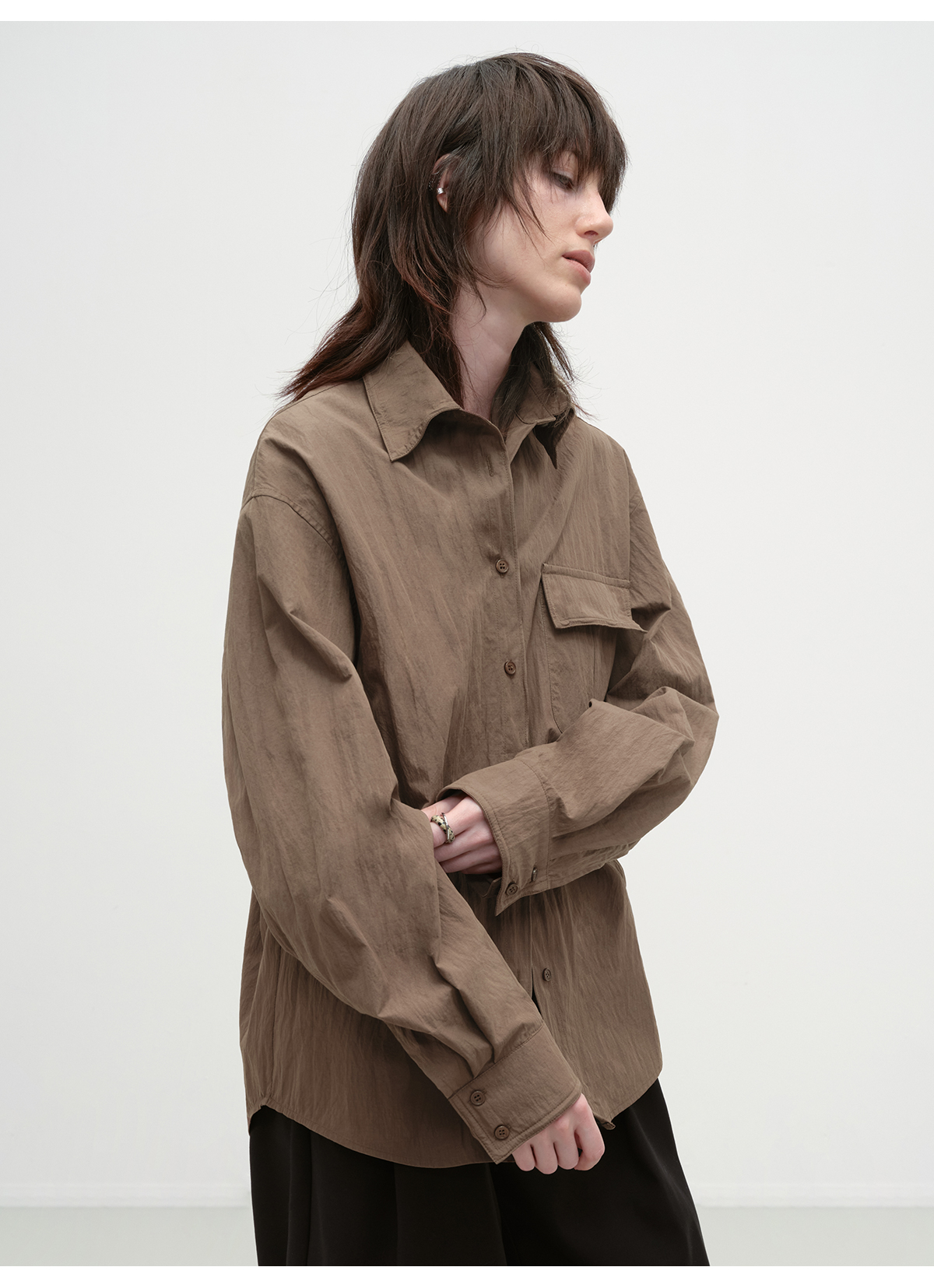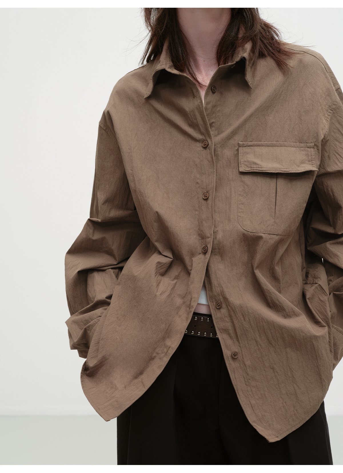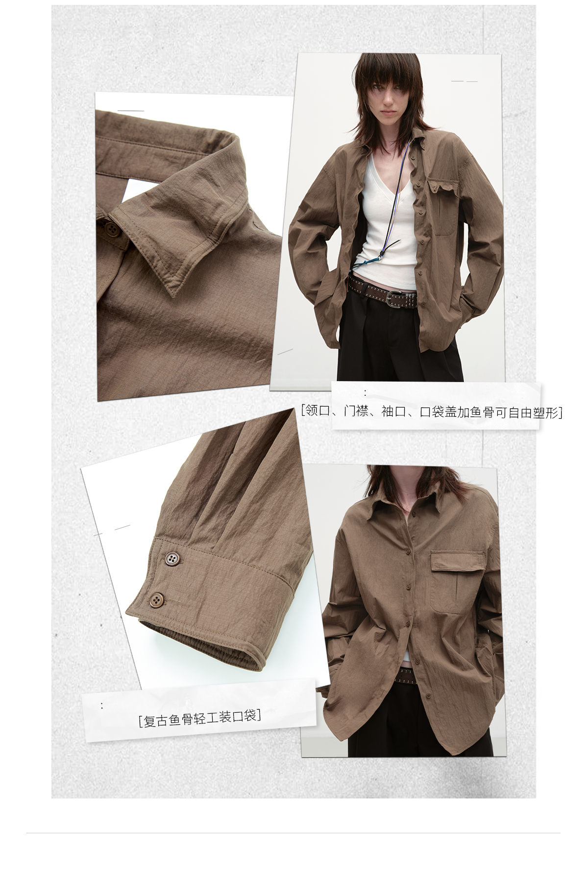 出逃赤岗西/25AWC36/复古棕色可塑性衬衫外套