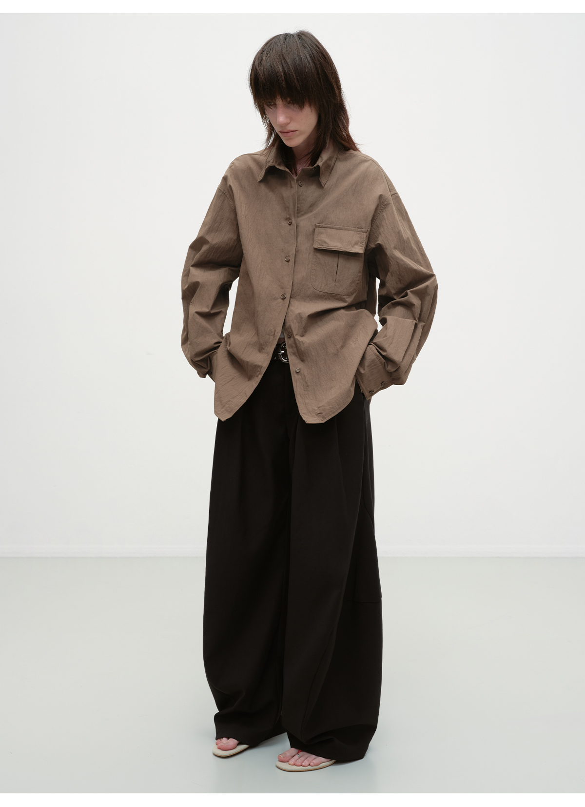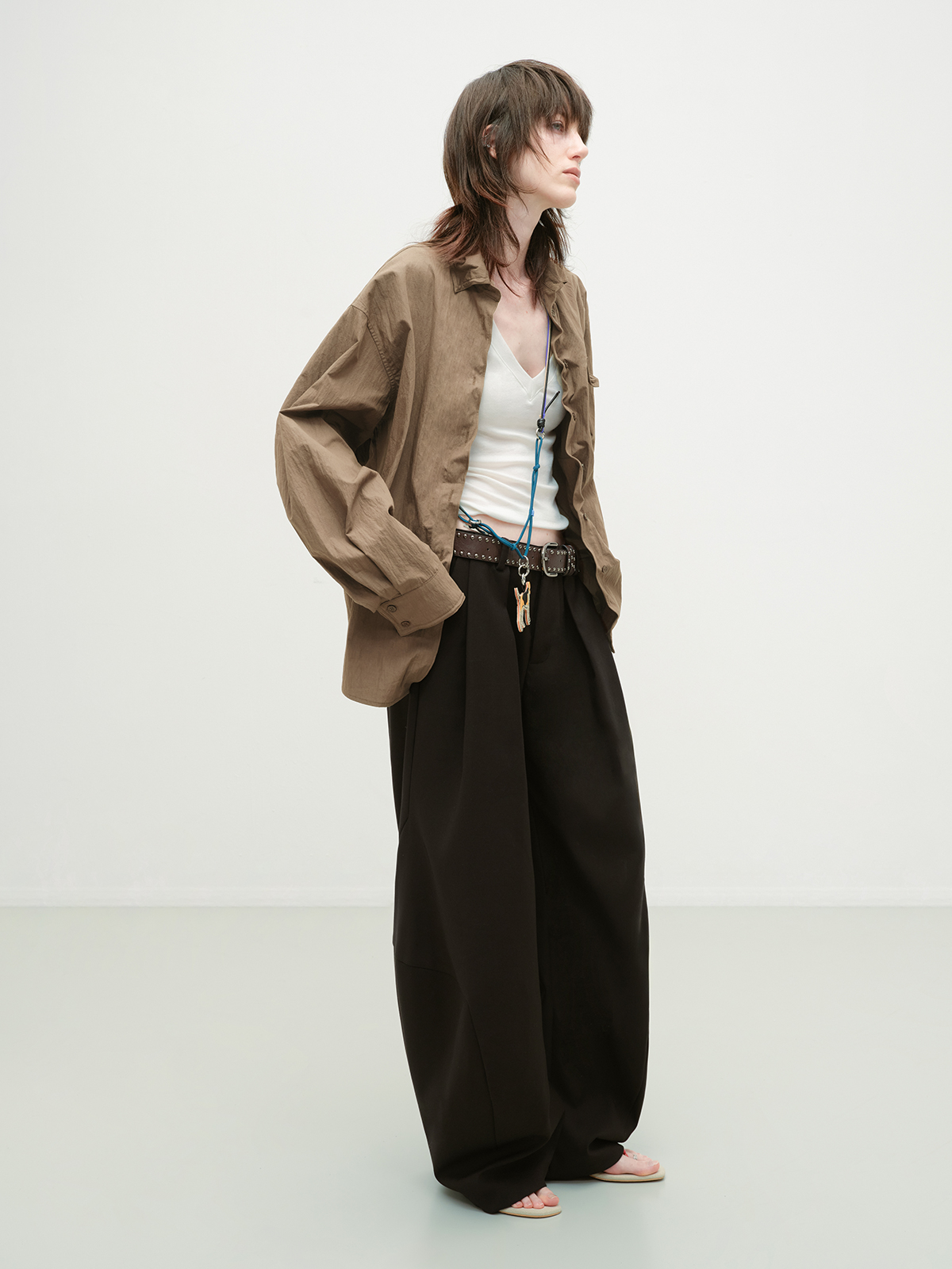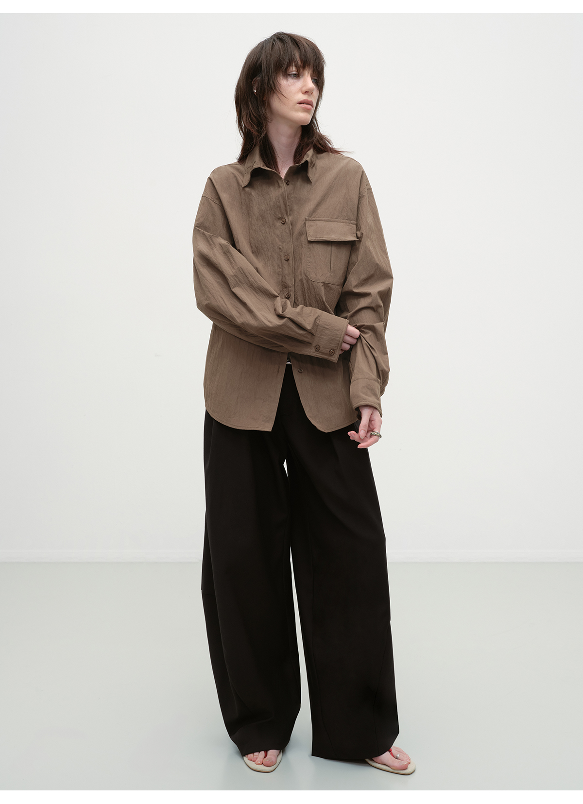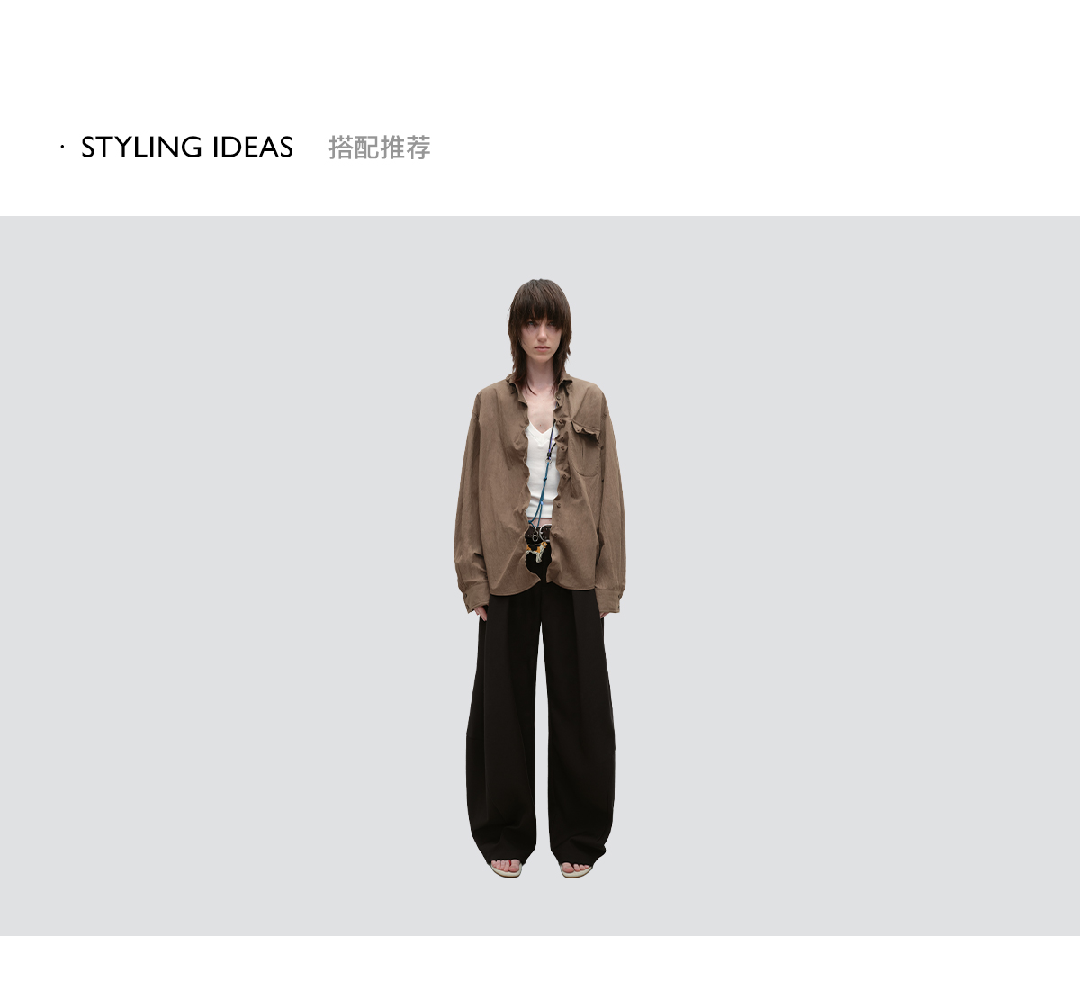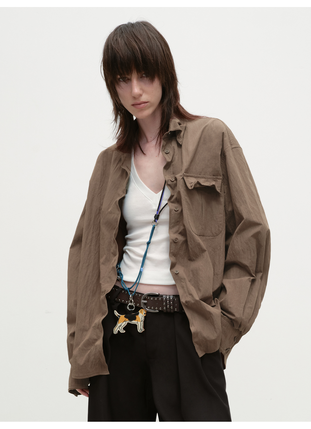 出逃赤岗西/25AWC36/复古棕色可塑性衬衫外套