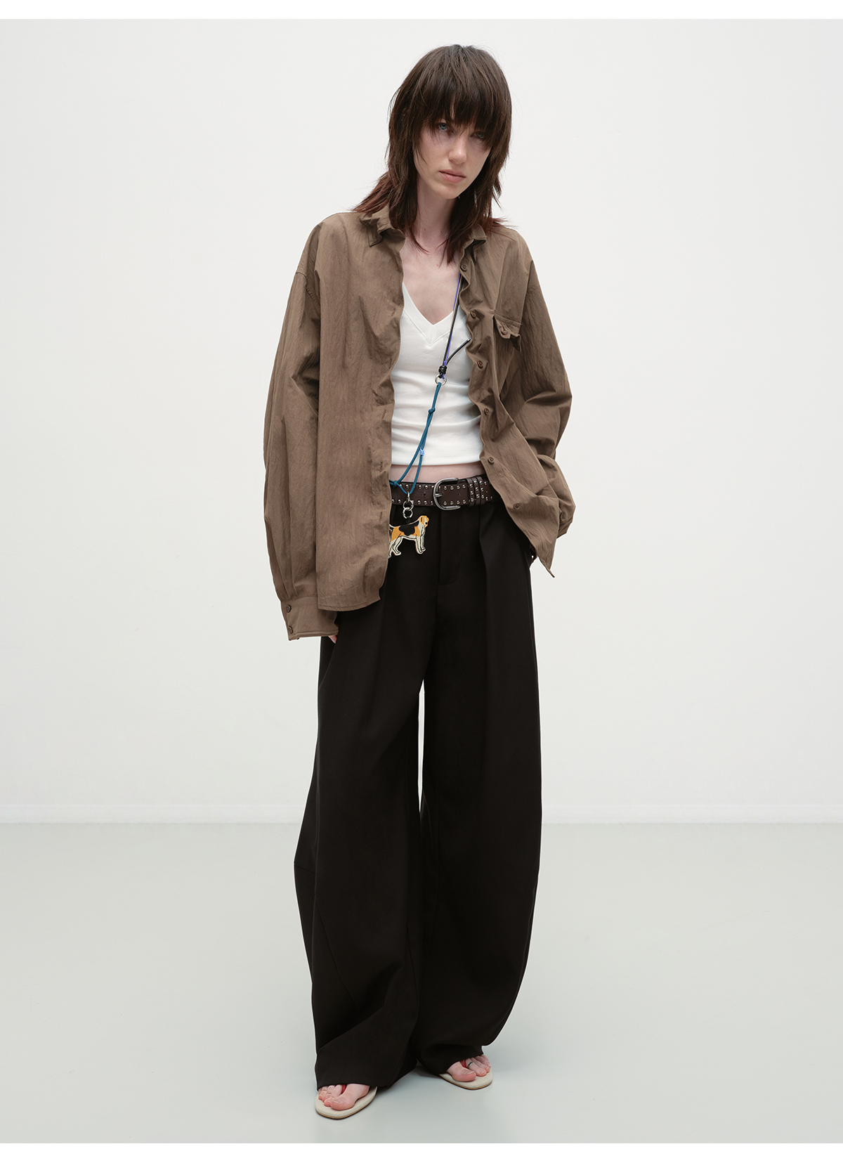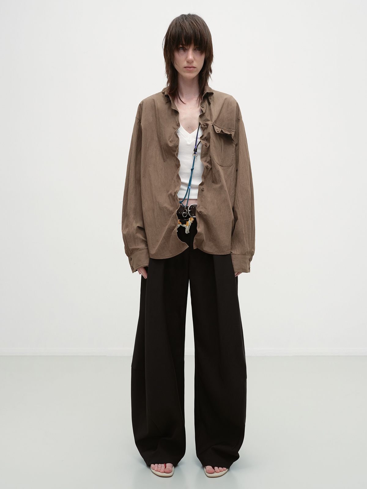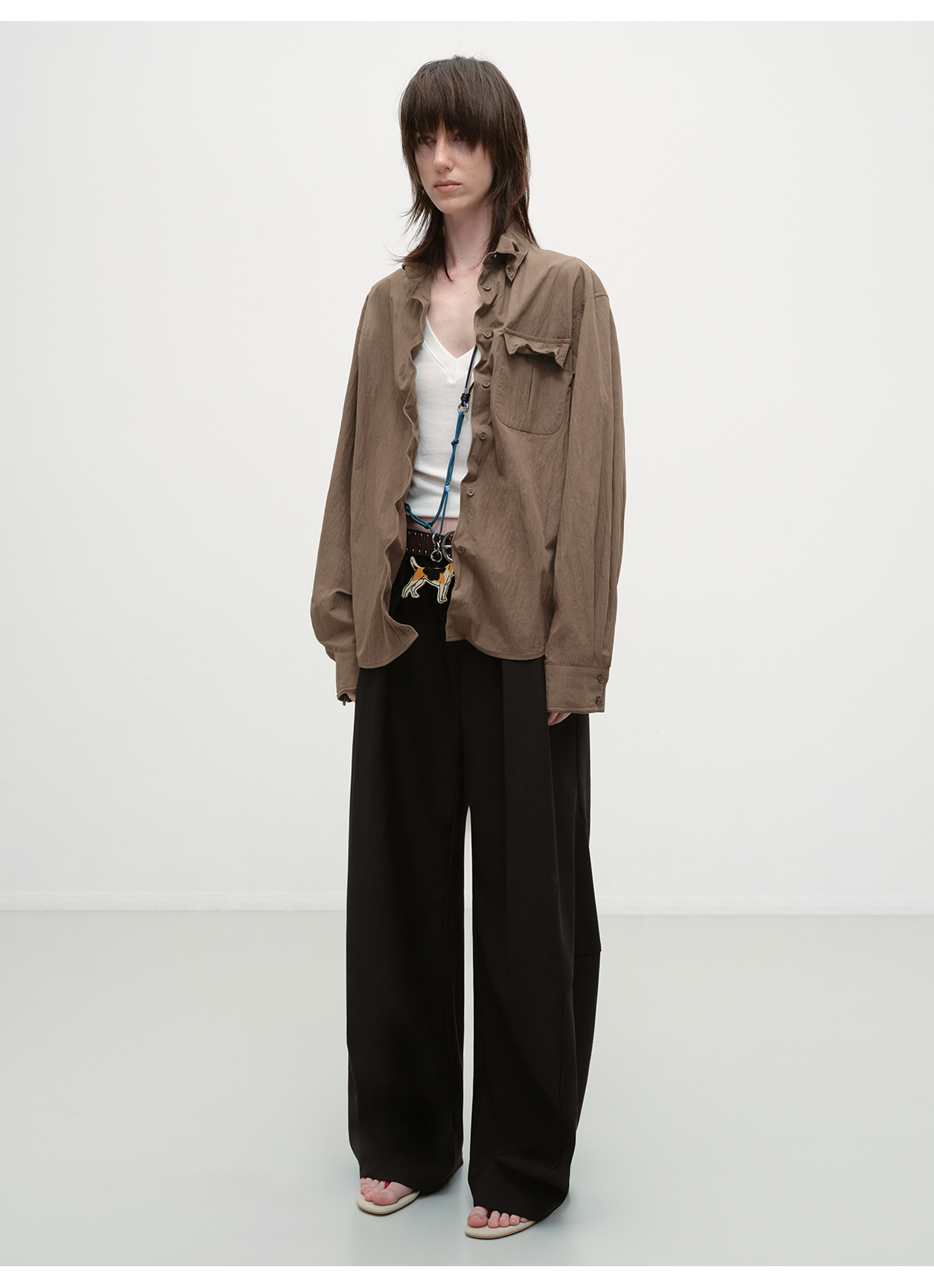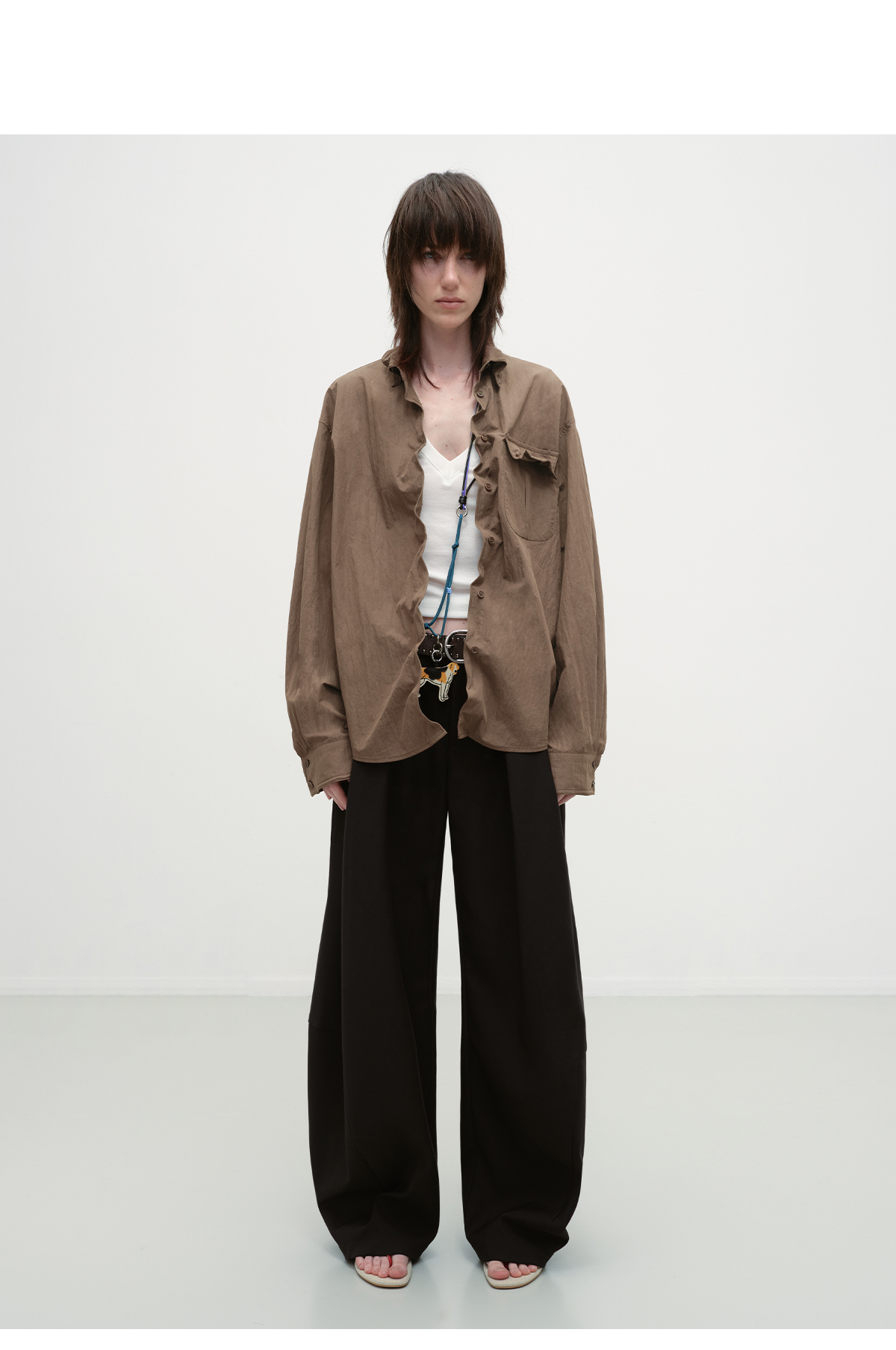 出逃赤岗西/25AWC36/复古棕色可塑性衬衫外套