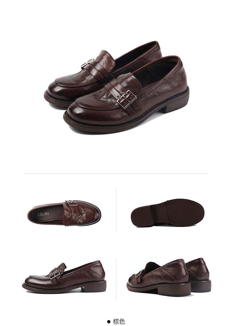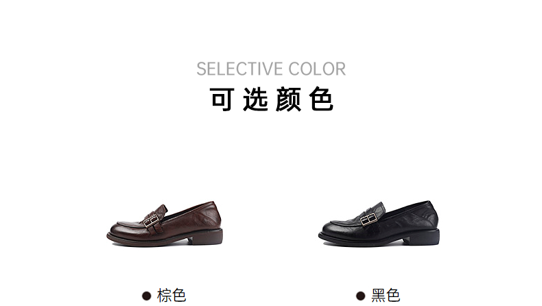 伊伴秋季复古乐福鞋百搭纯色自在低跟薄底乐福鞋B25456701