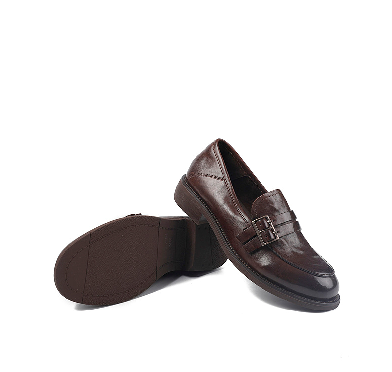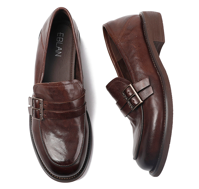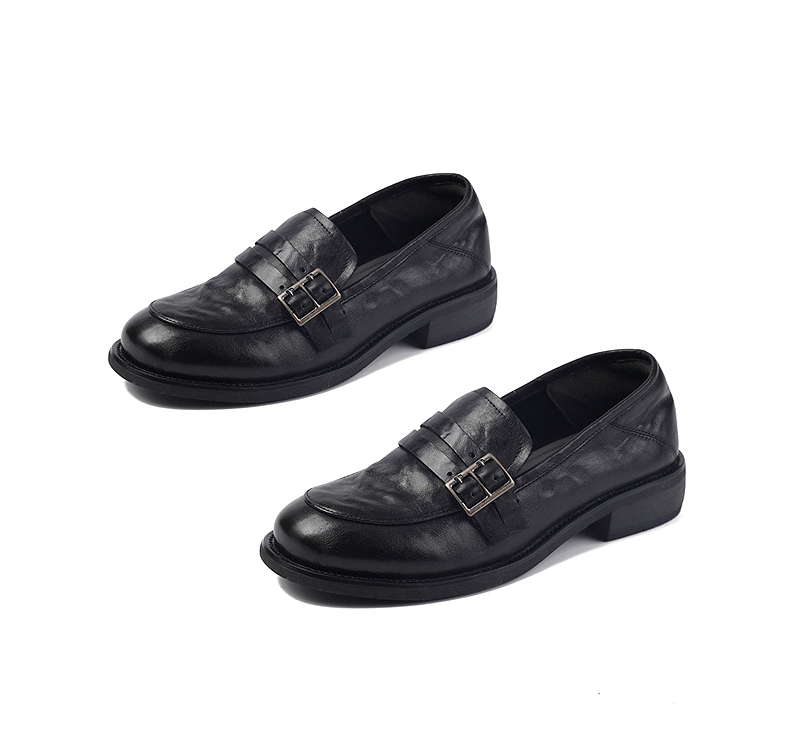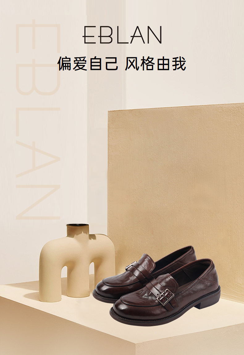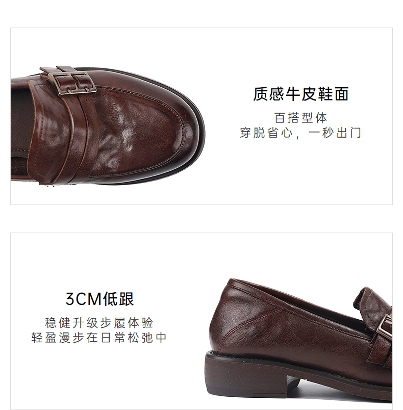 伊伴2026春季复古摩登双扣厚底增高孟克乐福鞋B26125120