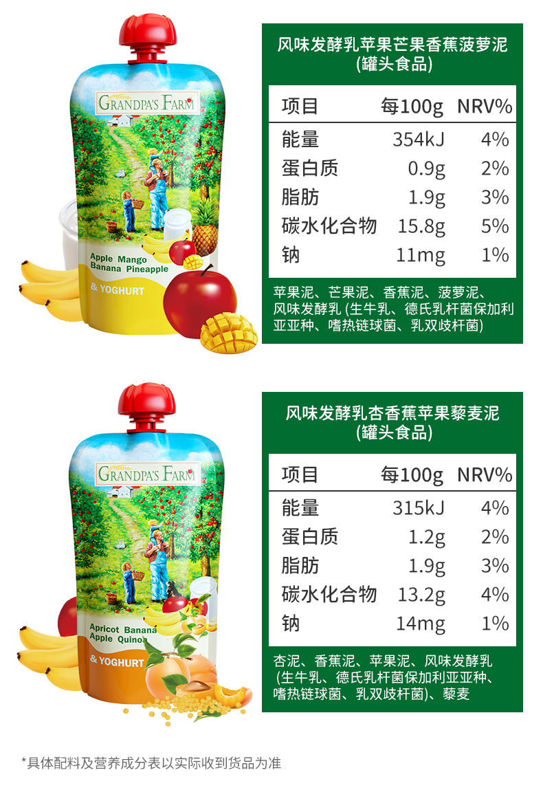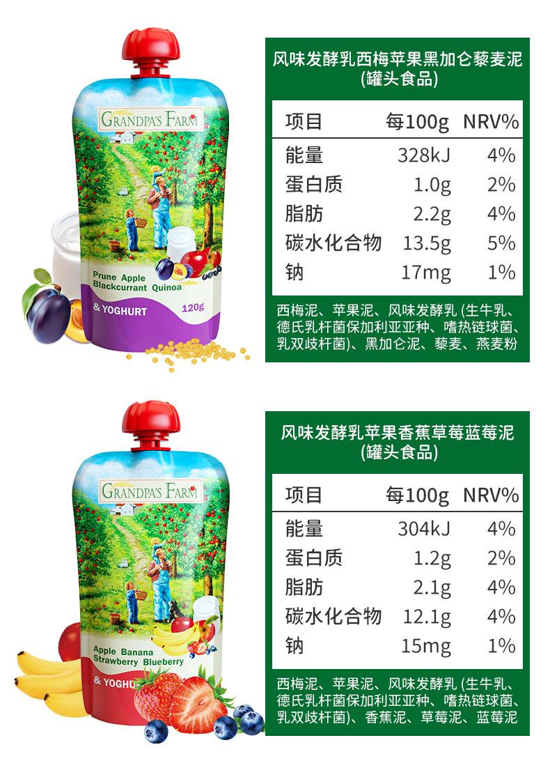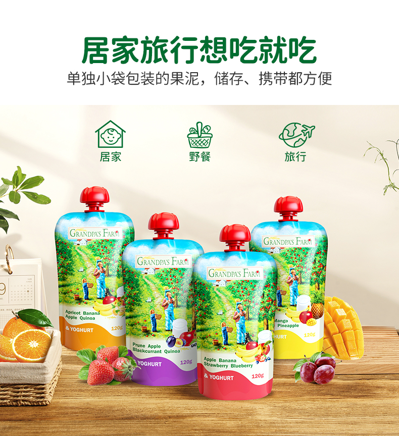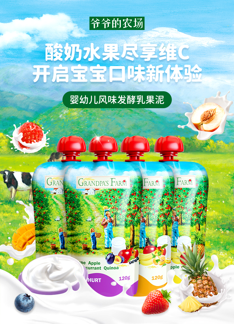 【云优选】6月+ | 爷爷的农场风味发酵乳酸奶果泥120g*4袋