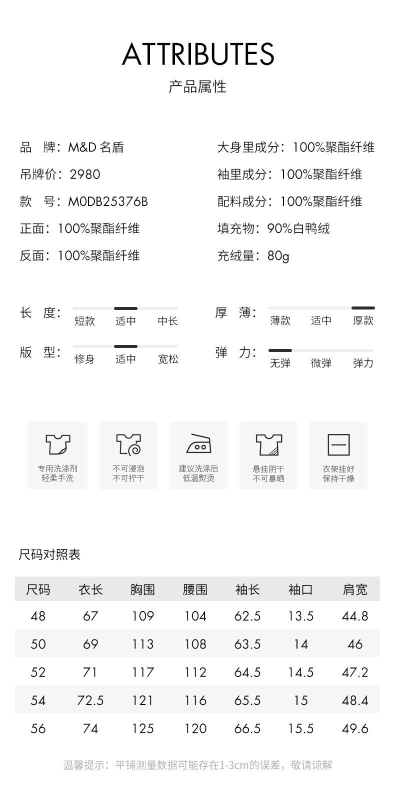 | 填充物: 白鸭绒 | 货号: M0DB25376B |
