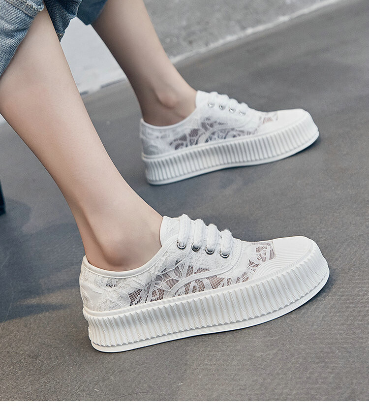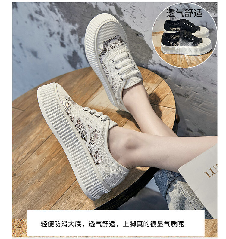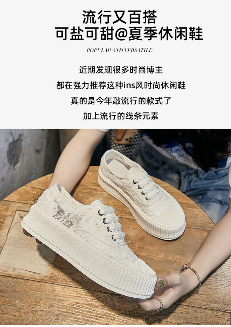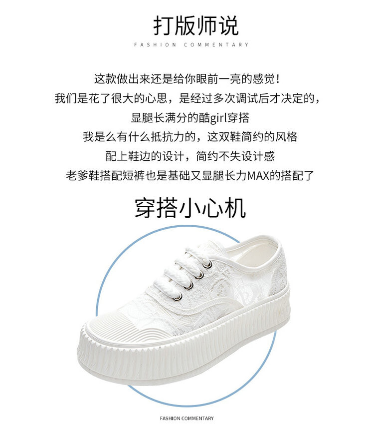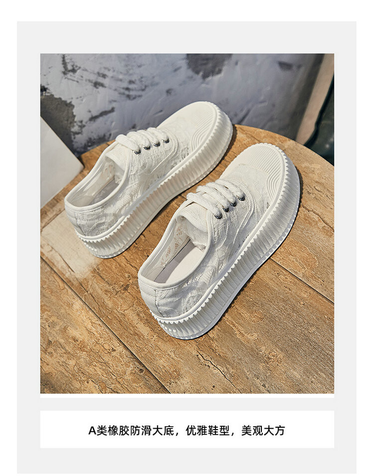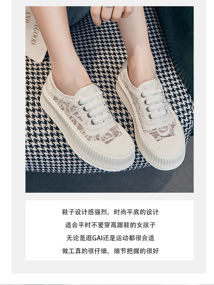 小香风蕾丝渔夫鞋,网面透气休闲板鞋小白鞋 KFY-18213