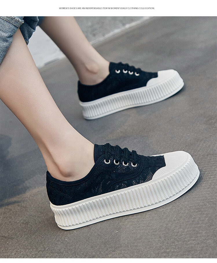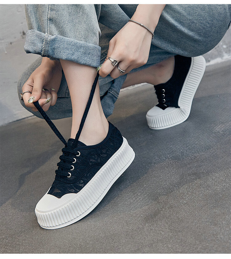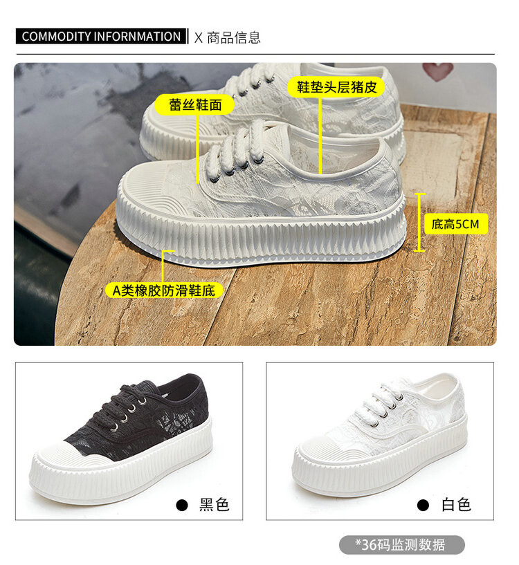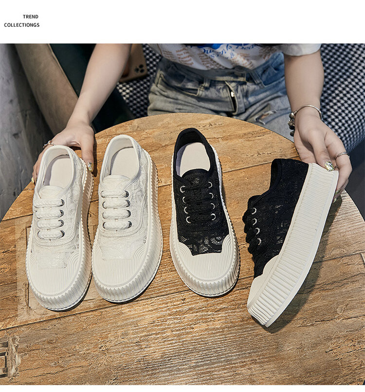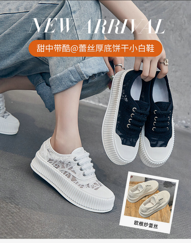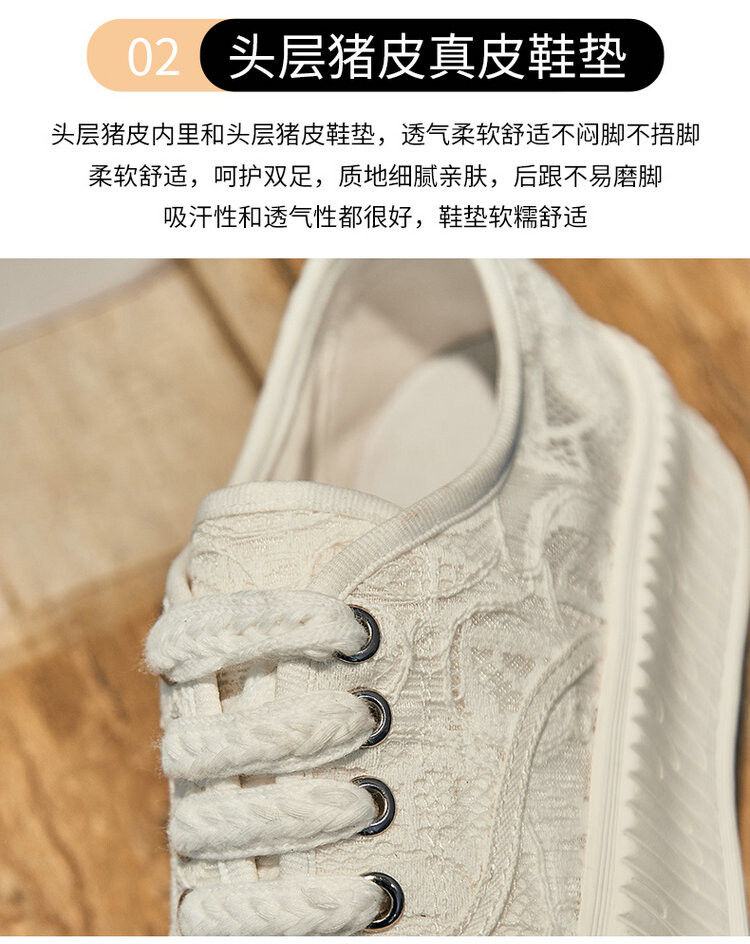 小香风蕾丝渔夫鞋,网面透气休闲板鞋小白鞋 KFY-18213