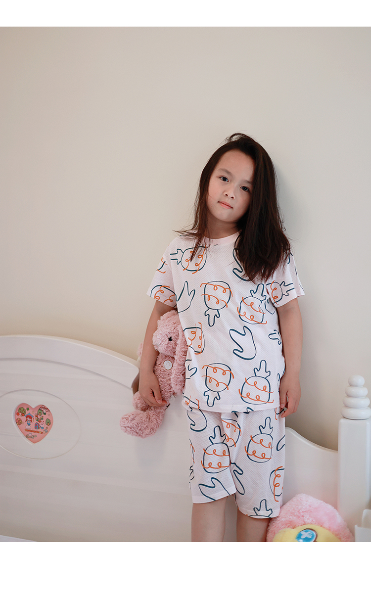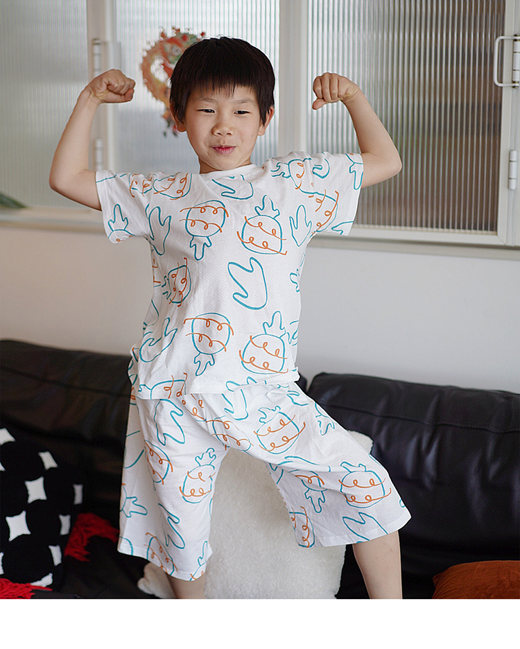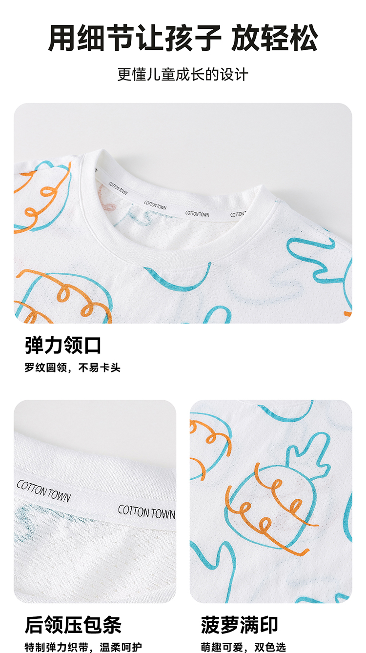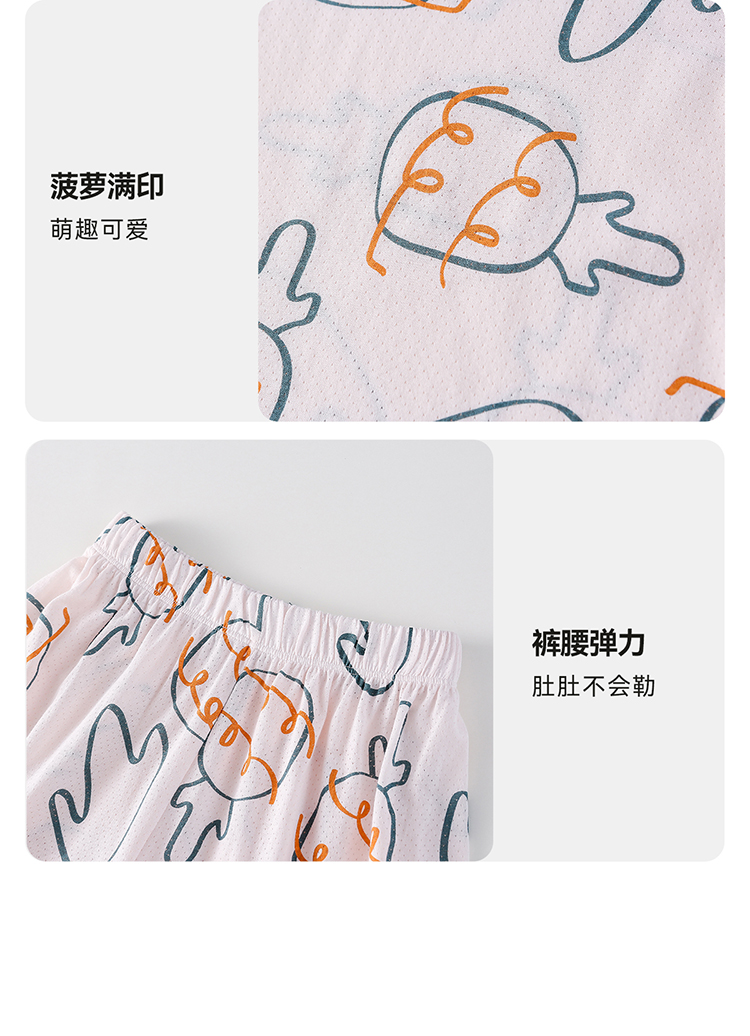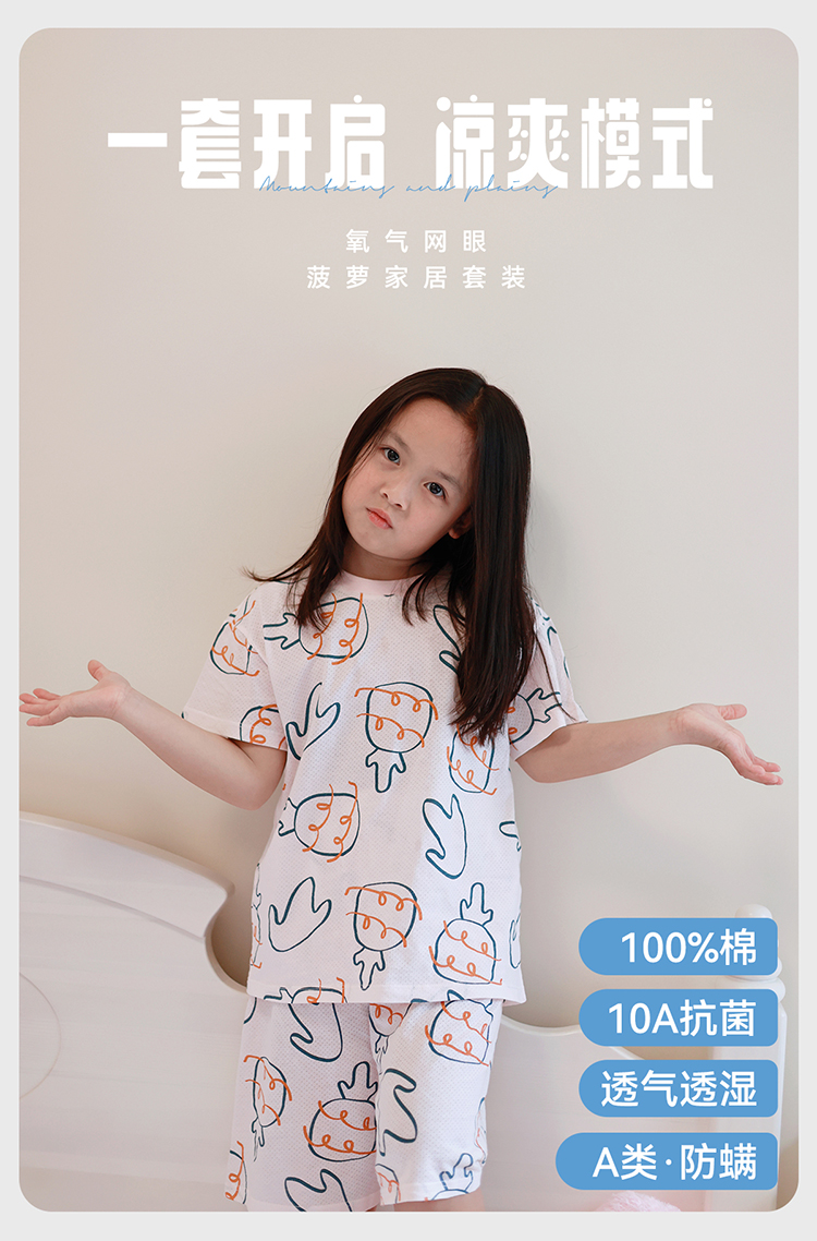 【10A抗菌纯棉】棉花堂夏款氧气网眼菠萝儿童居家套装 --FA61174