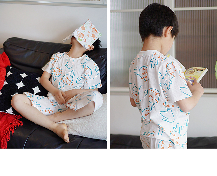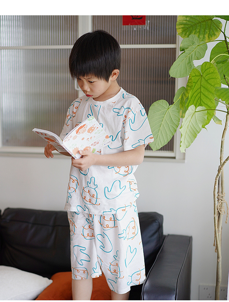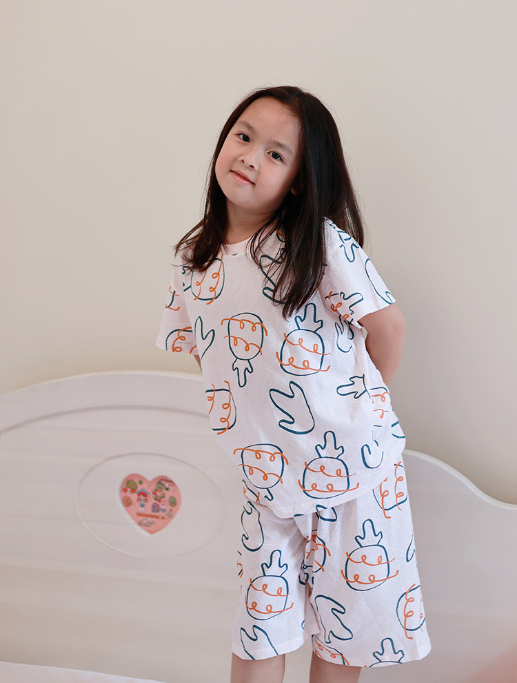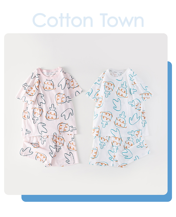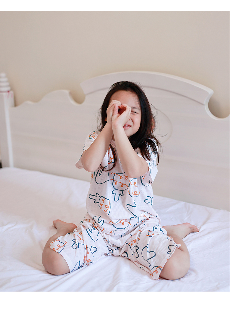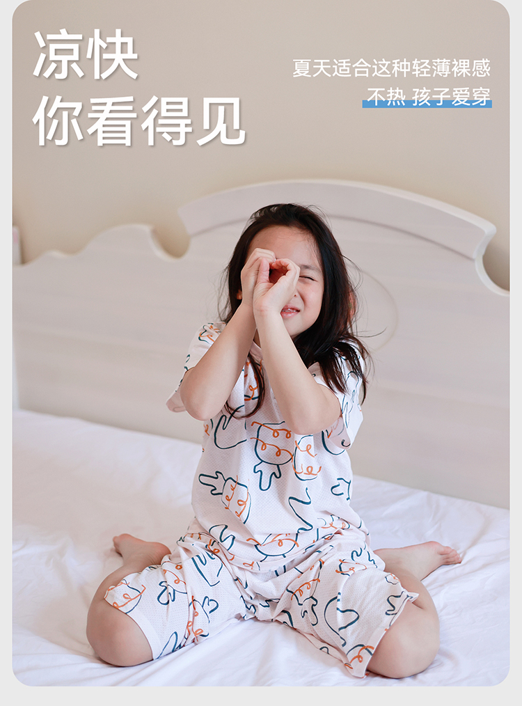 【10A抗菌纯棉】棉花堂夏款氧气网眼菠萝儿童居家套装 --FA61174