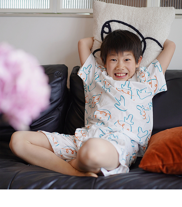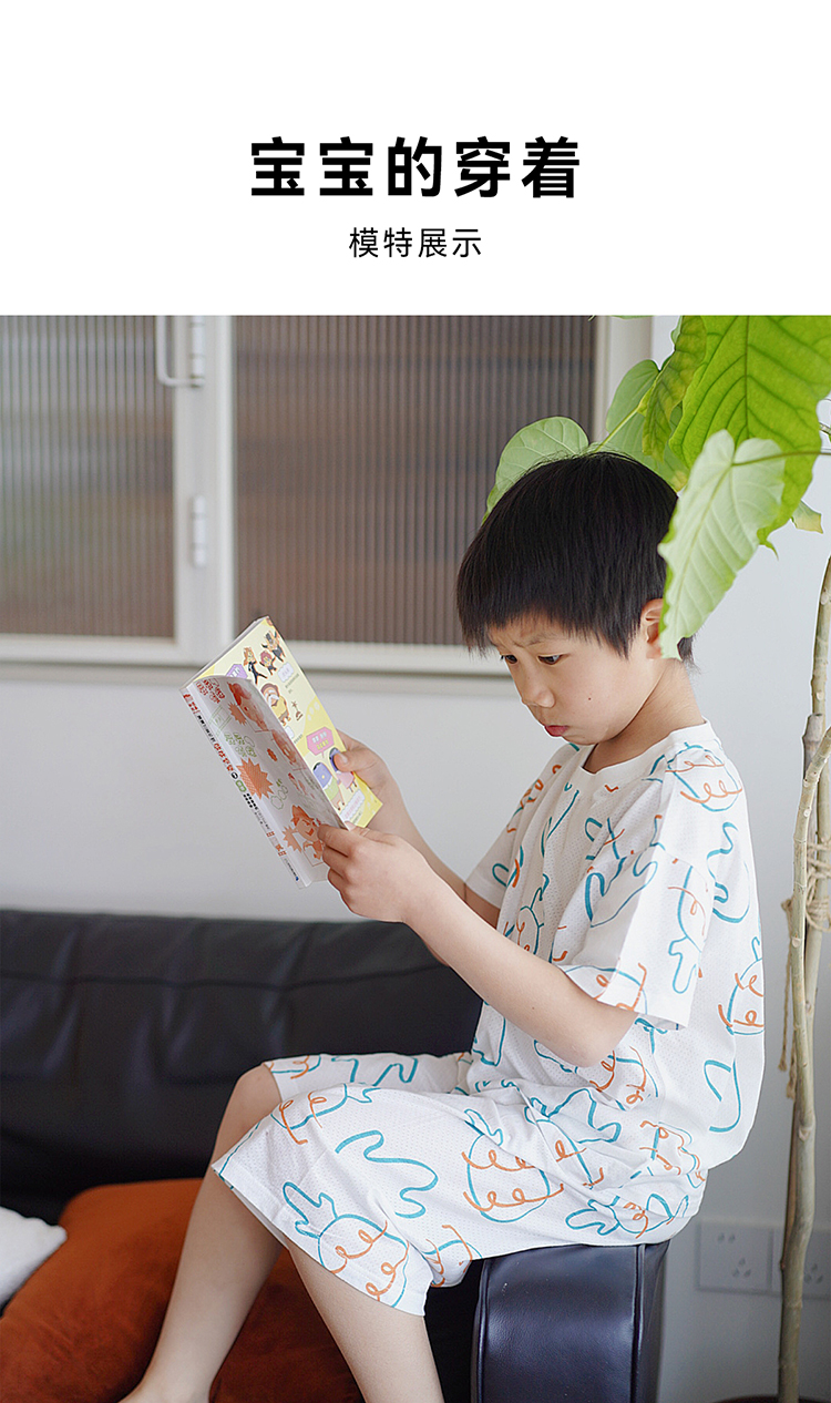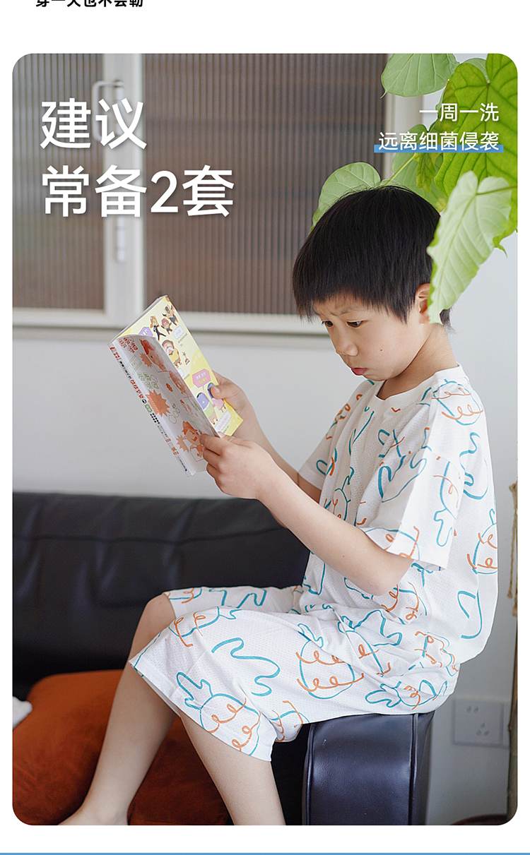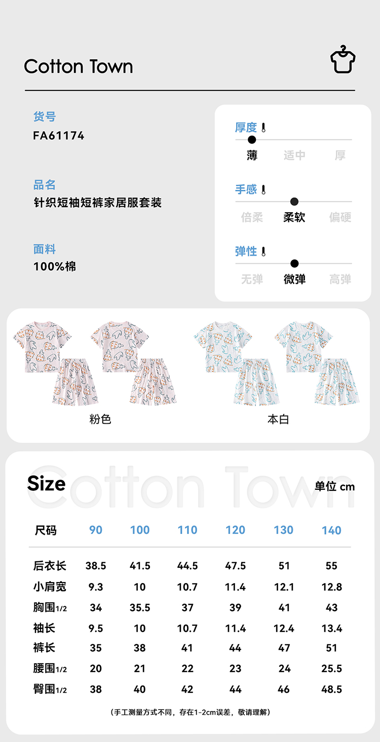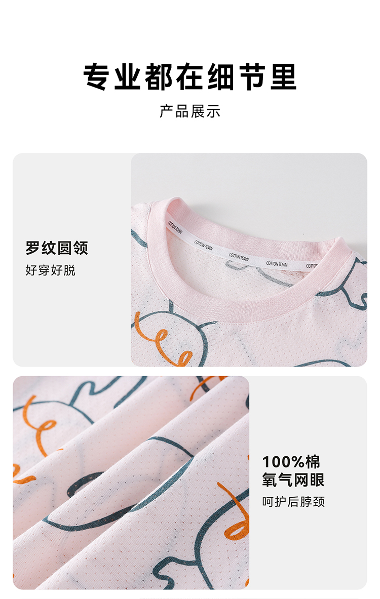 【10A抗菌纯棉】棉花堂夏款氧气网眼菠萝儿童居家套装 --FA61174