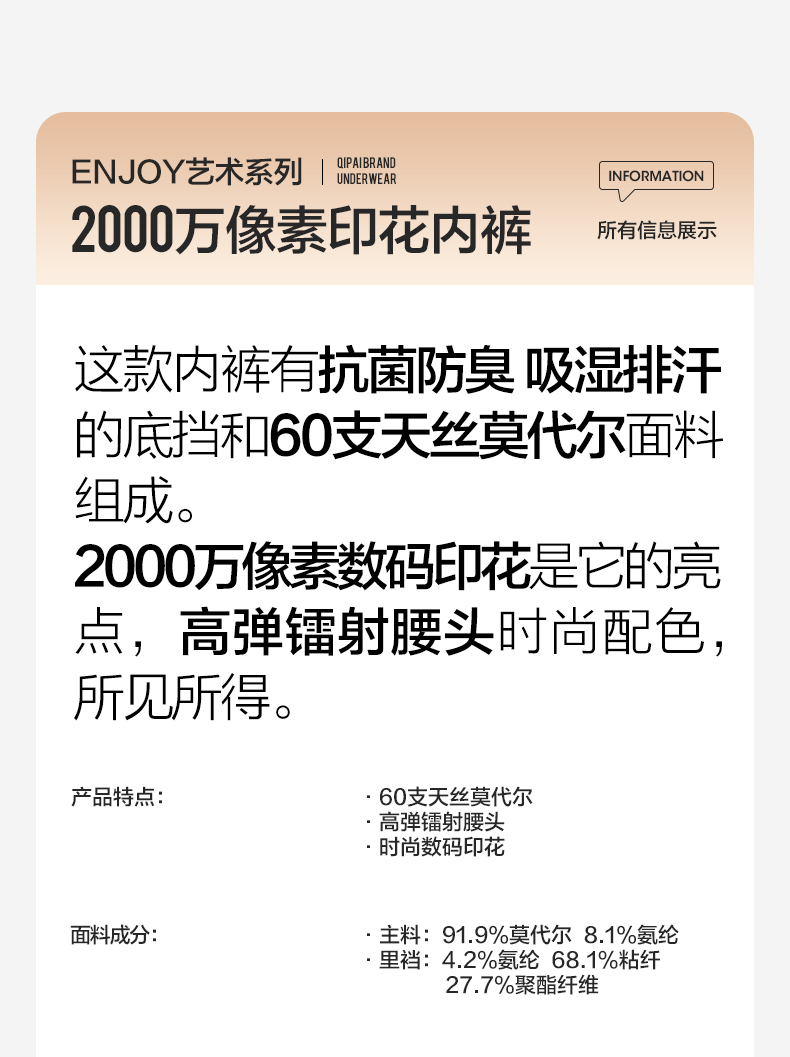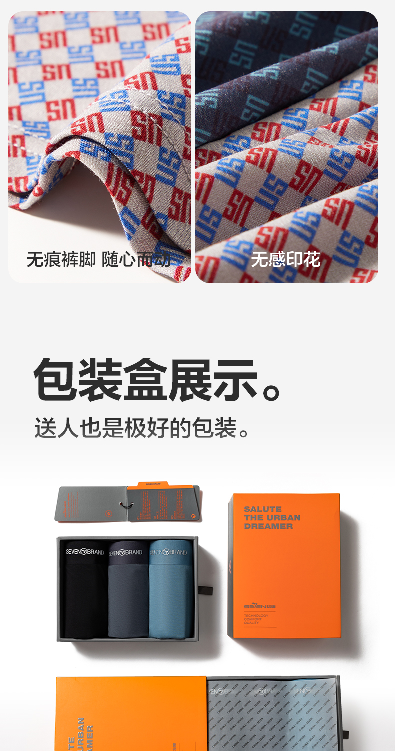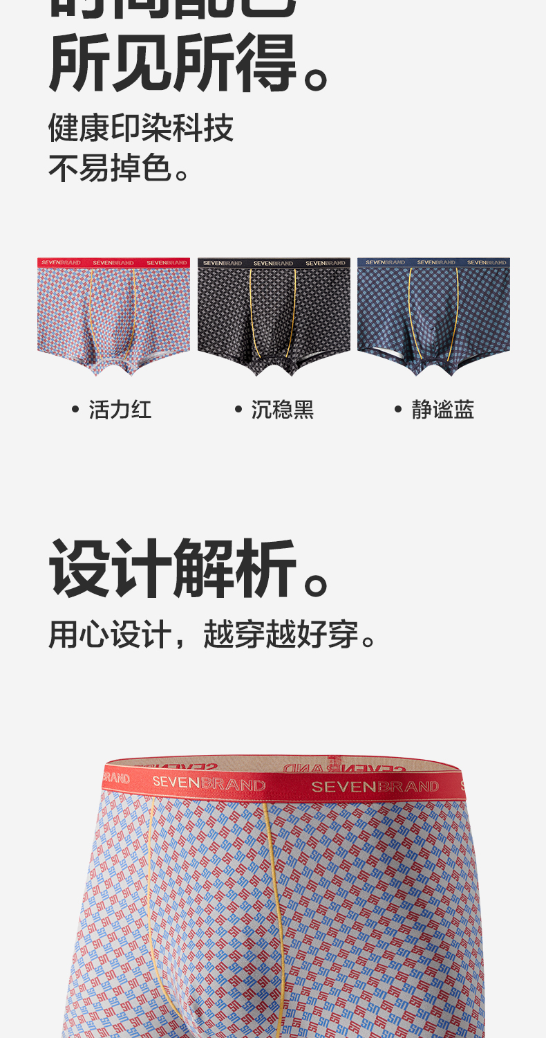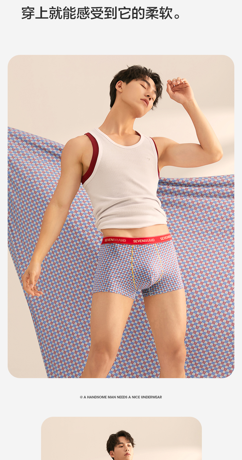 【单条装】柒牌天丝莫代尔内裤男高级奢侈感抑菌透气柔软平角四角短裤送礼 125F70120