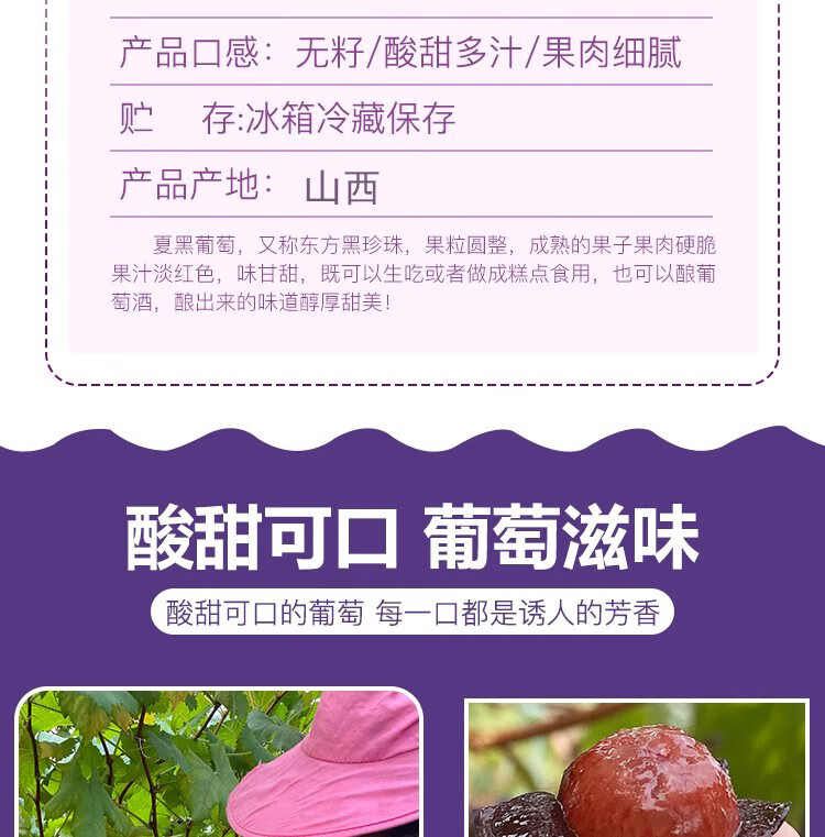 【夏黑葡萄】 无籽高甜自带玫瑰香 皮薄肉脆果冻口感