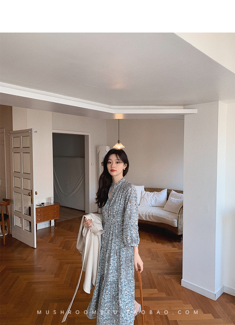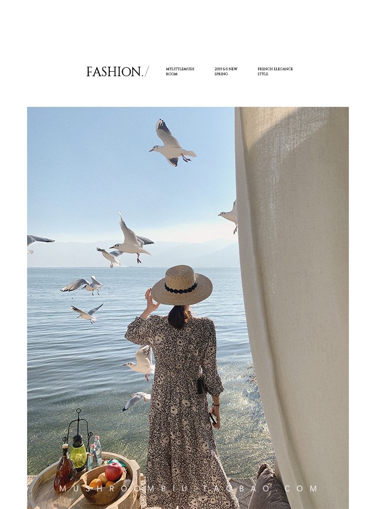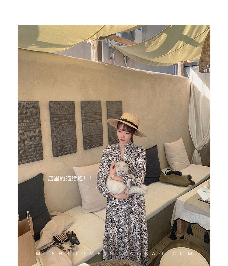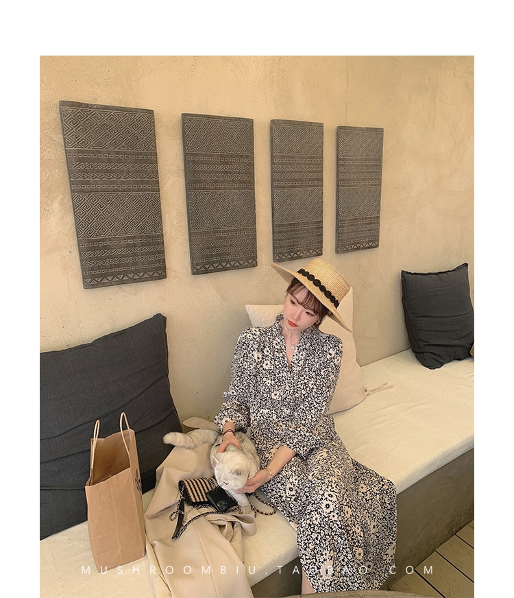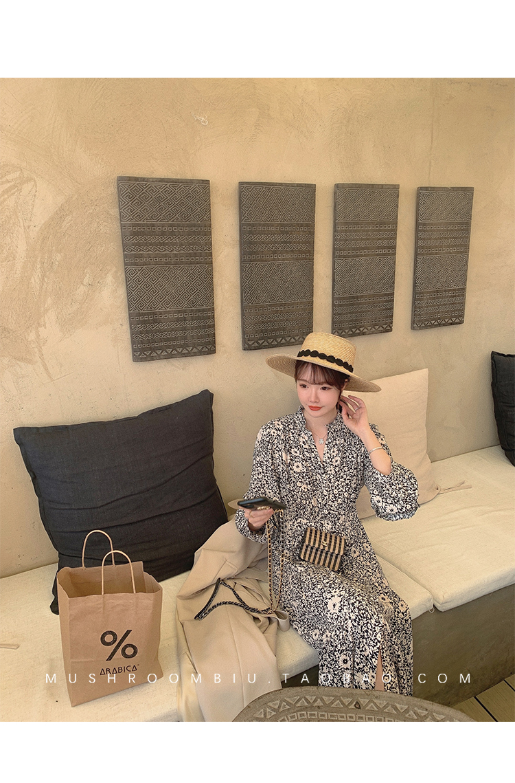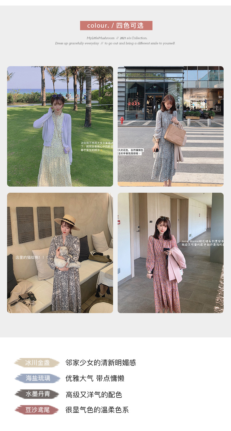 【金蘑菇菇 Jolie Mome南法假日】碎花系列~长款开叉连衣裙女