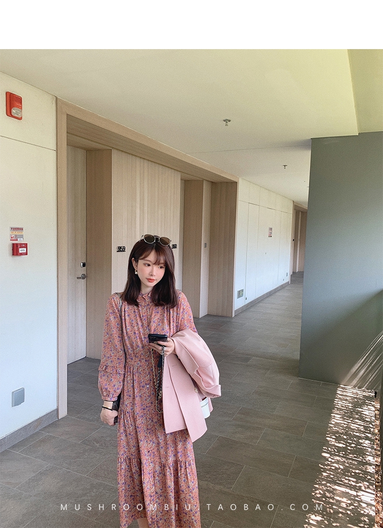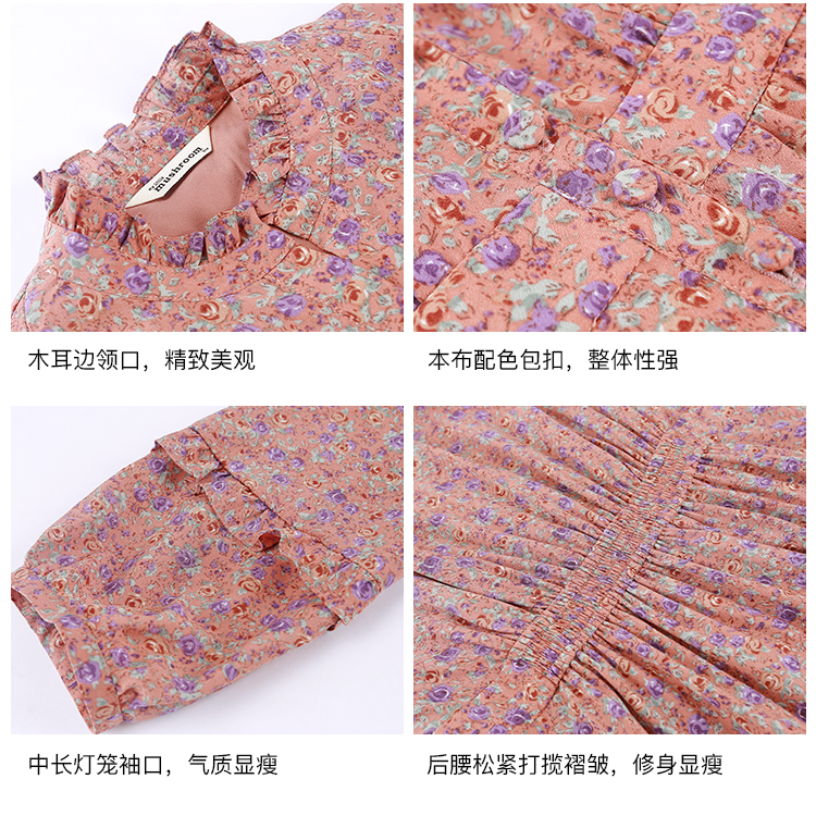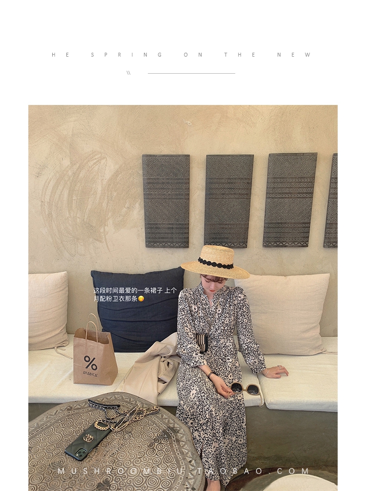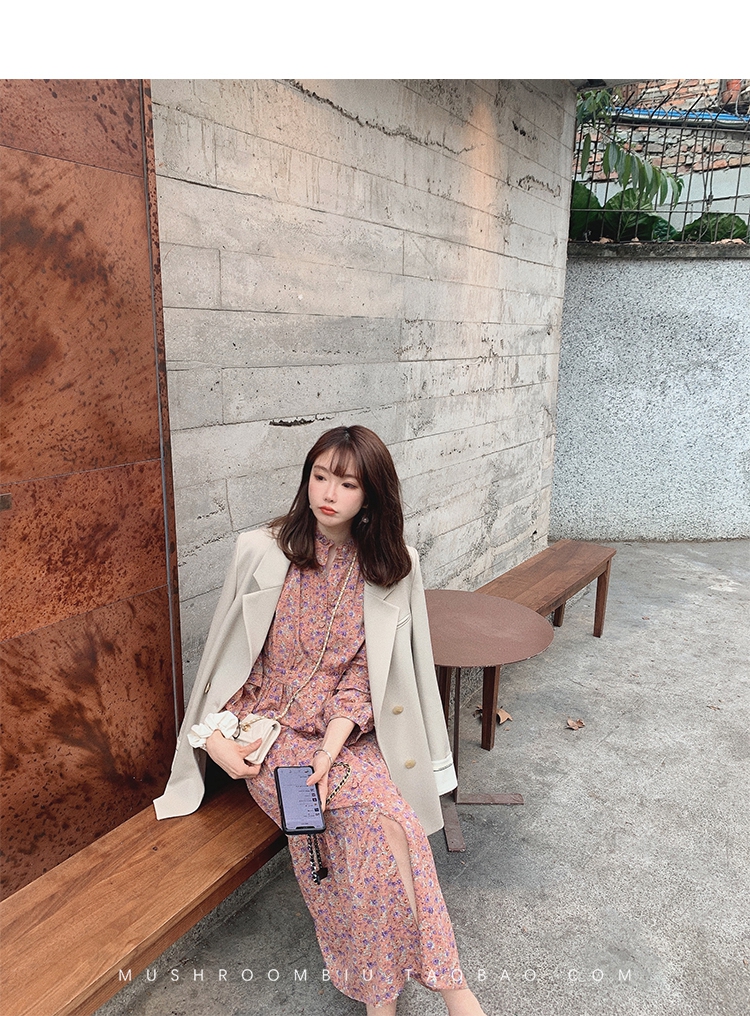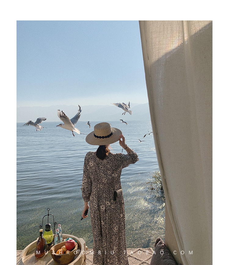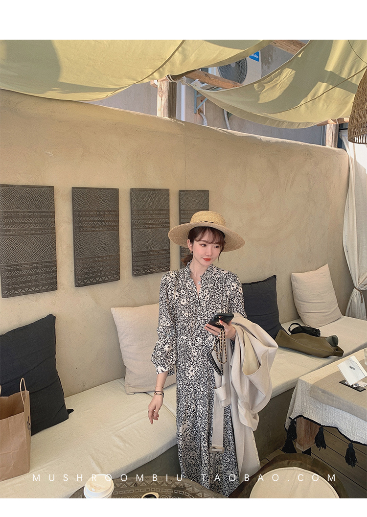 【金蘑菇菇 Jolie Mome南法假日】碎花系列~长款开叉连衣裙女