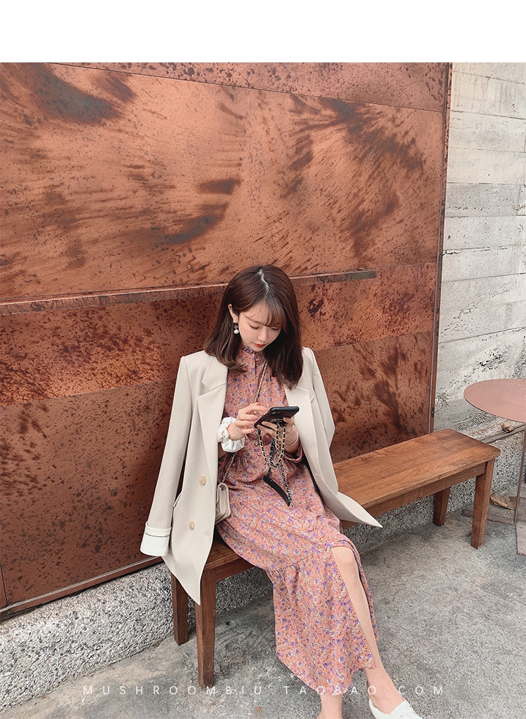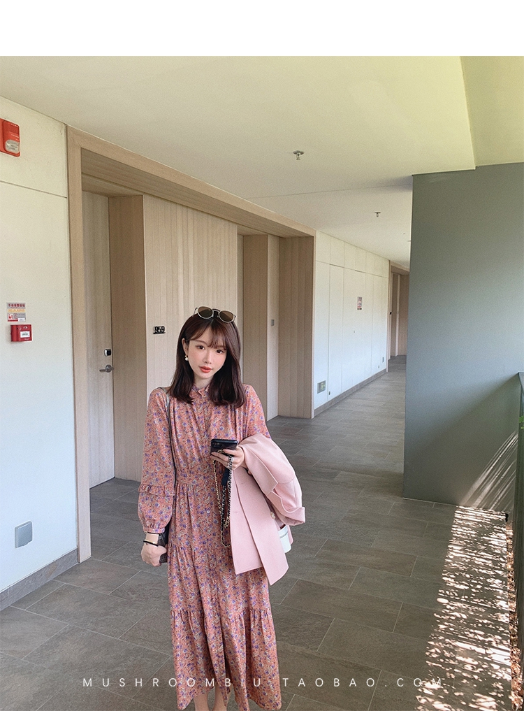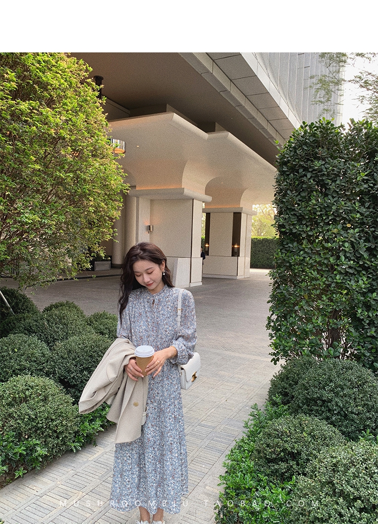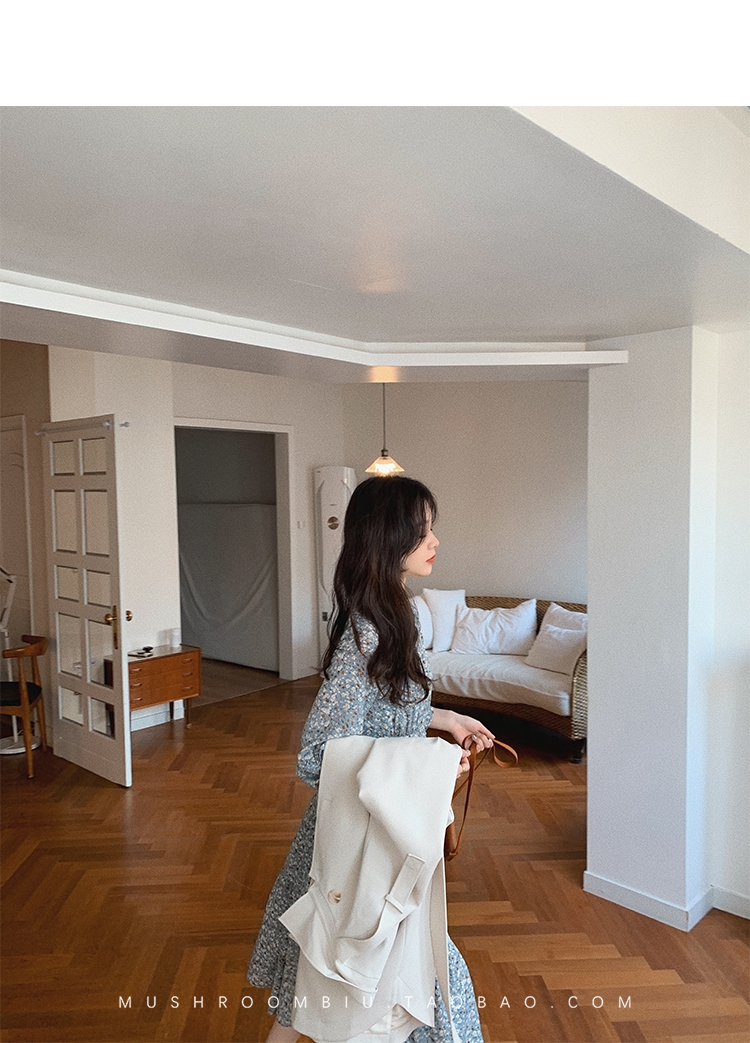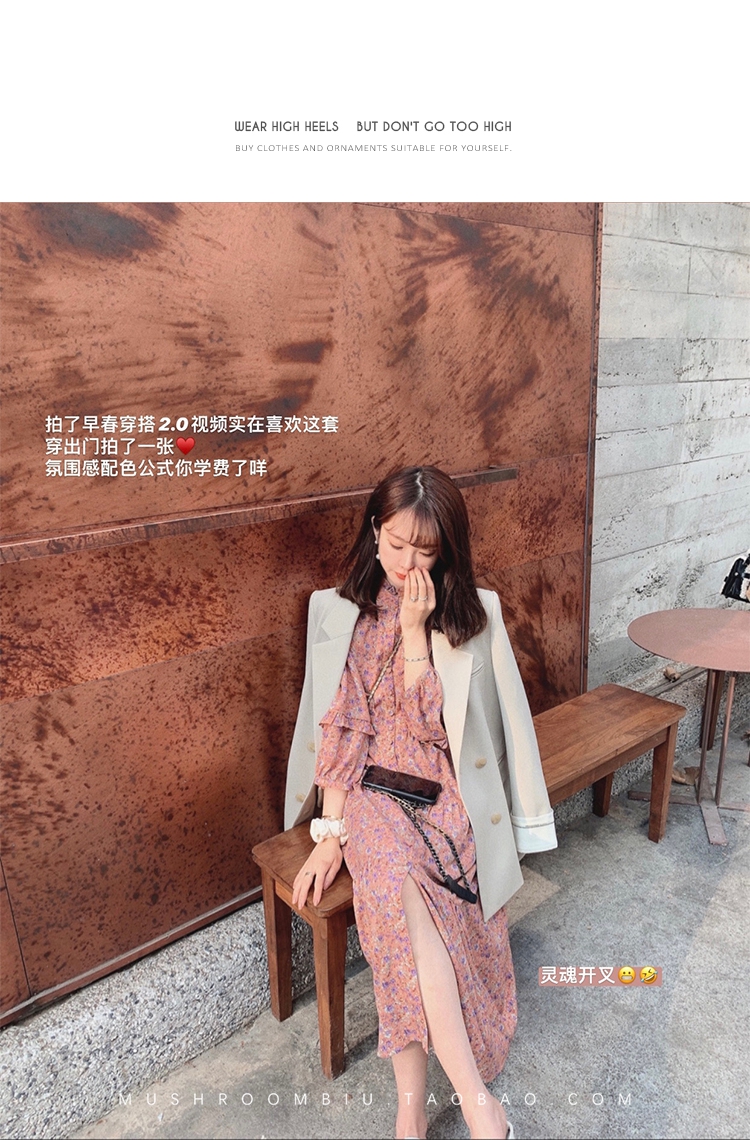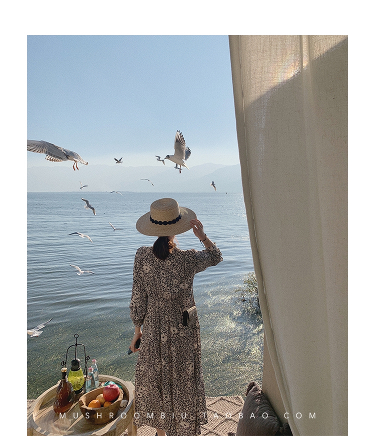 【金蘑菇菇 Jolie Mome南法假日】碎花系列~长款开叉连衣裙女