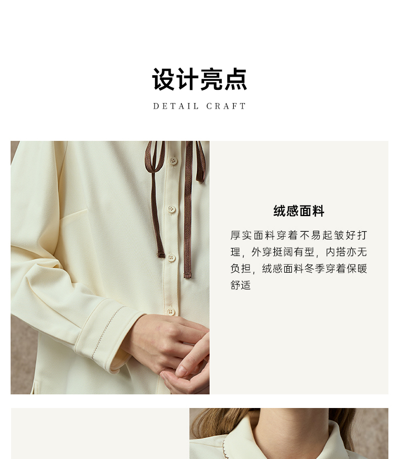 Famecoco范可儿法式气质系带衬衫绒感保暖衬衣FAC8BH017