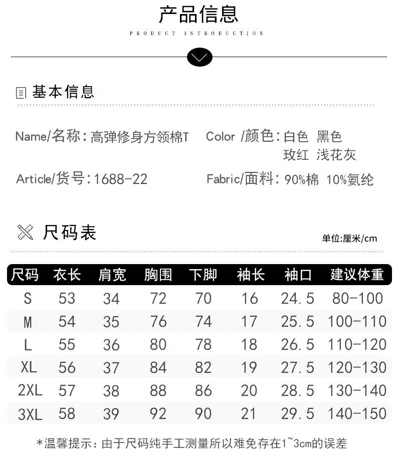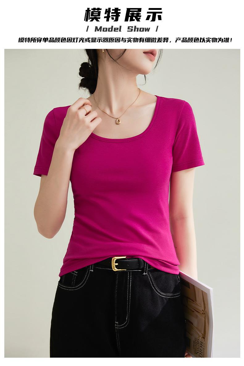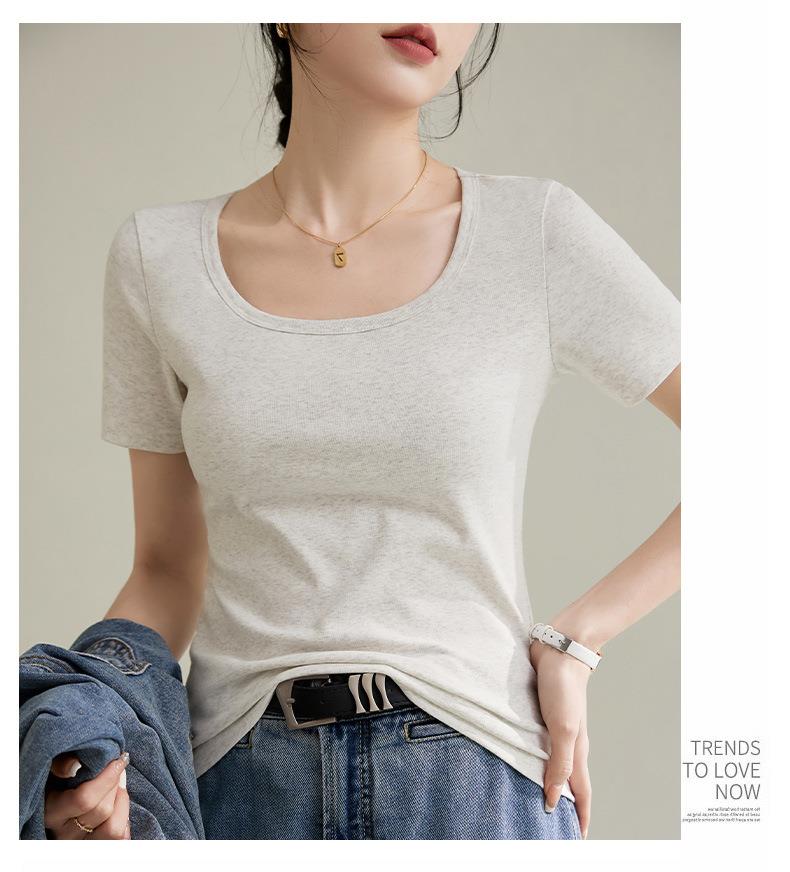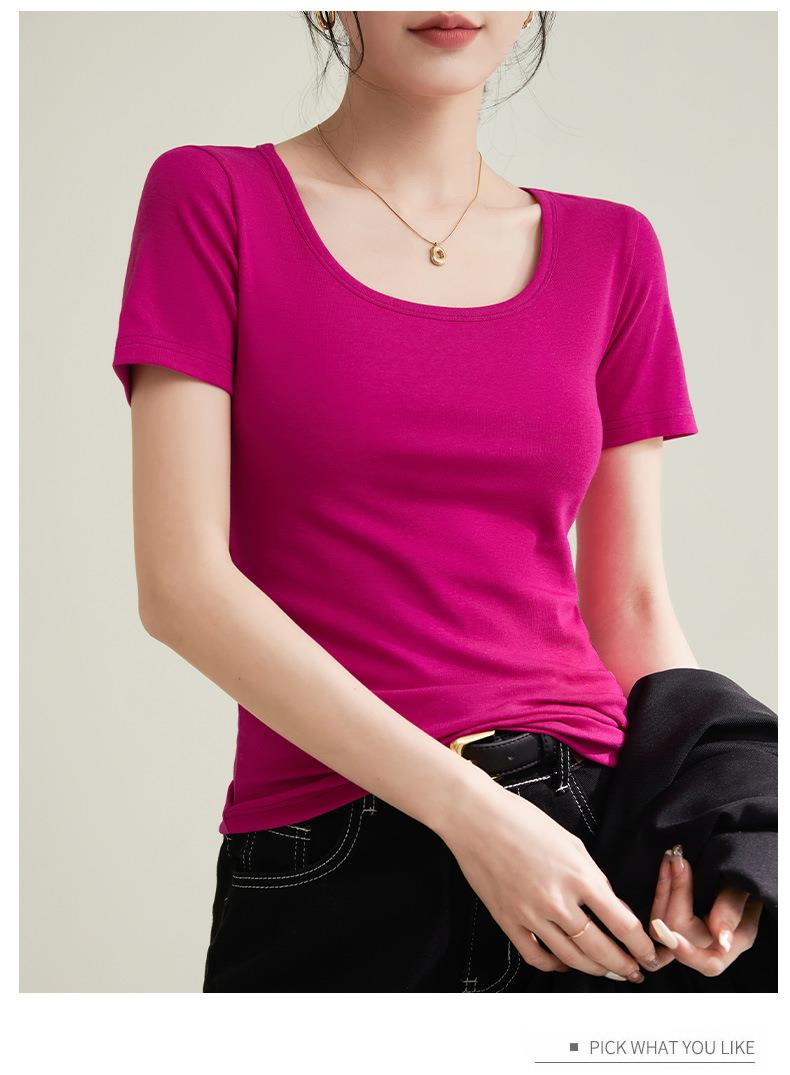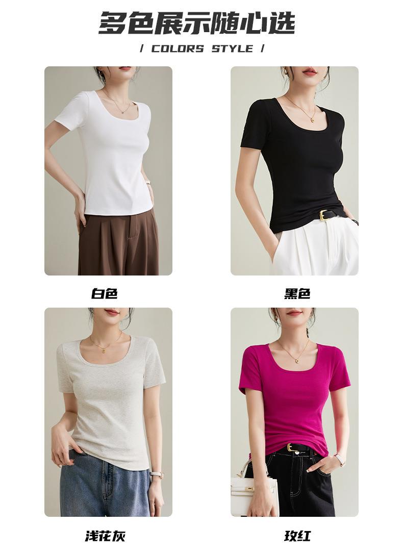 法式方圆领打底高级感高弹棉短袖T恤女2024春夏新款套头修身上衣