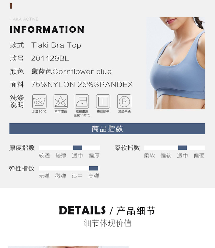 HAKATIAKIBraTop运动瑜伽塑形健身含胸垫瑜伽运动内衣(201129BL)