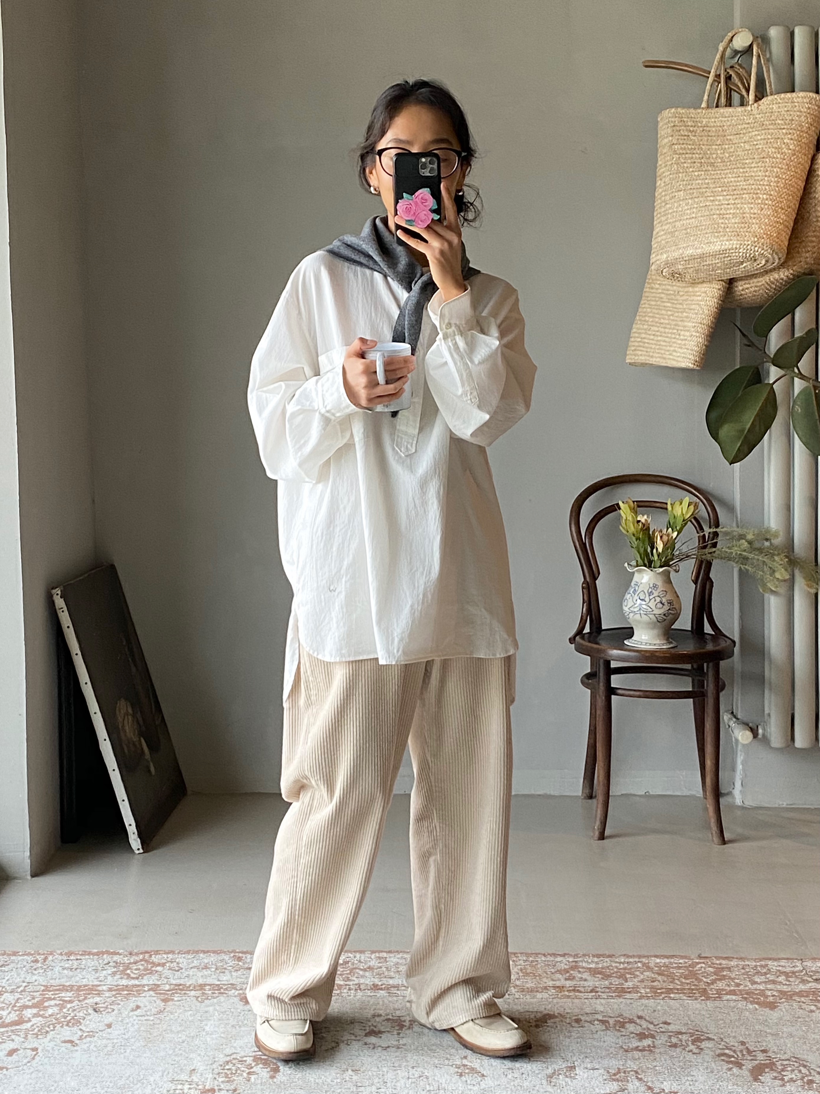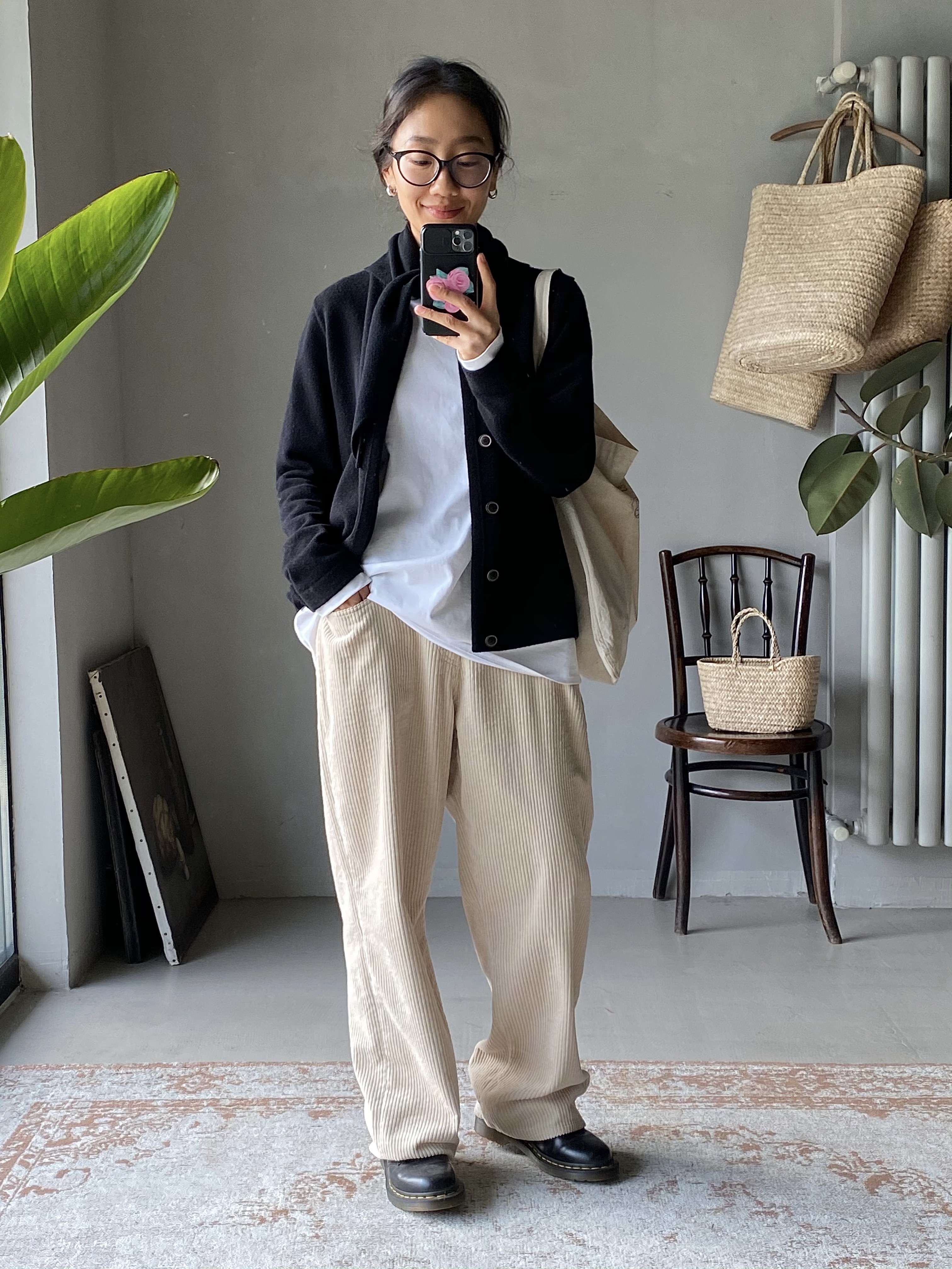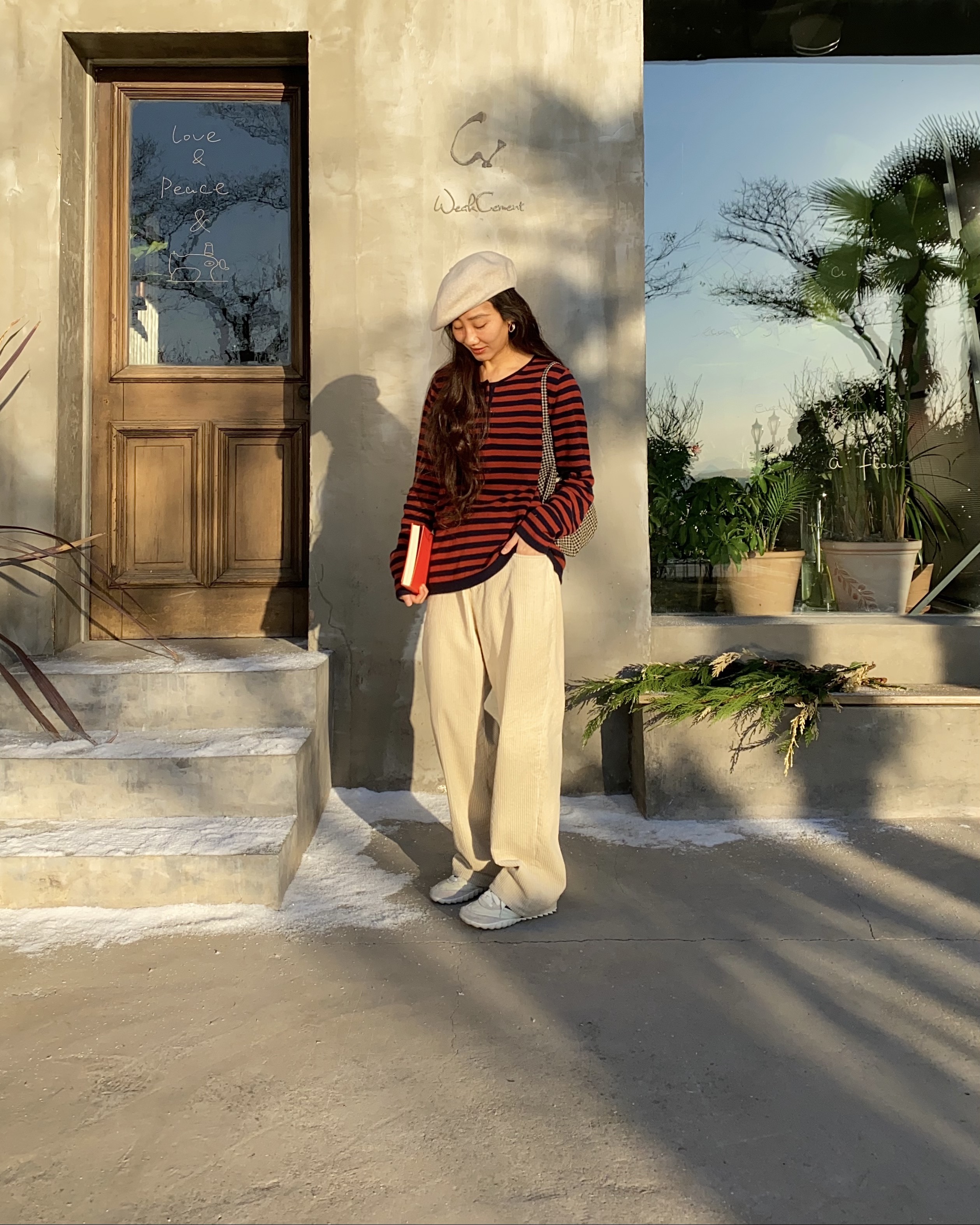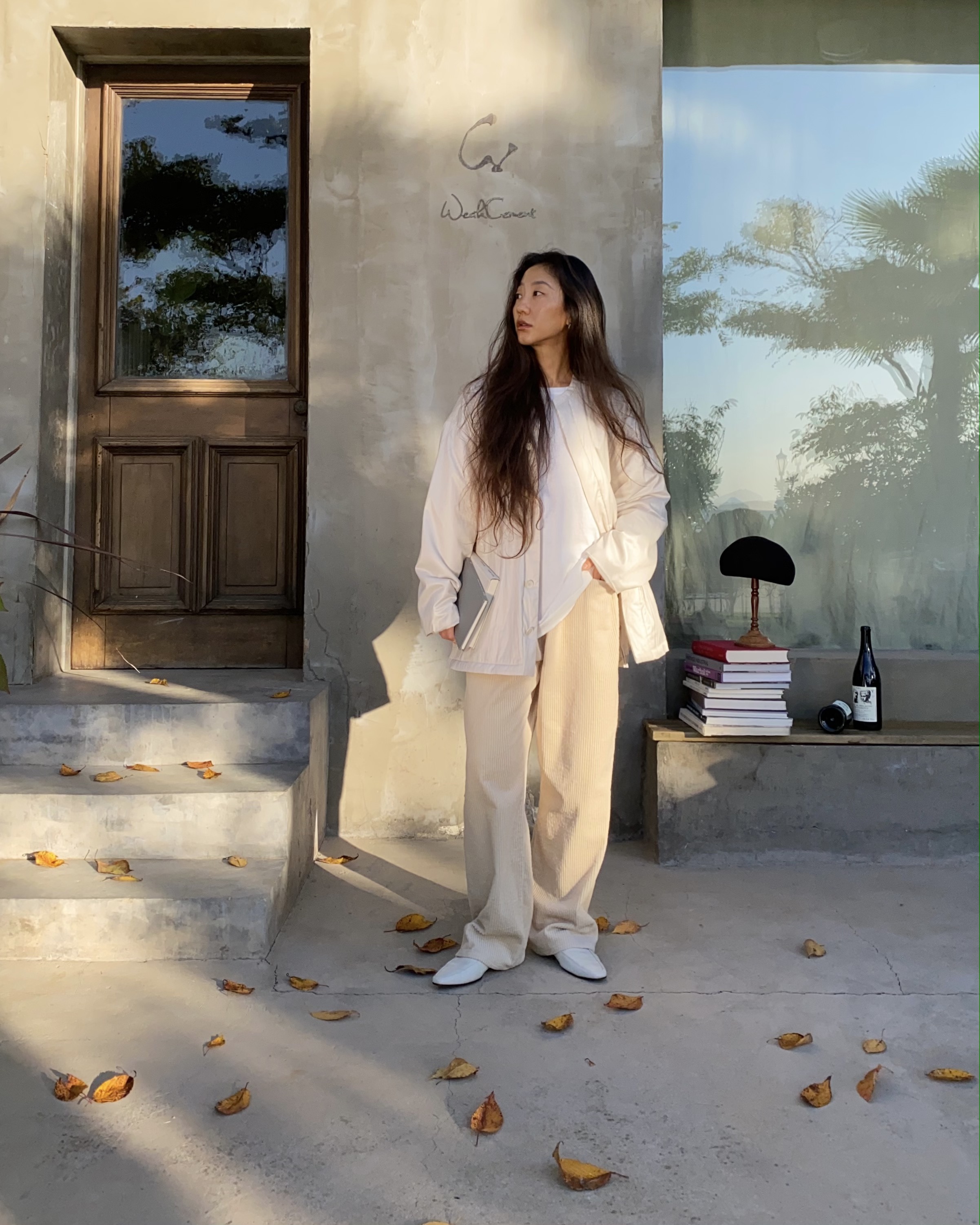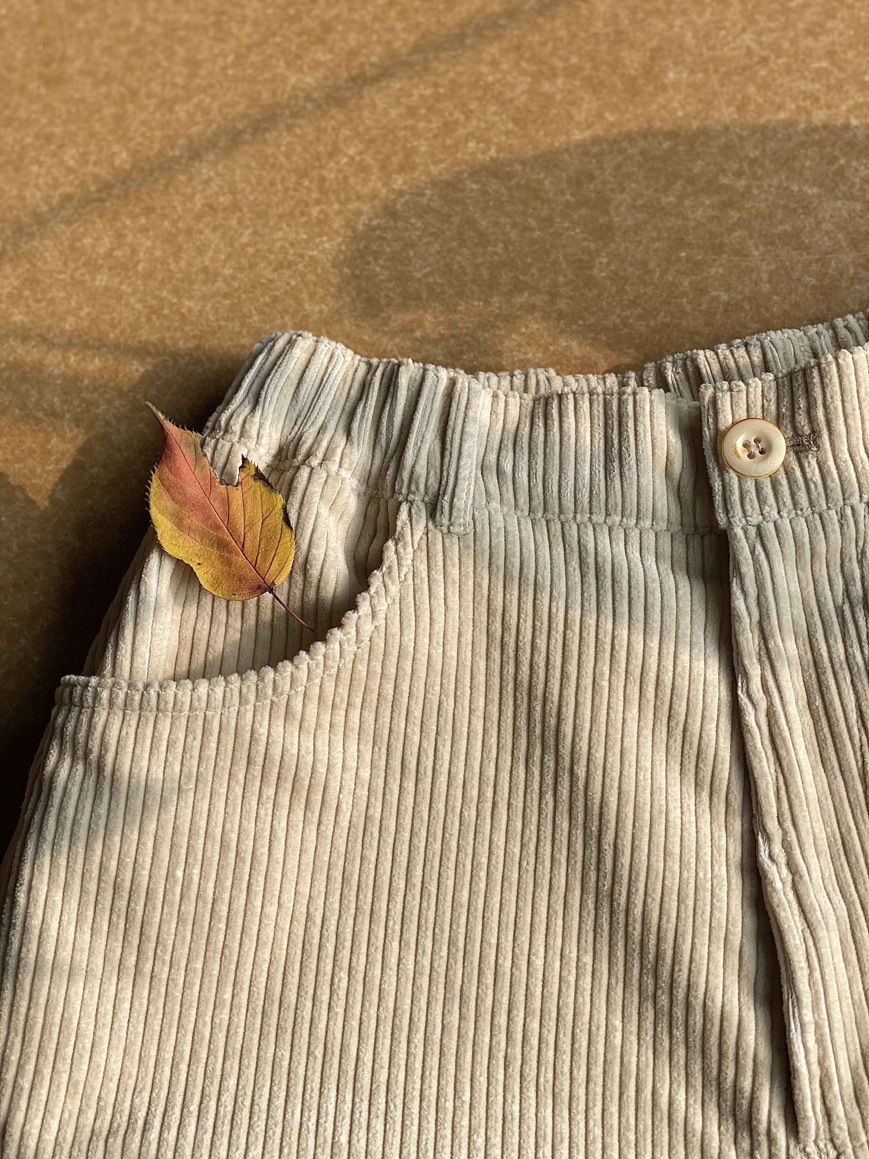 奶油白灯芯绒裤