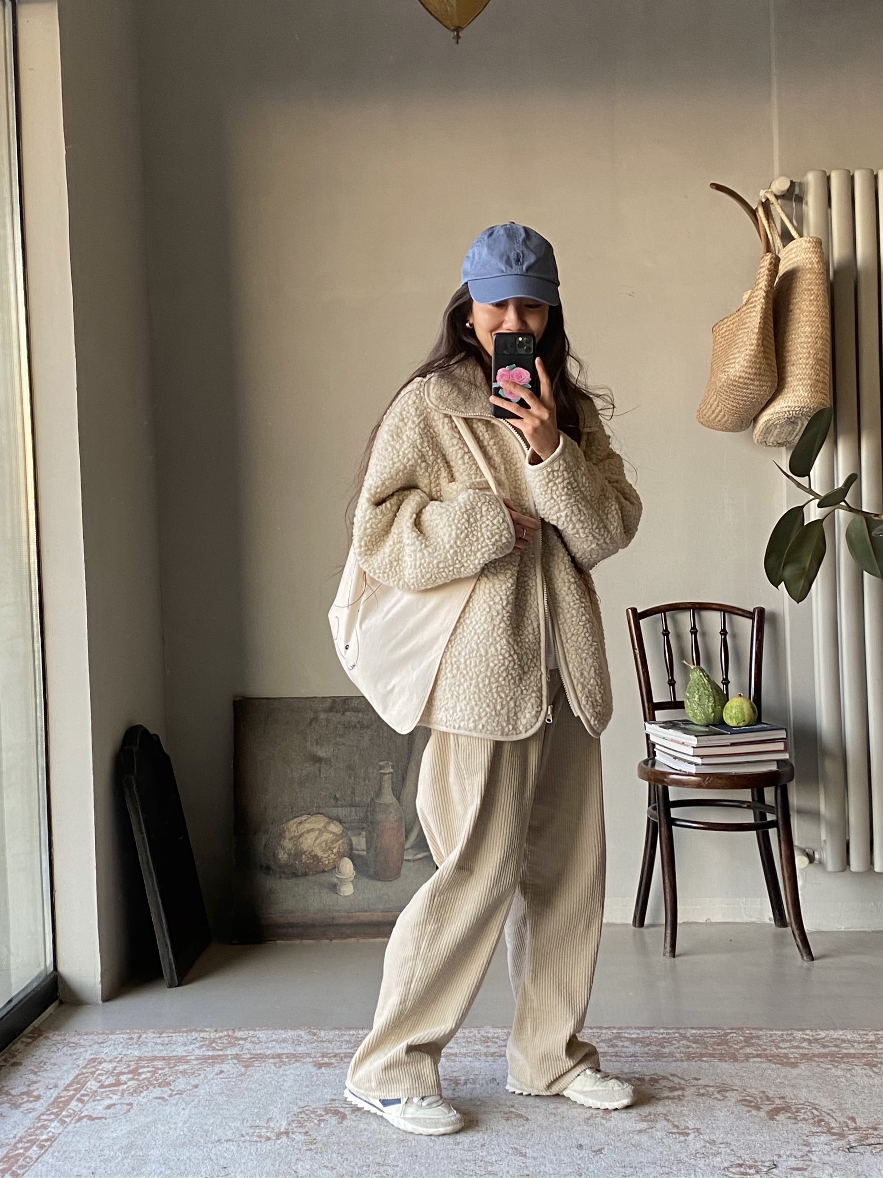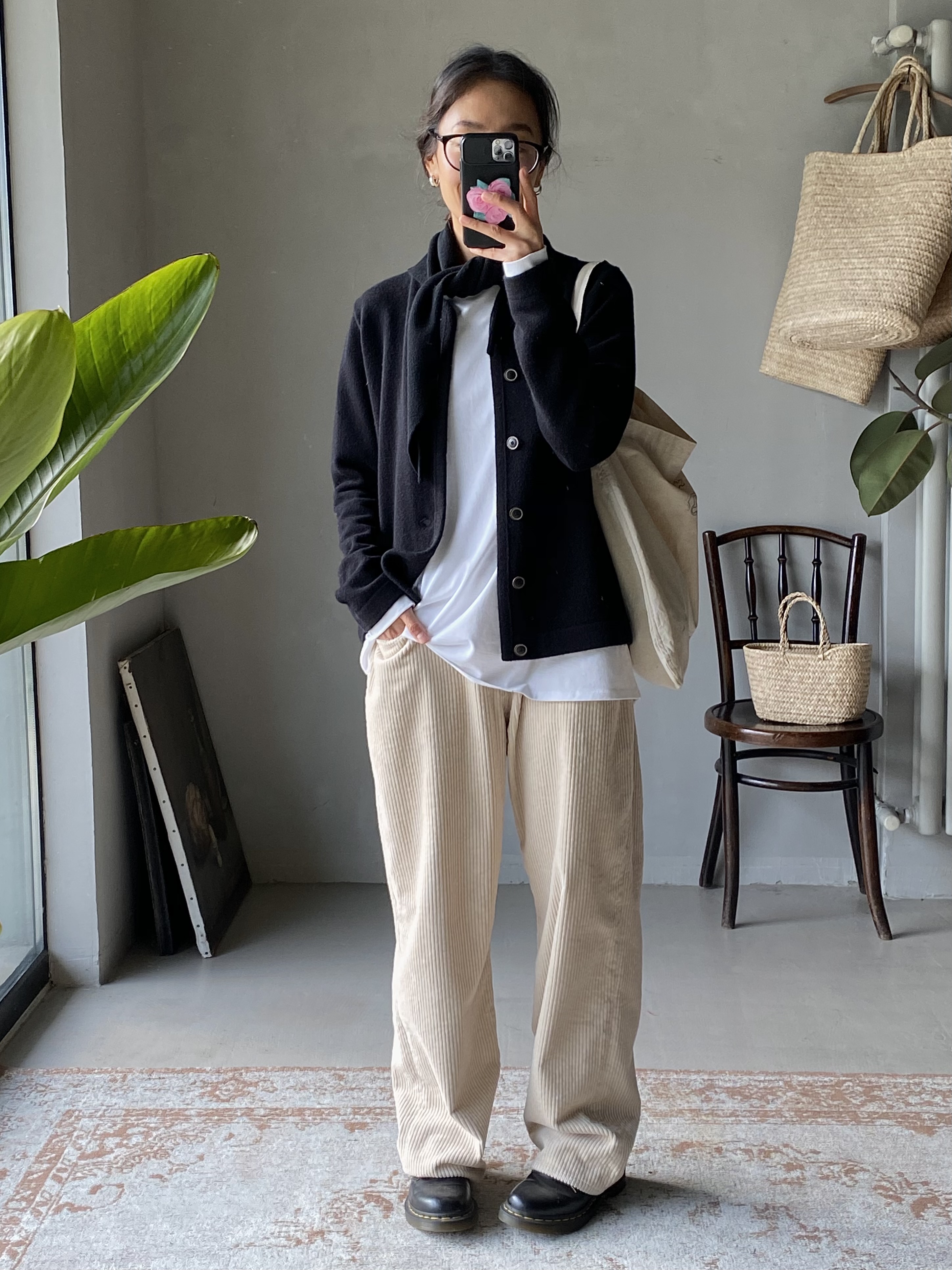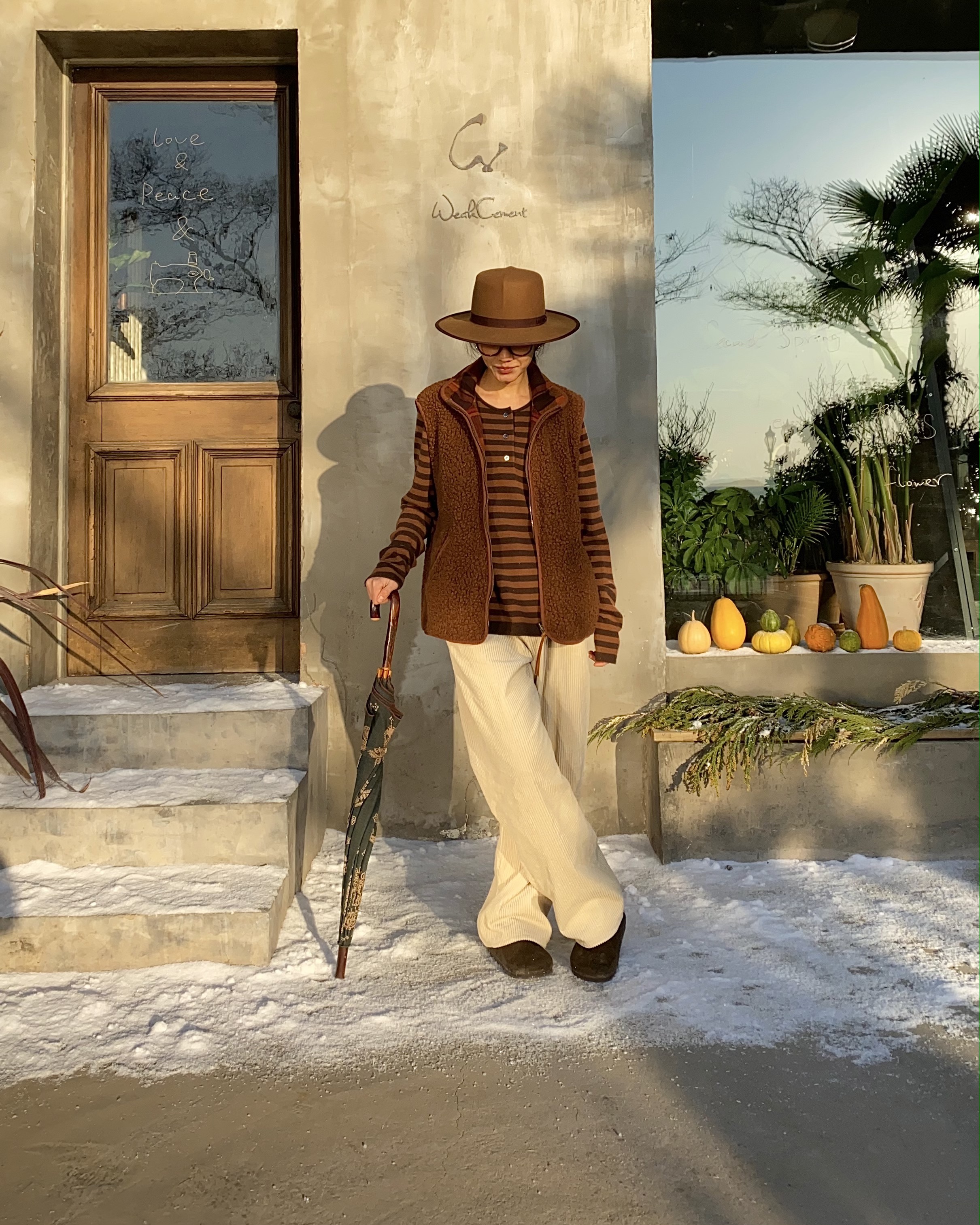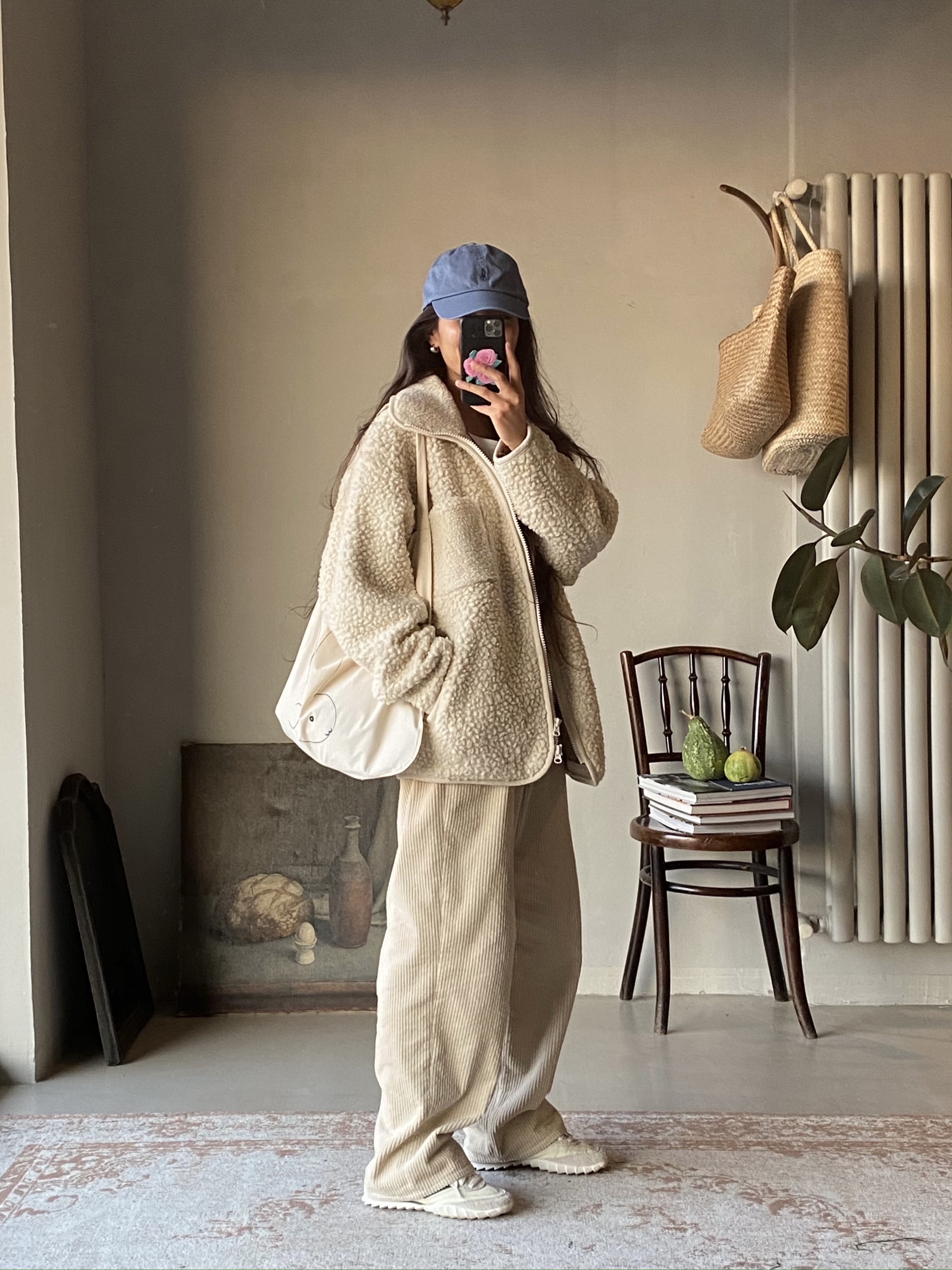 奶油白灯芯绒裤