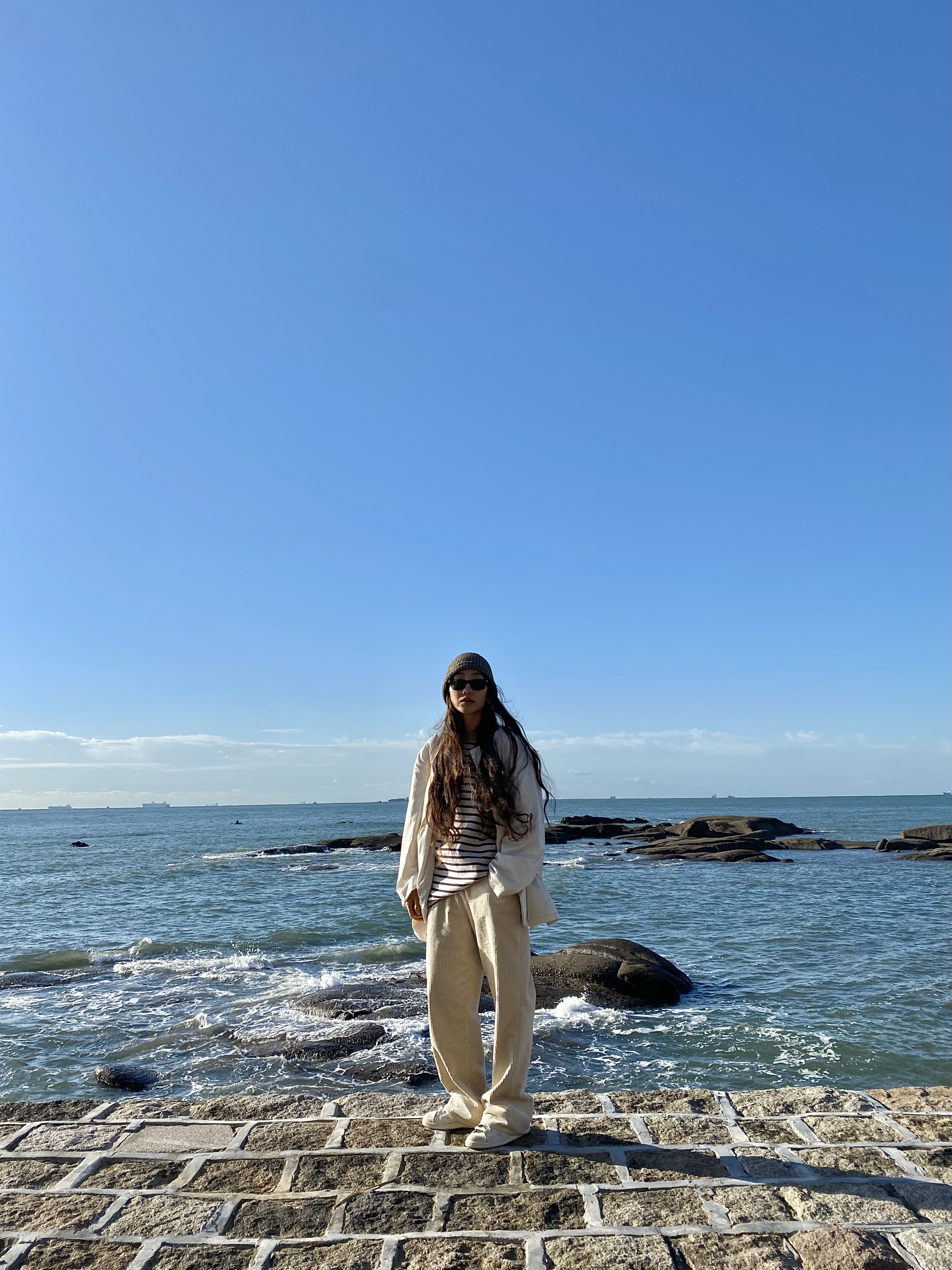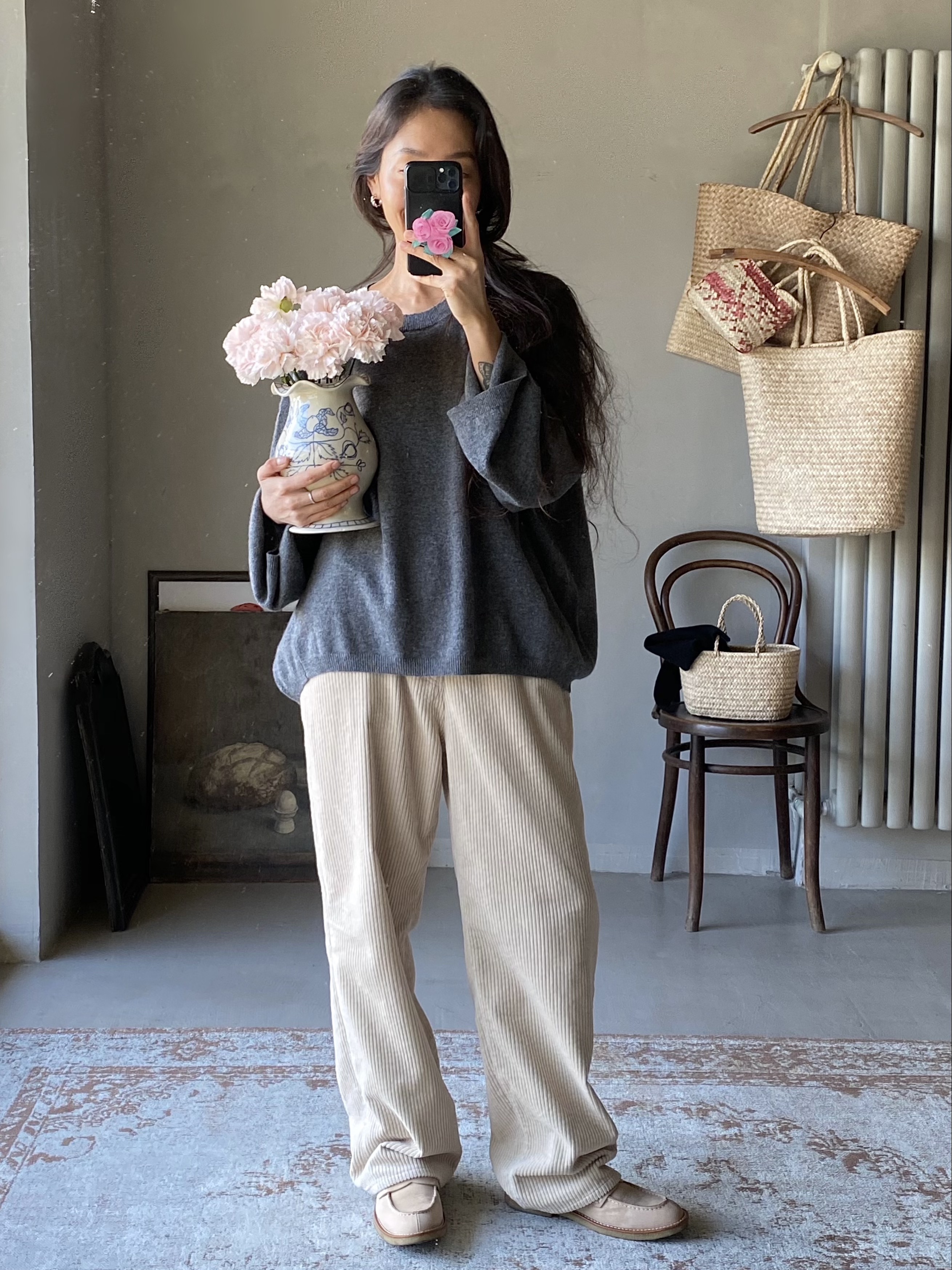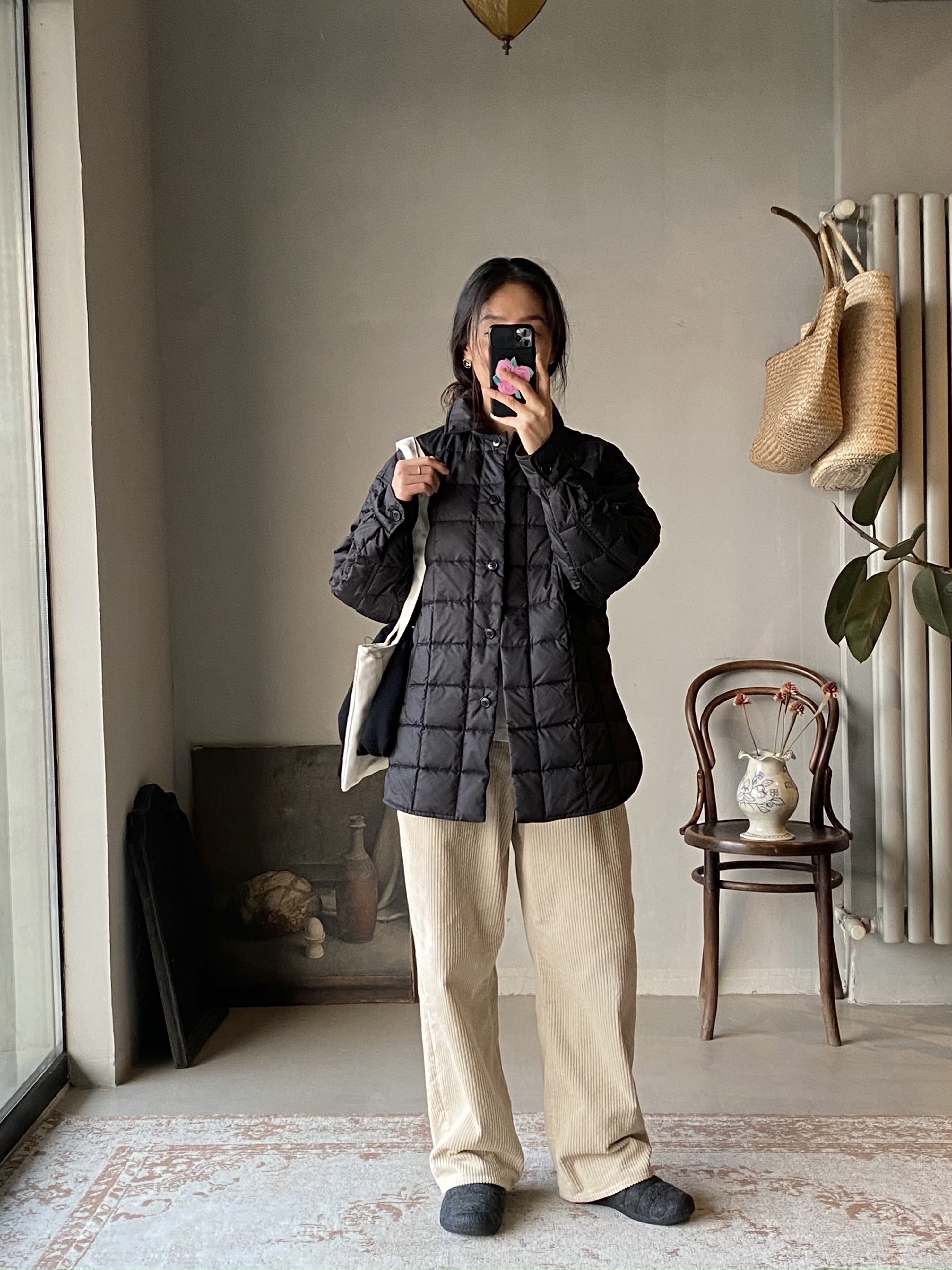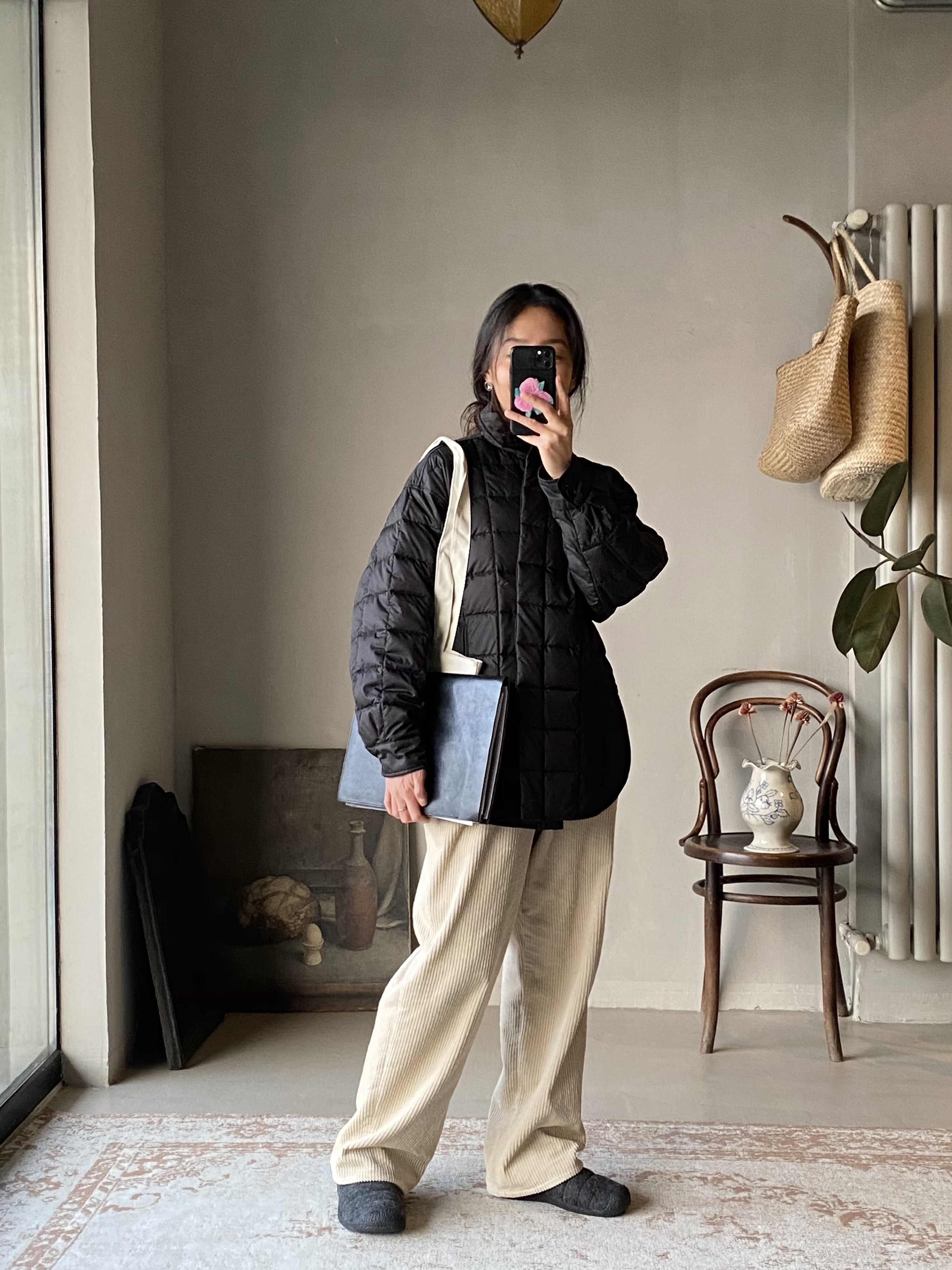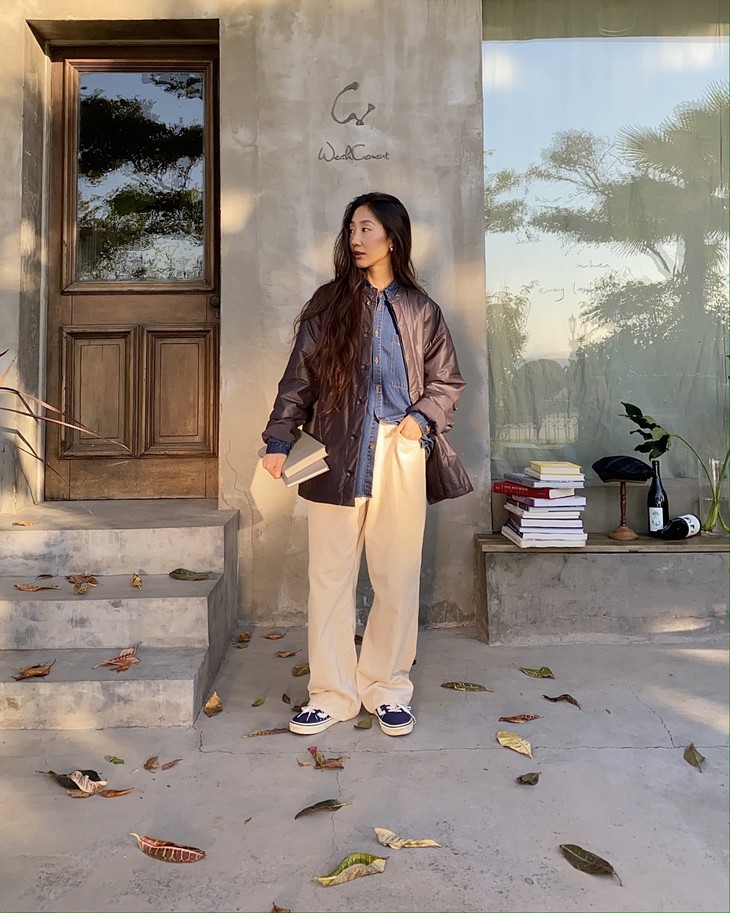 奶油白灯芯绒裤