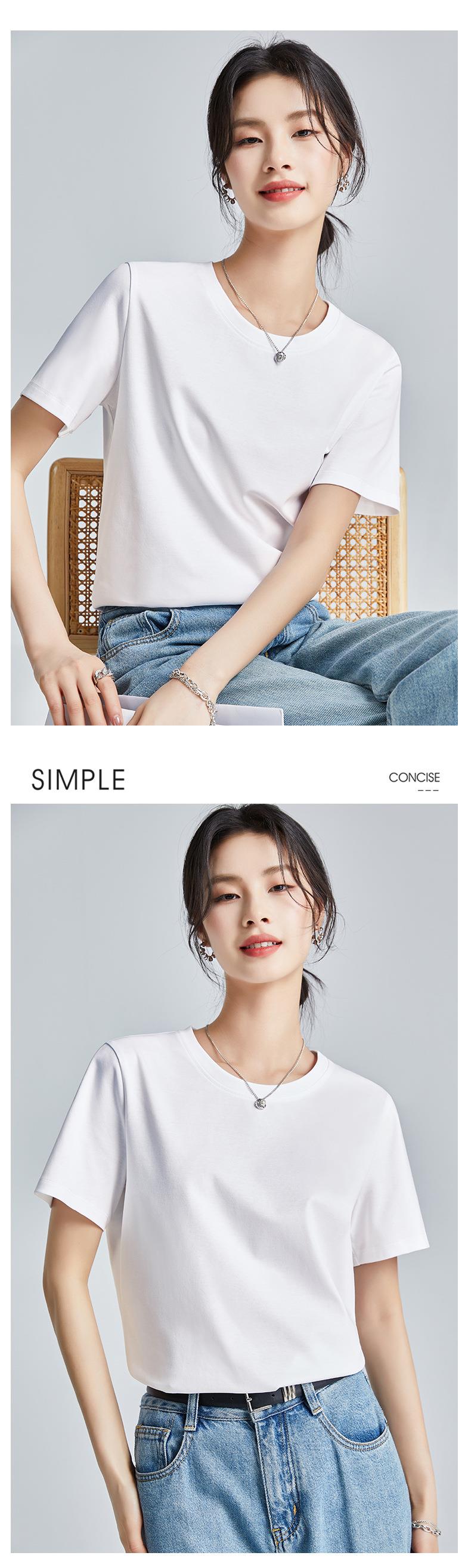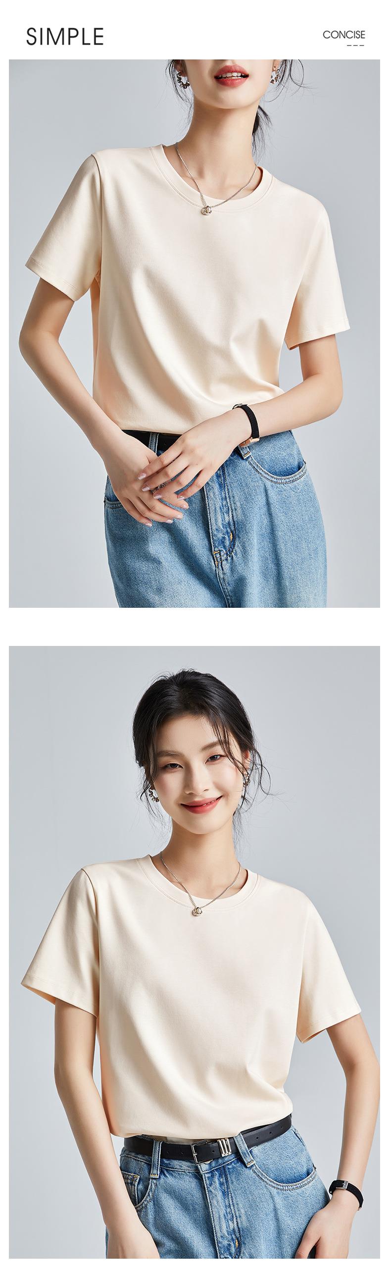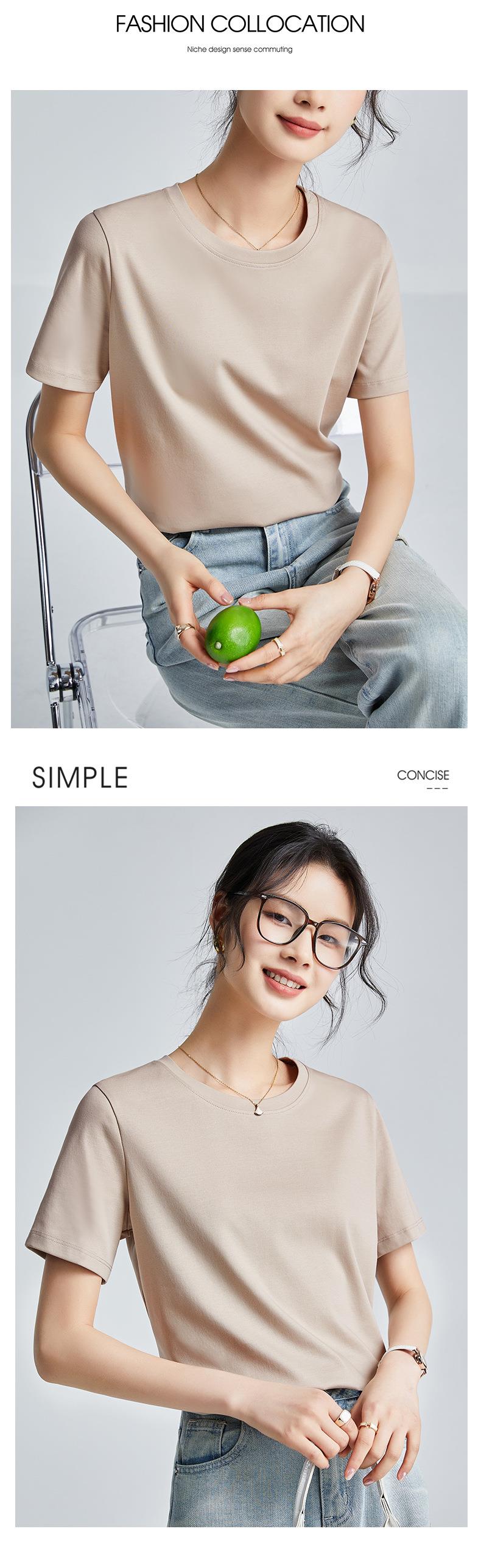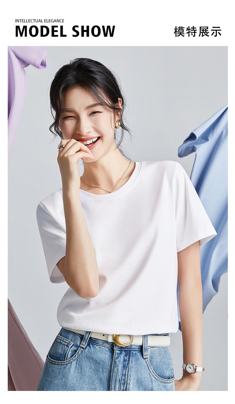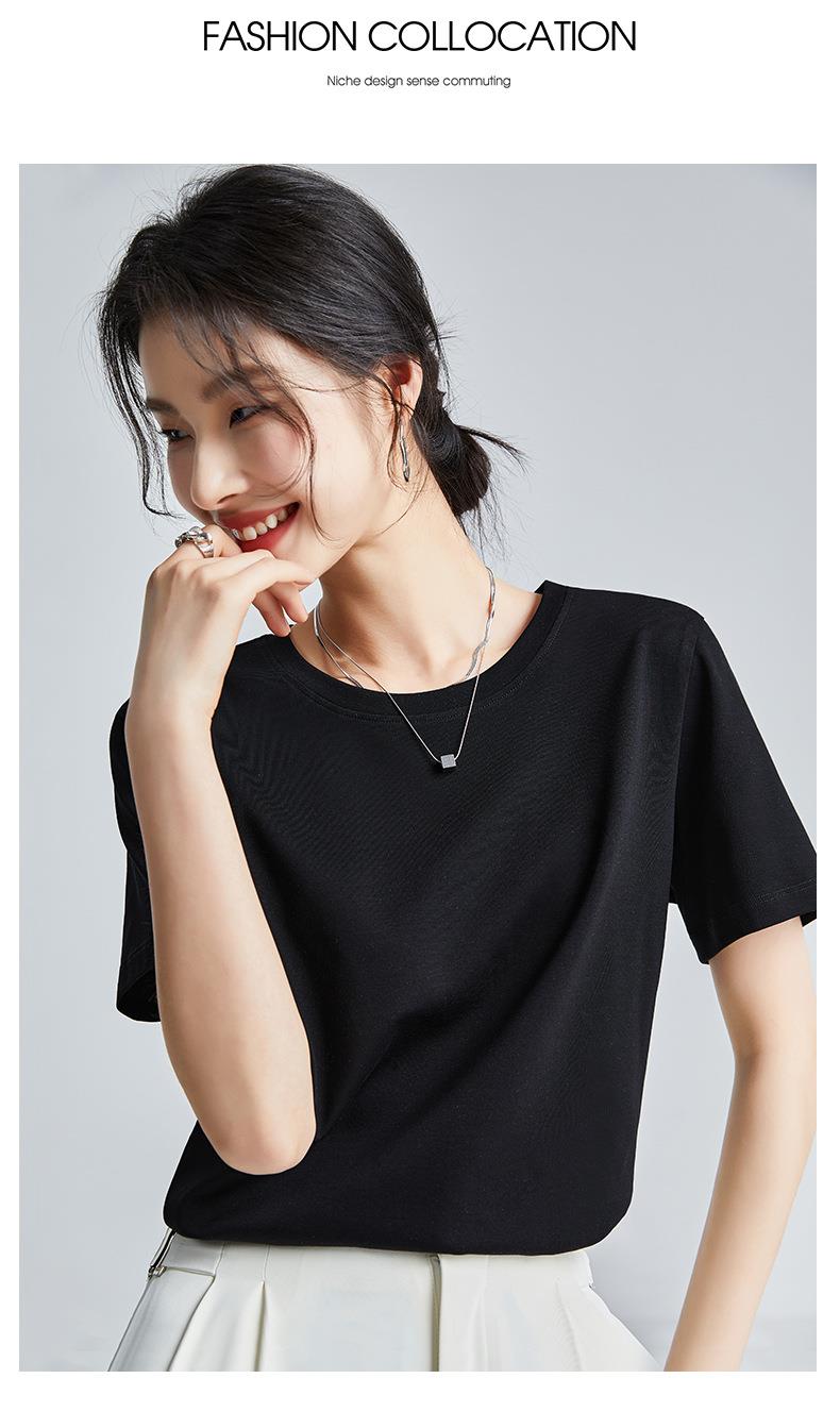 高品质丝光棉t恤女短袖2024新款宽松内搭外穿圆领液氨t恤打底衫
