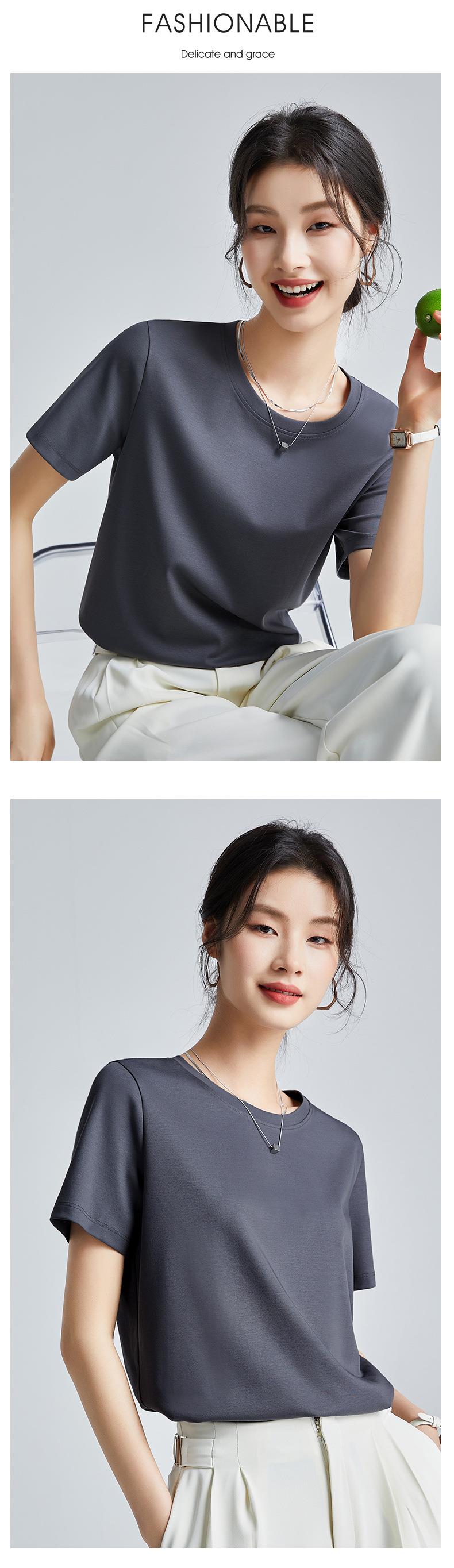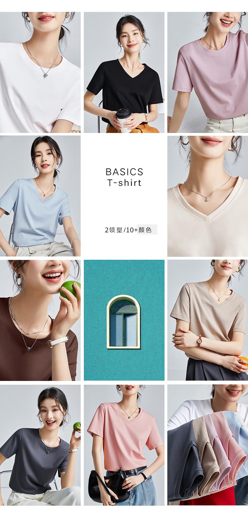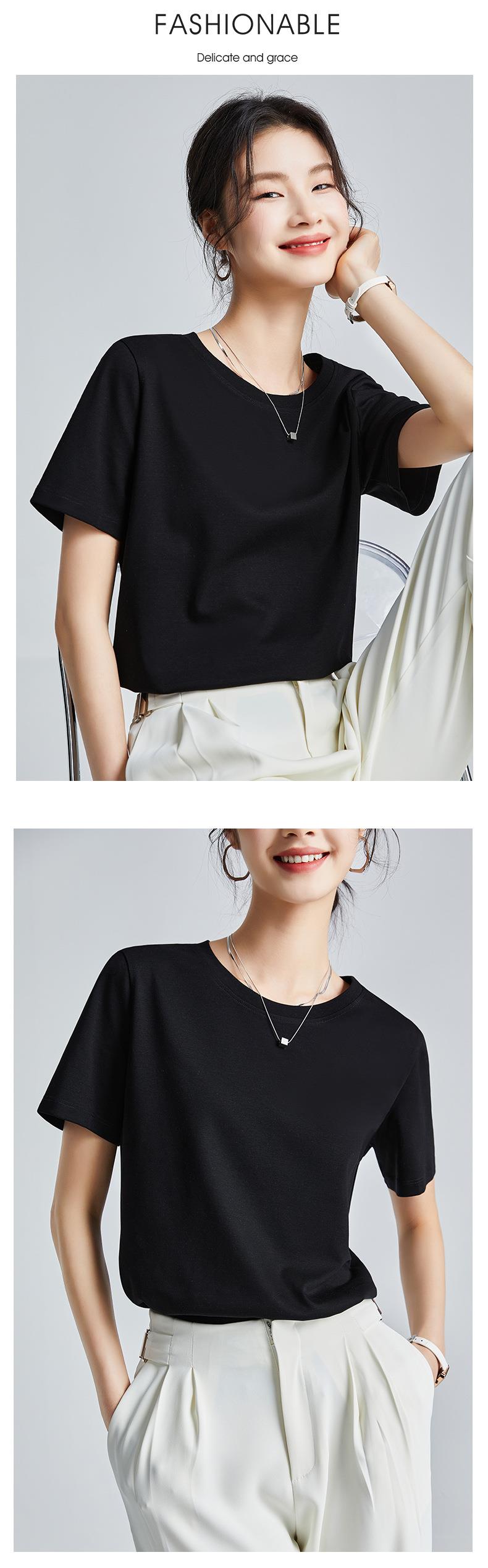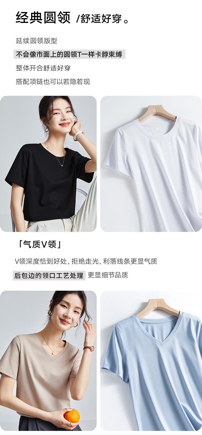 高品质丝光棉t恤女短袖2024新款宽松内搭外穿圆领液氨t恤打底衫