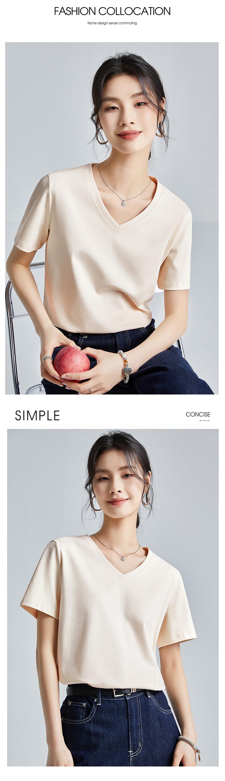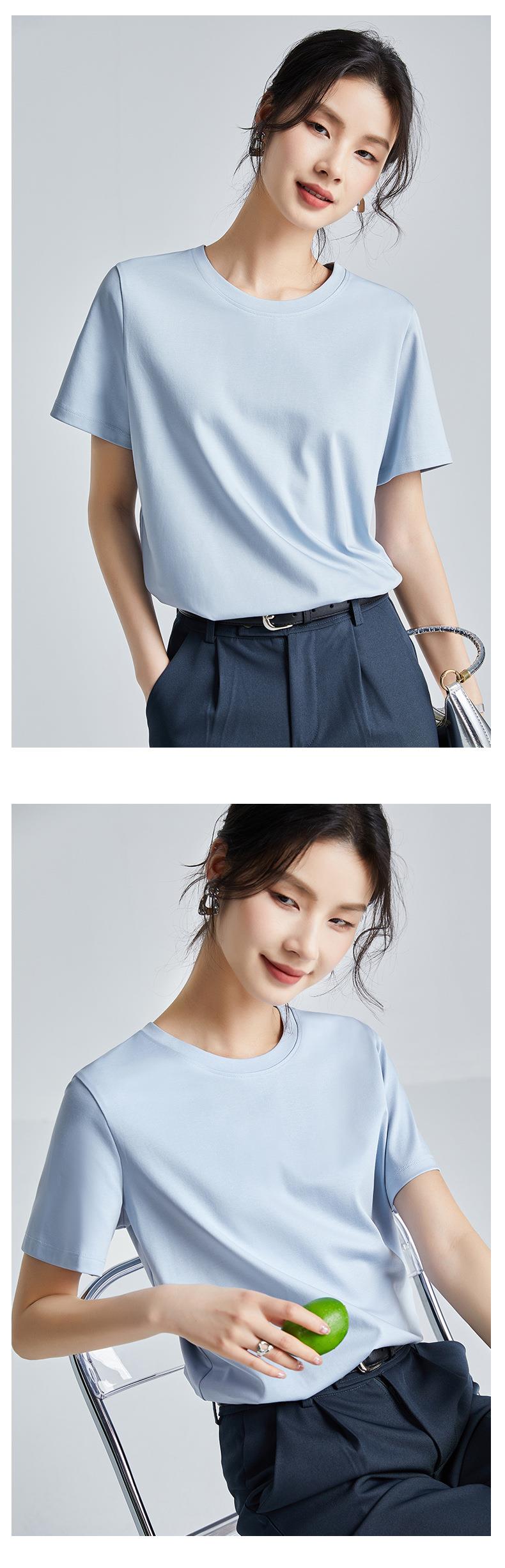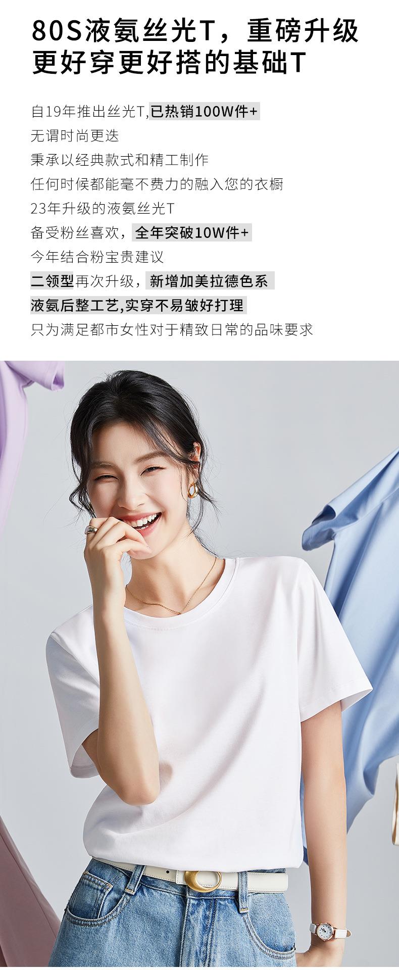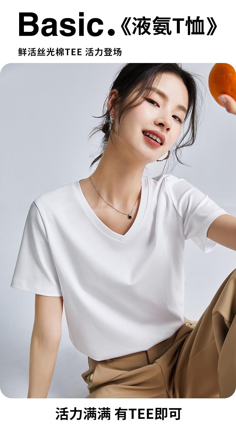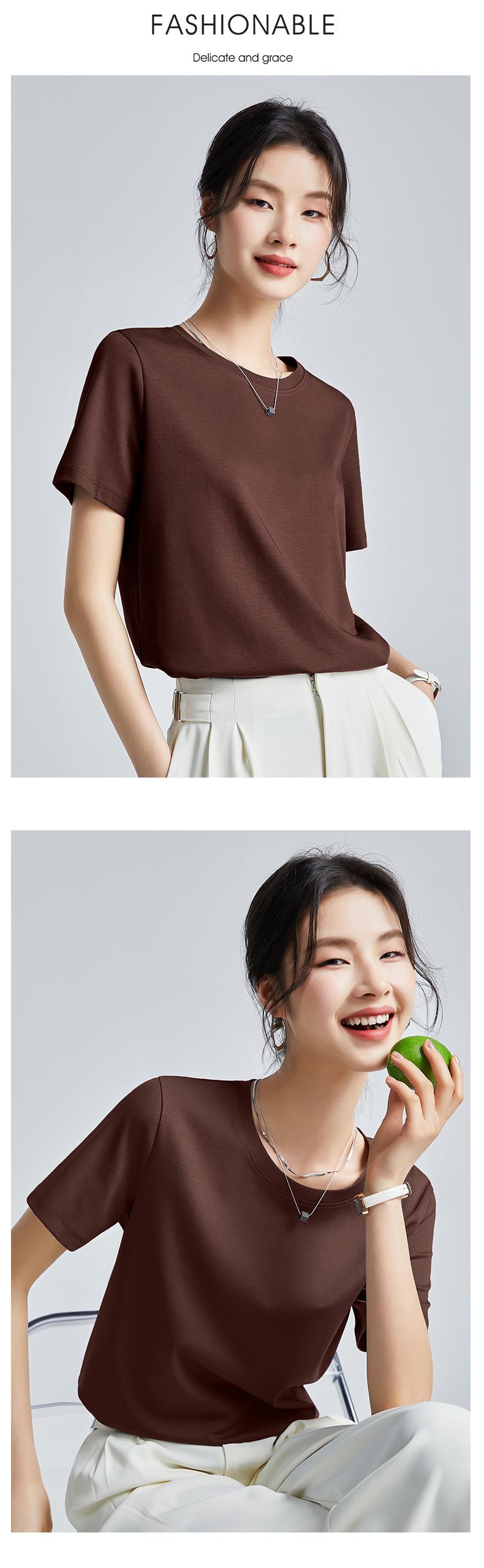 高品质丝光棉t恤女短袖2024新款宽松内搭外穿圆领液氨t恤打底衫