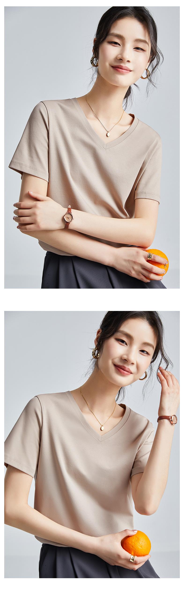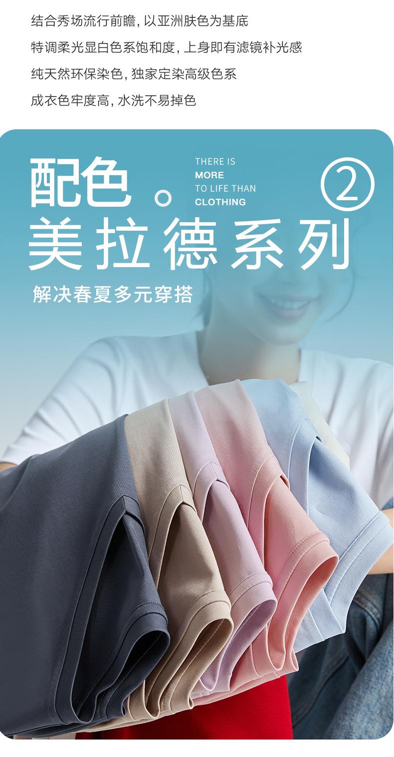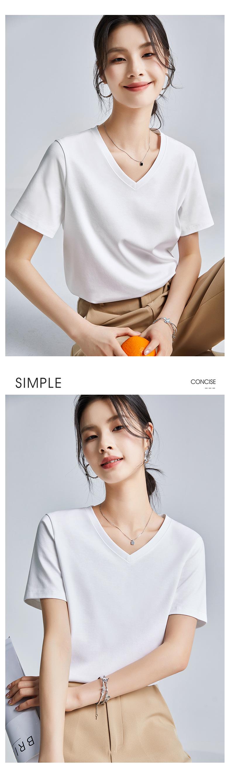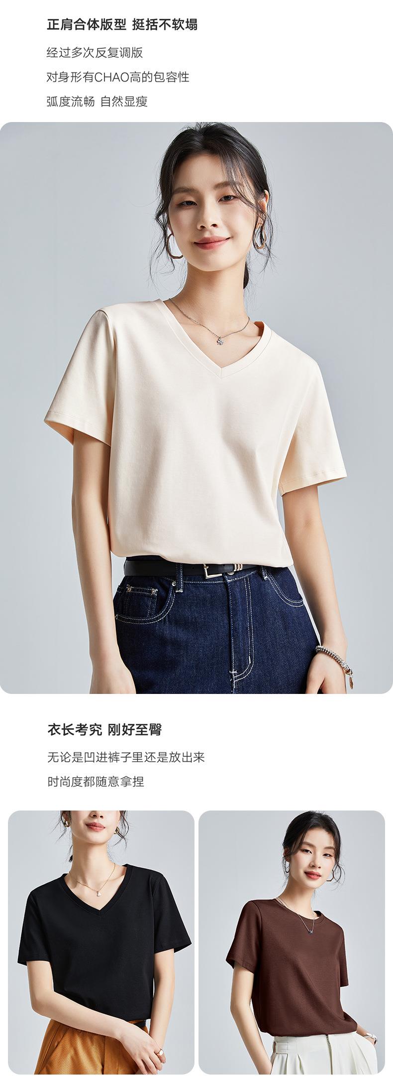 高品质丝光棉t恤女短袖2024新款宽松内搭外穿圆领液氨t恤打底衫
