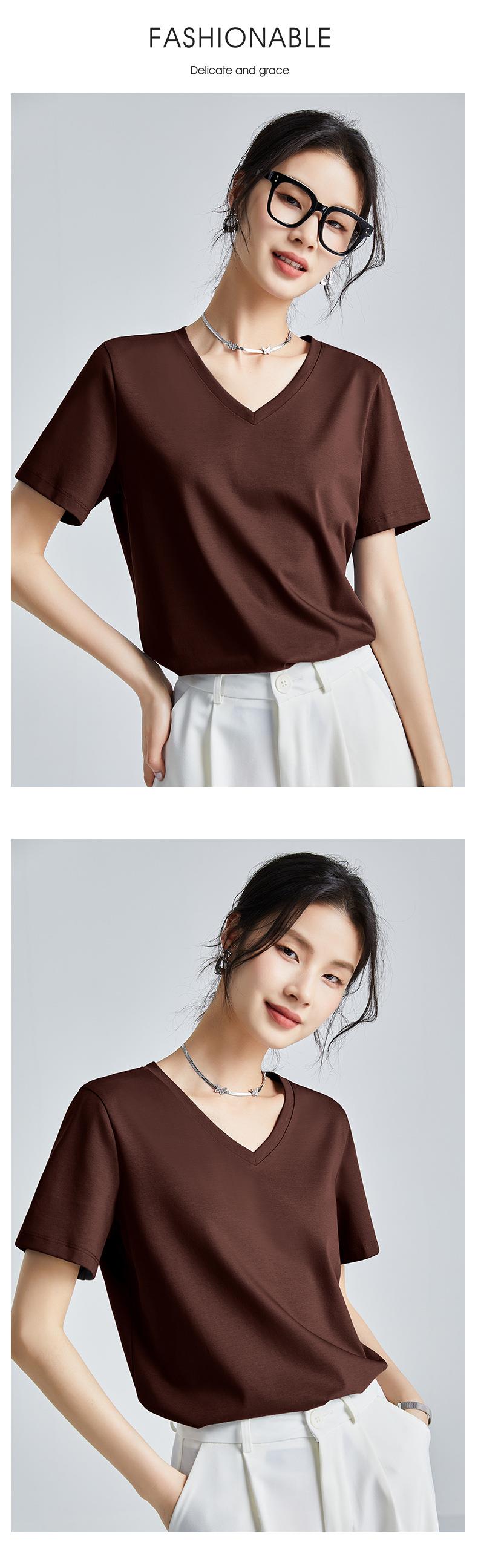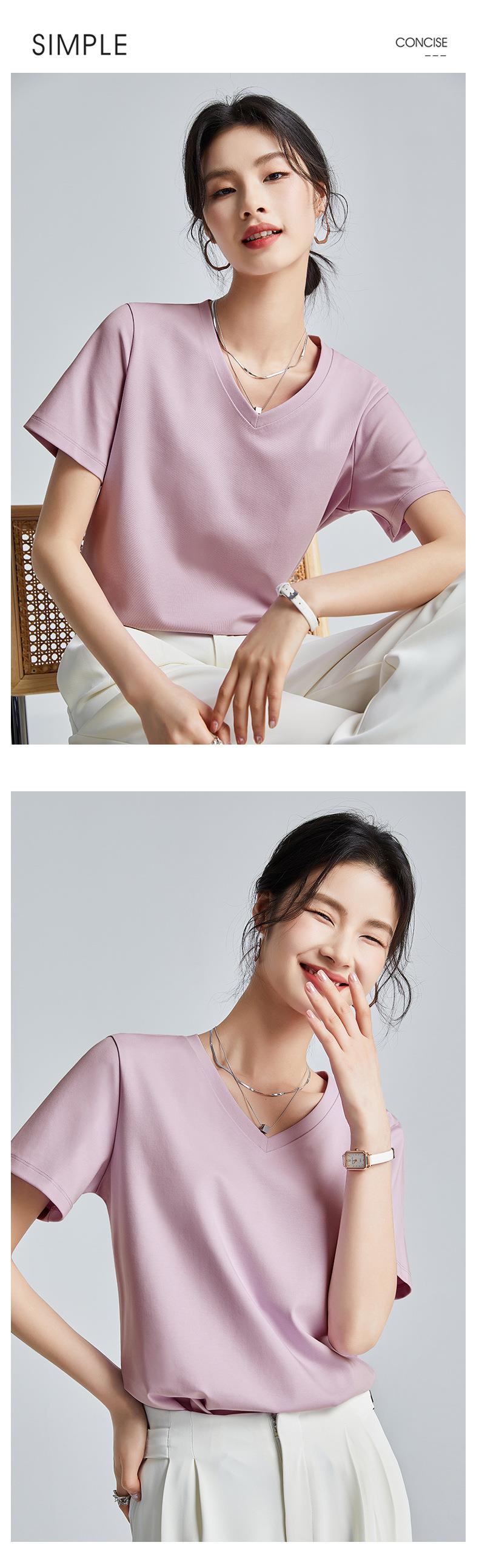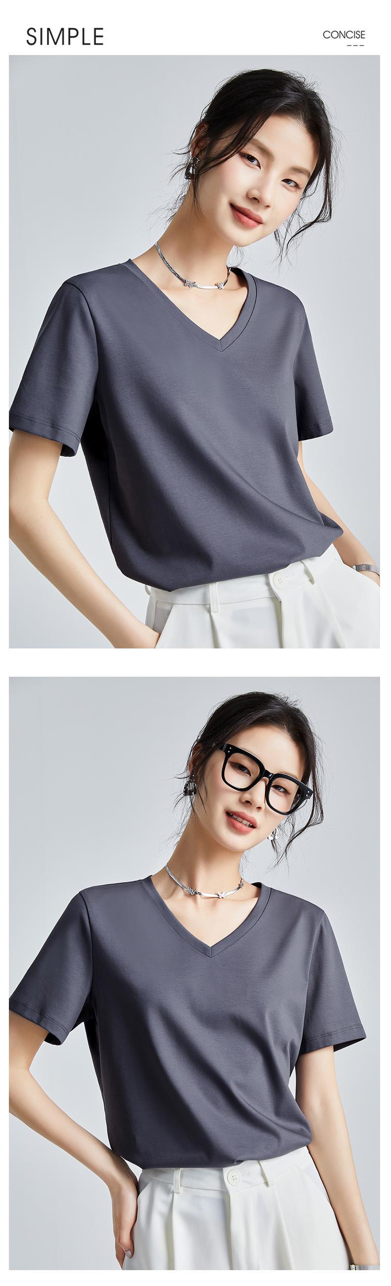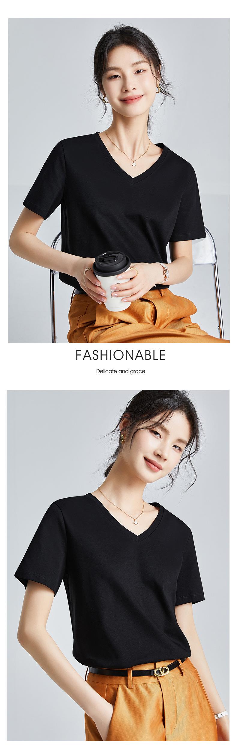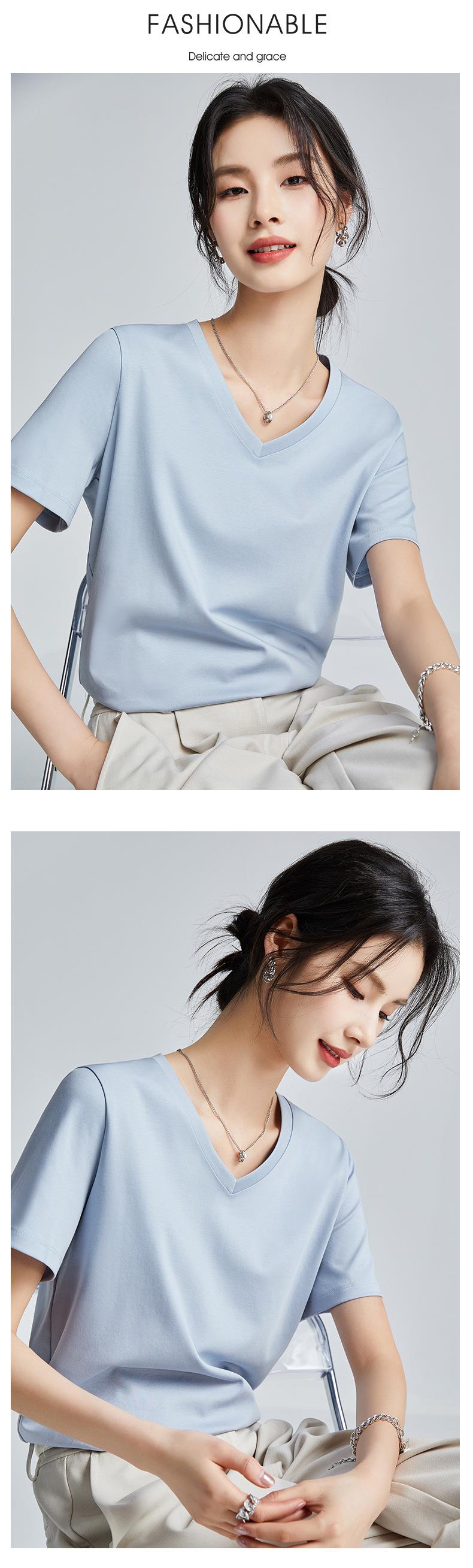 高品质丝光棉t恤女短袖2024新款宽松内搭外穿圆领液氨t恤打底衫