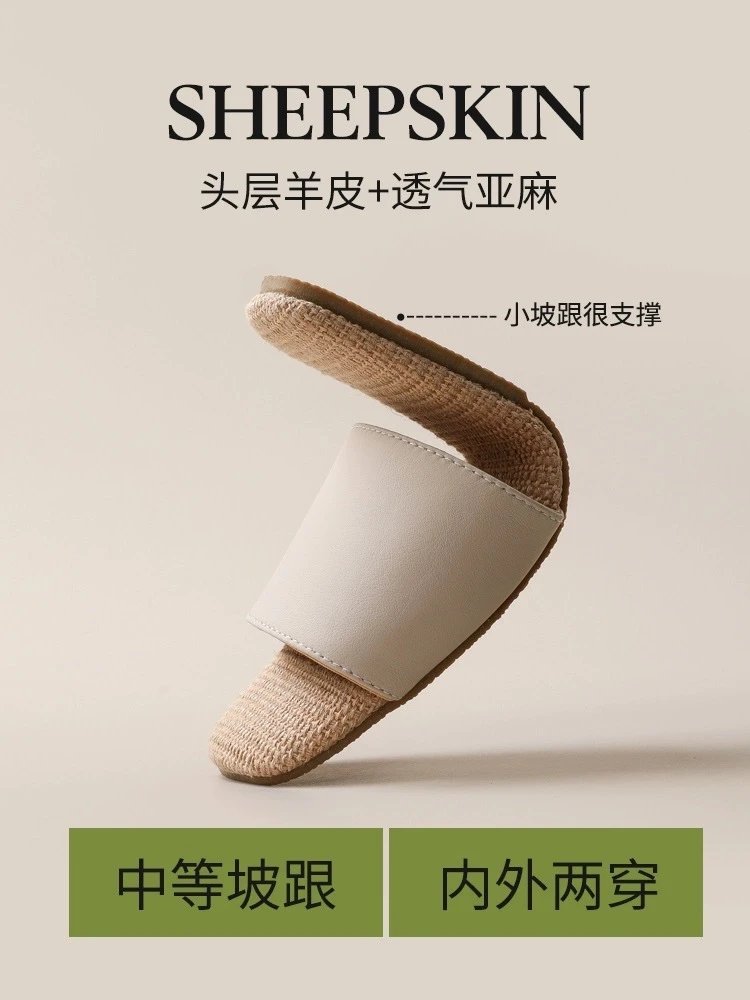 谁能拒绝四季羊皮亚麻拖呢?好穿不臭脚!