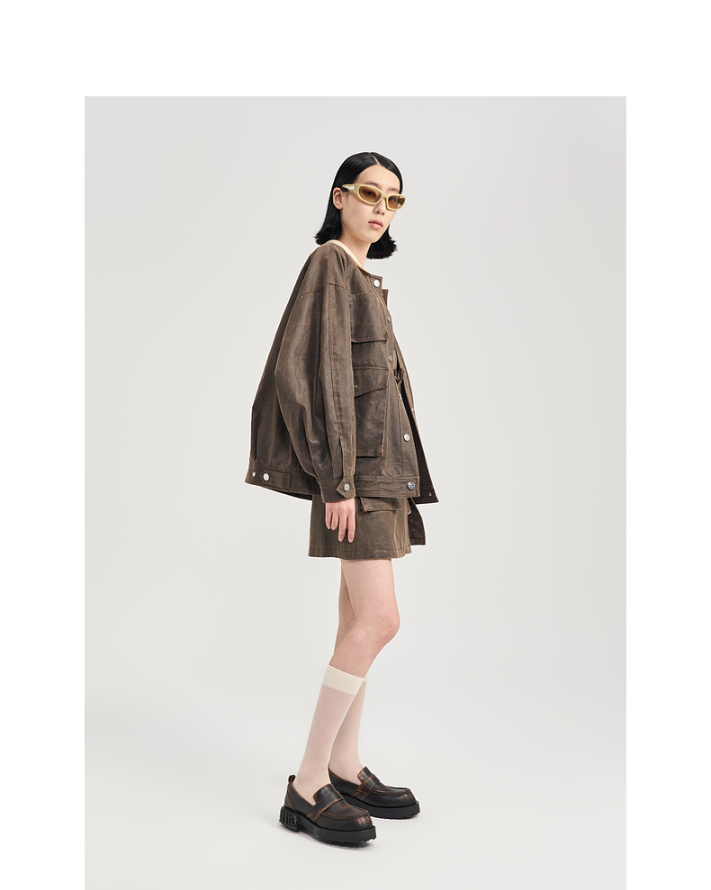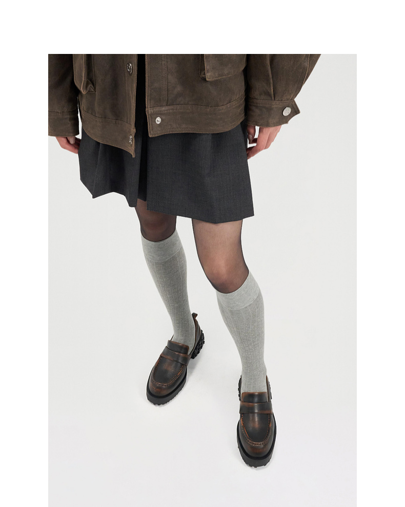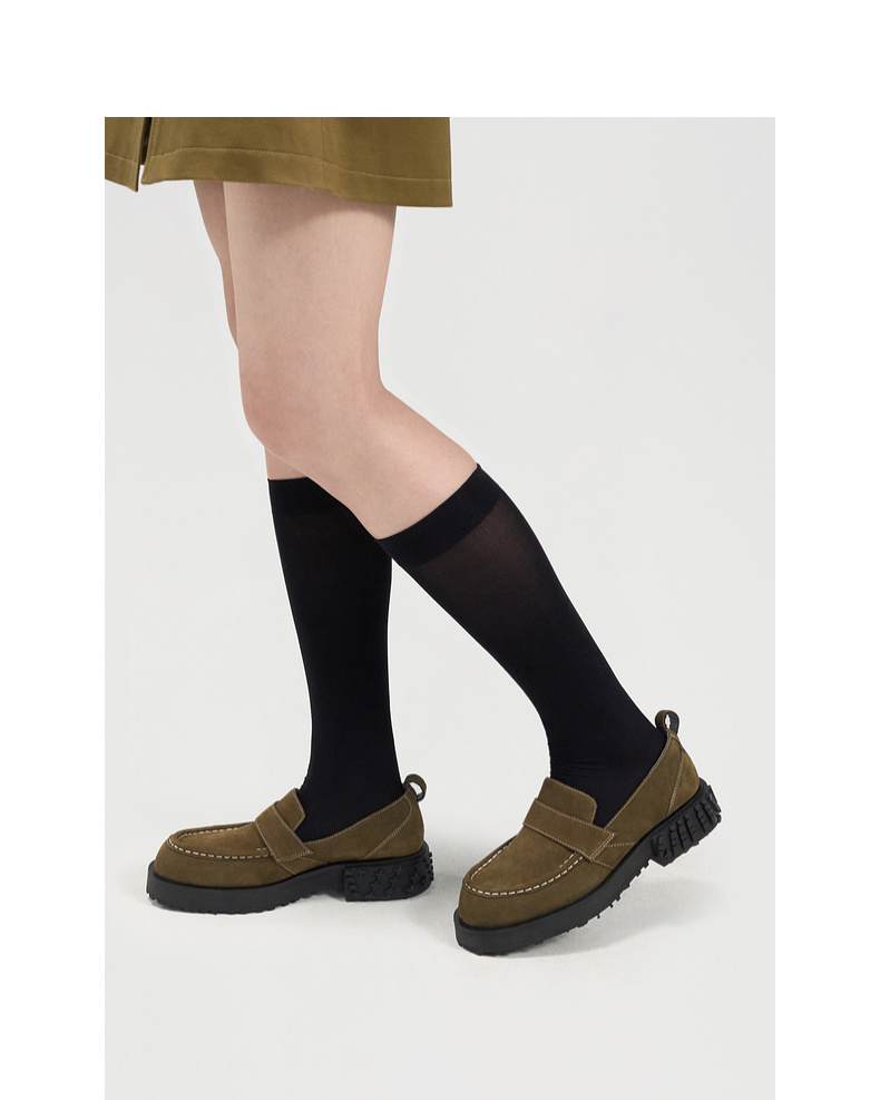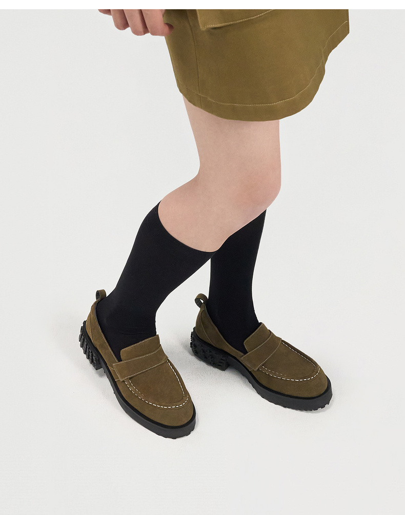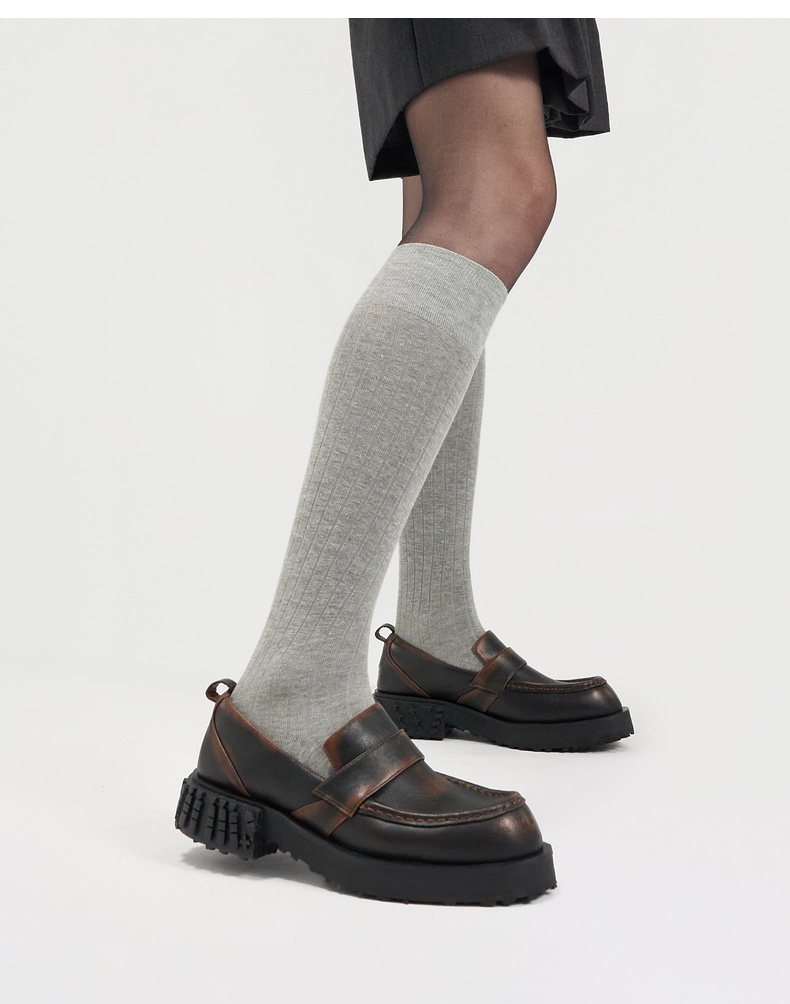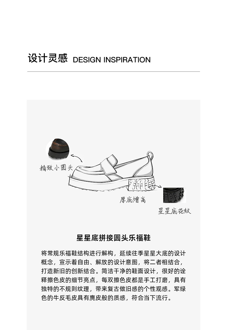 [捡漏价]lost in echo2024秋季新款通勤棕色星星底拼接圆头厚底乐福鞋单鞋