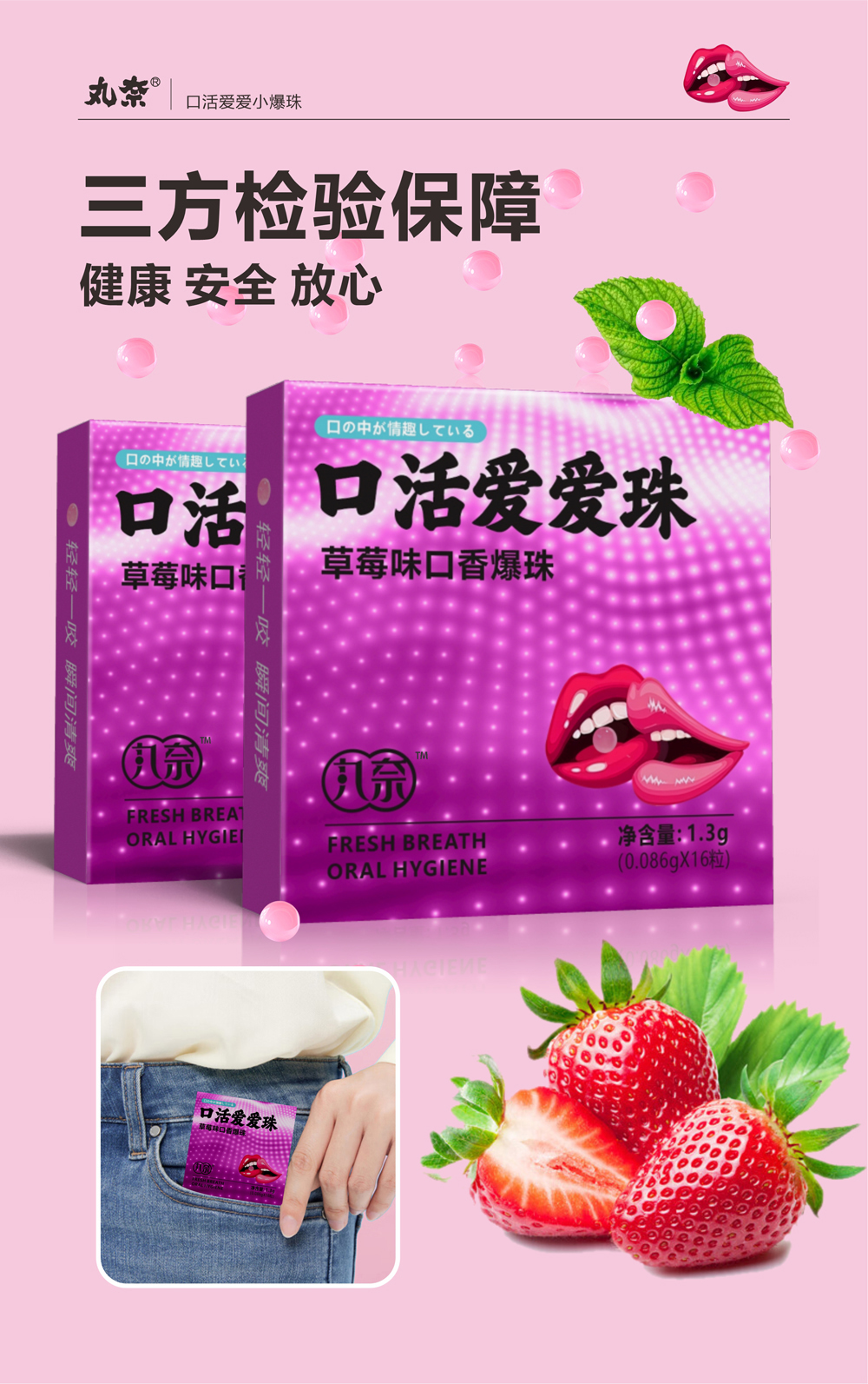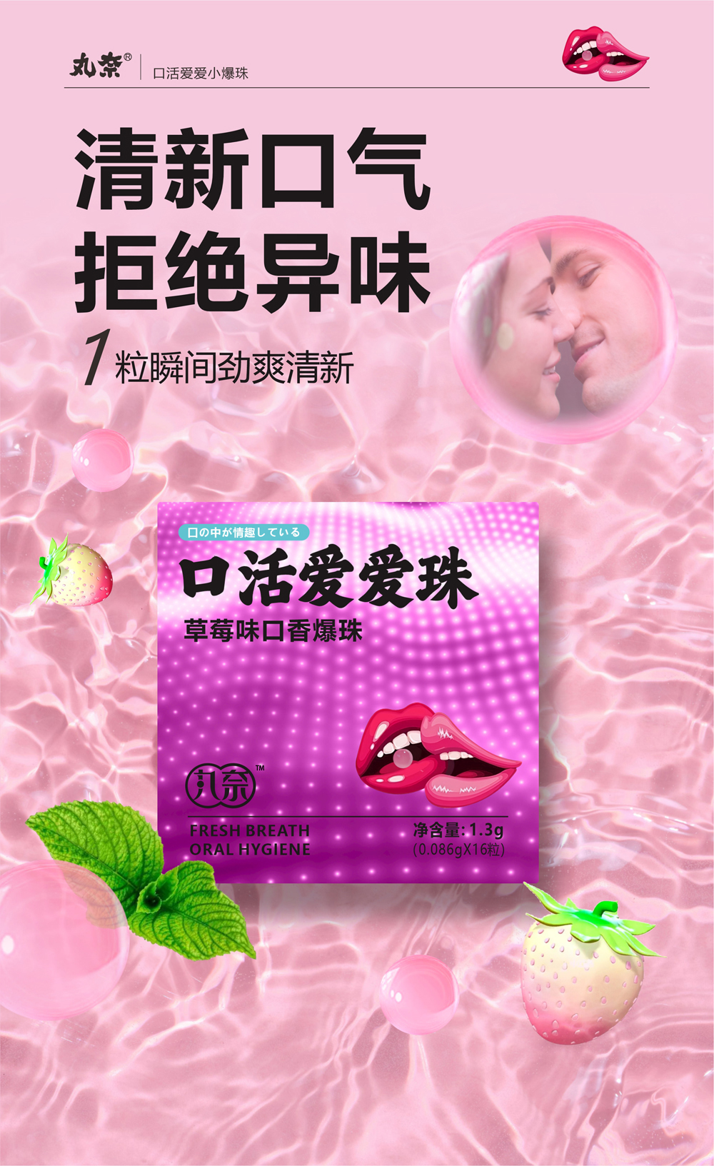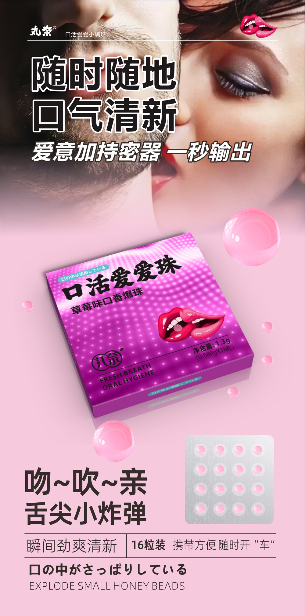 丸奈口香爆珠 草莓味儿夫妻房事口交爱爱珠 成人情趣口爱液用品
