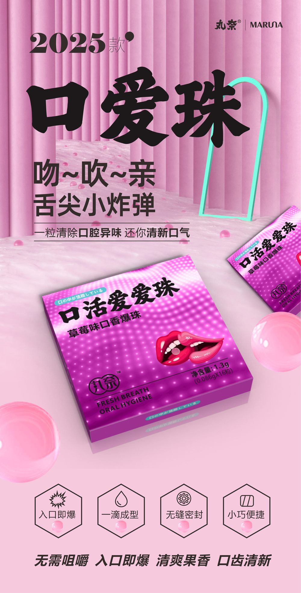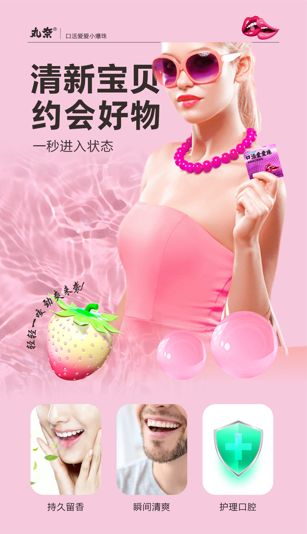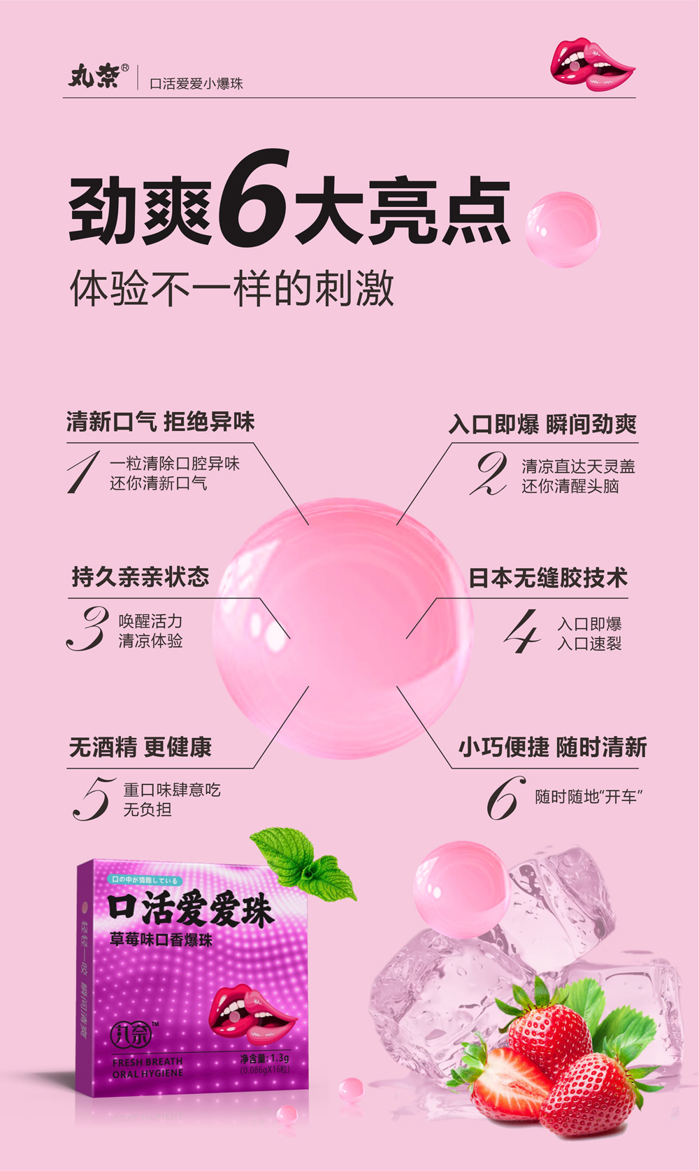 丸奈口香爆珠 草莓味儿夫妻房事口交爱爱珠 成人情趣口爱液用品