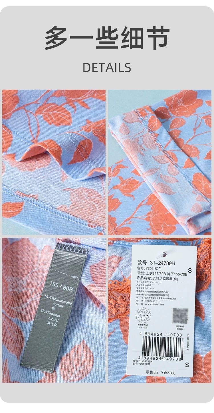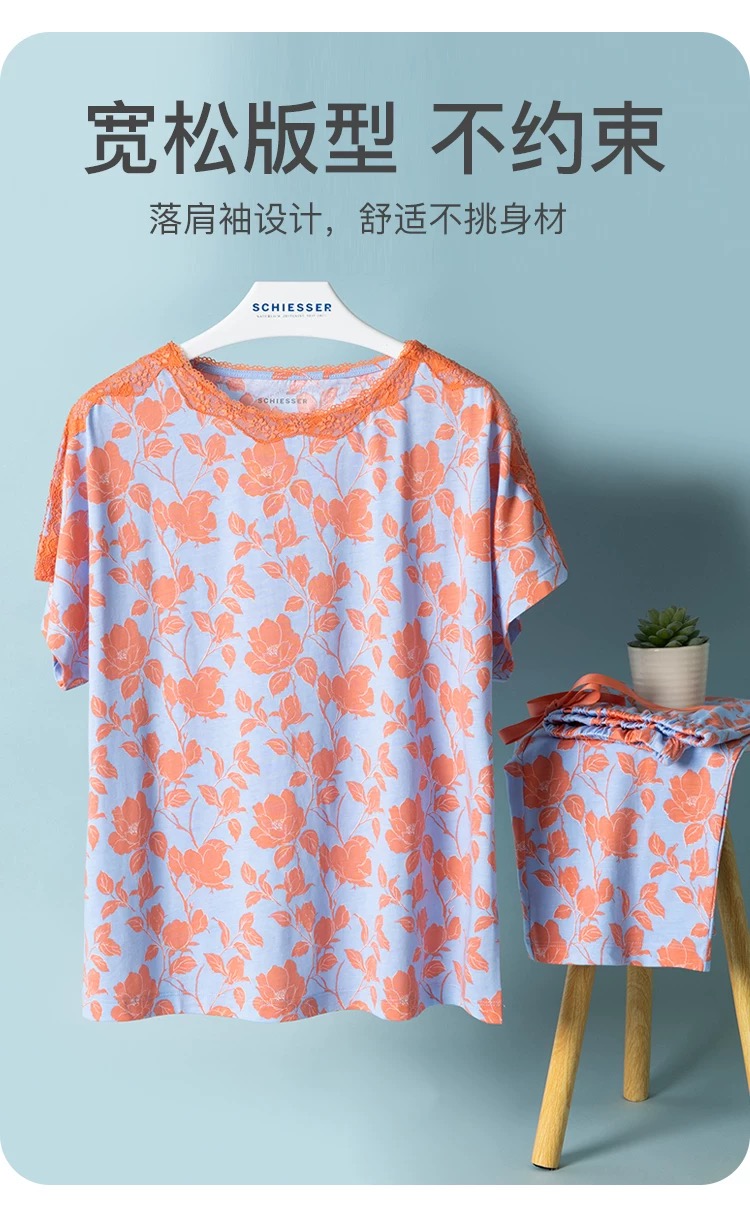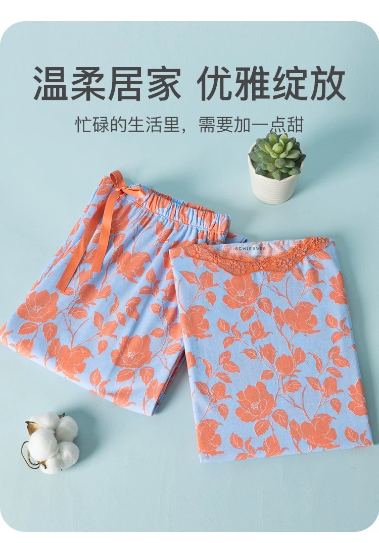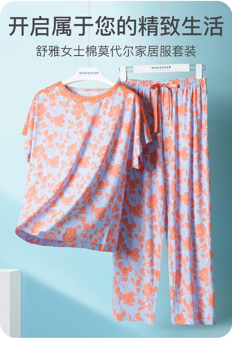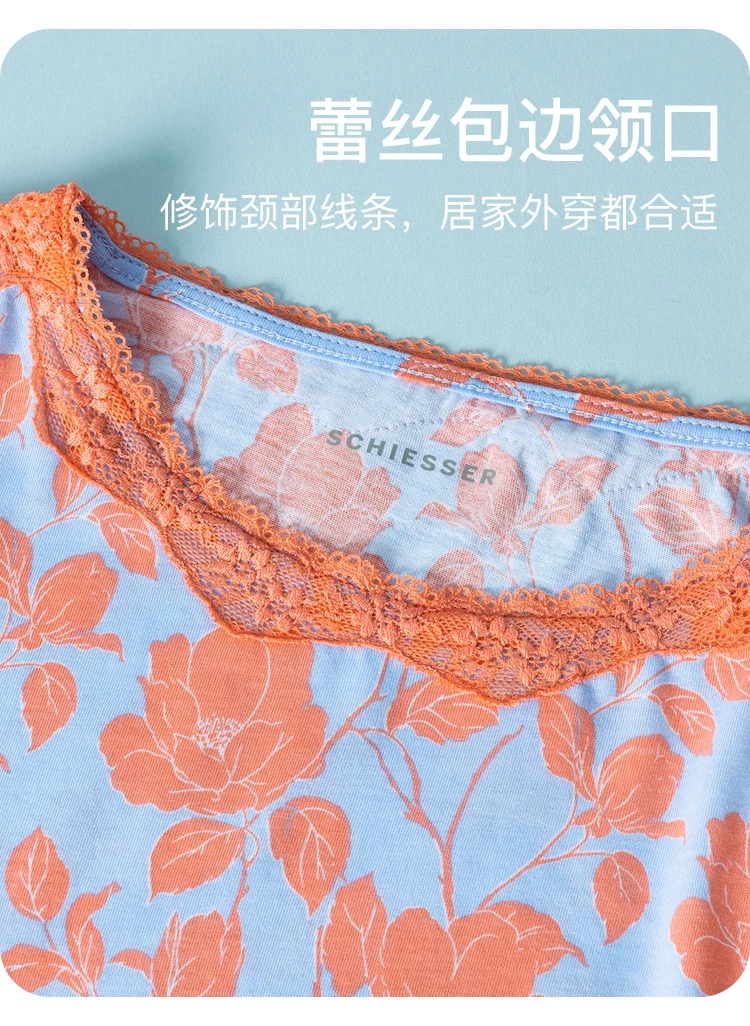 【32S棉莫单面布】SCHIESSER德国舒雅女士七分袖套装32S棉莫单面布九分袖套装31/24789H