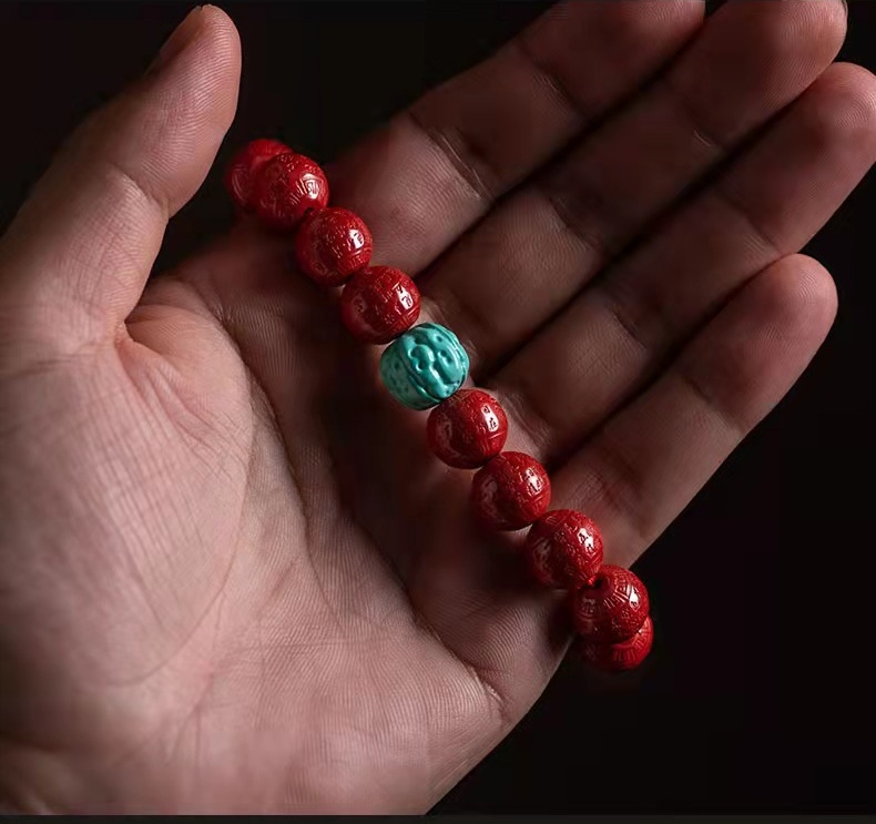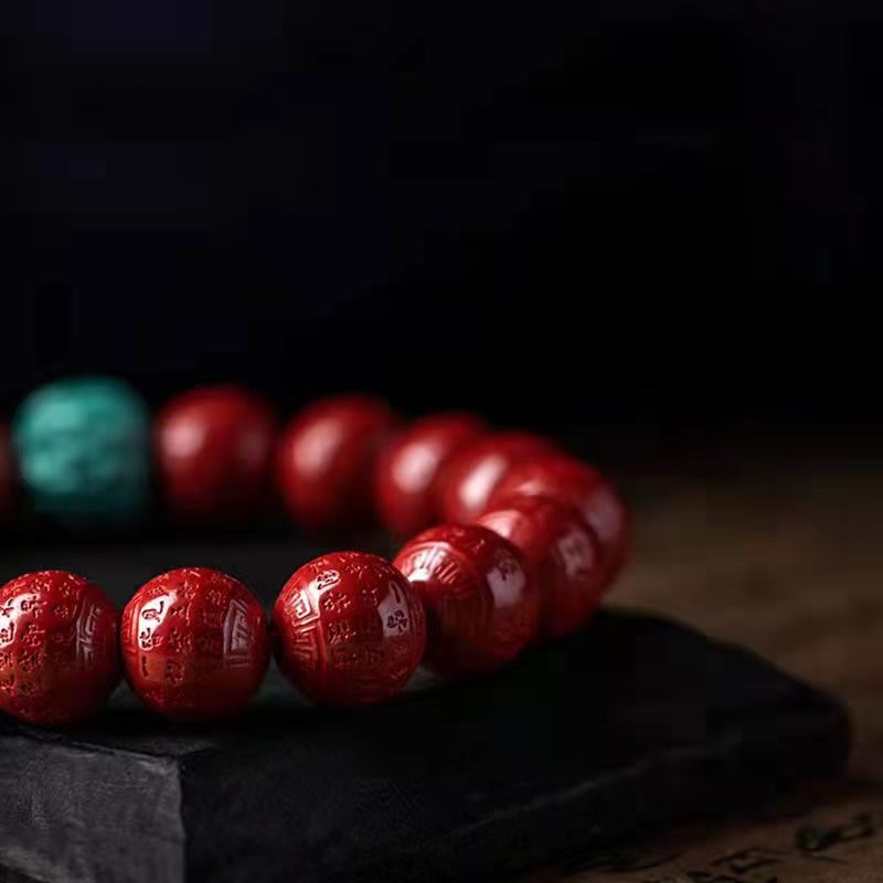 朱砂 绿松石手链10mm