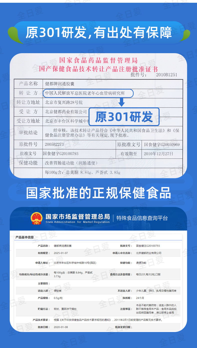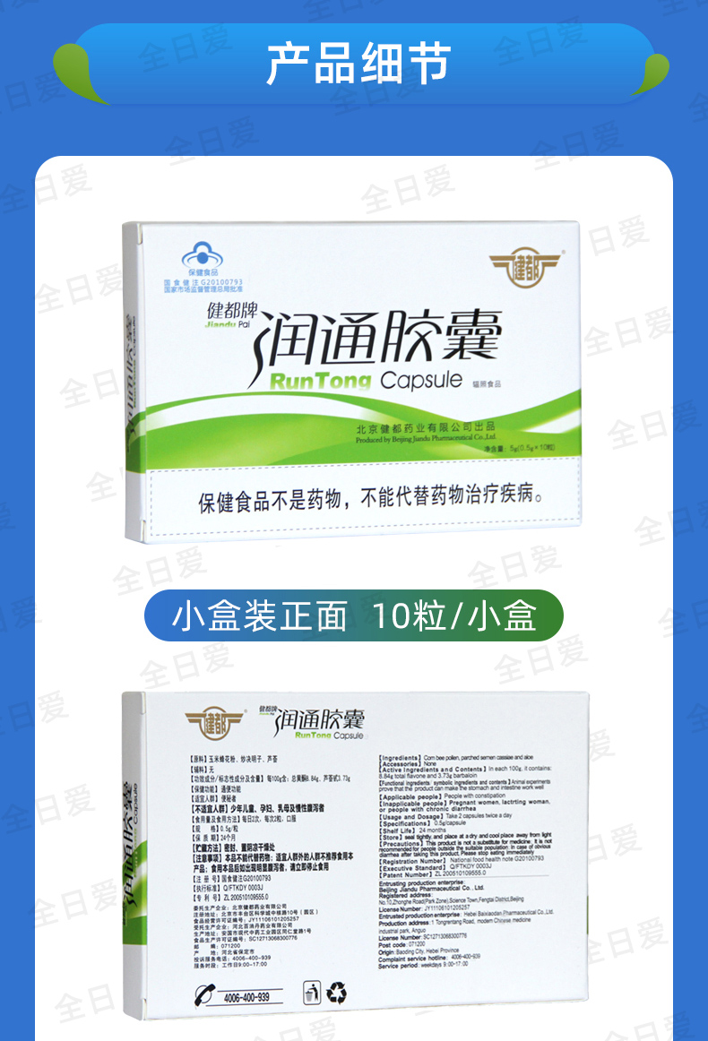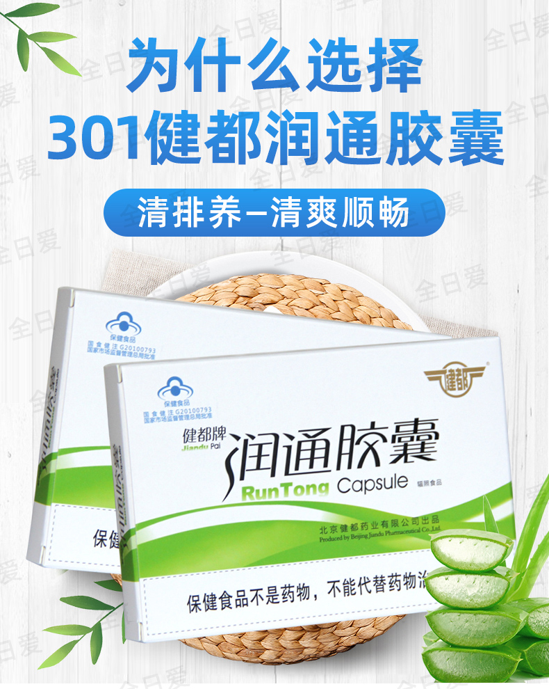 健都牌润通胶囊 温和通便 成人男女中老年 6小盒/大盒 301医院研发