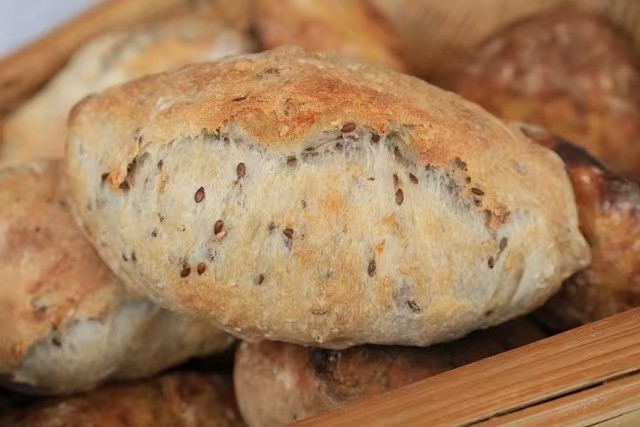 原料:有机面粉,黑麦面粉,纯净水、天然酵母、亚麻籽、黑芝麻、核桃仁、少量盐