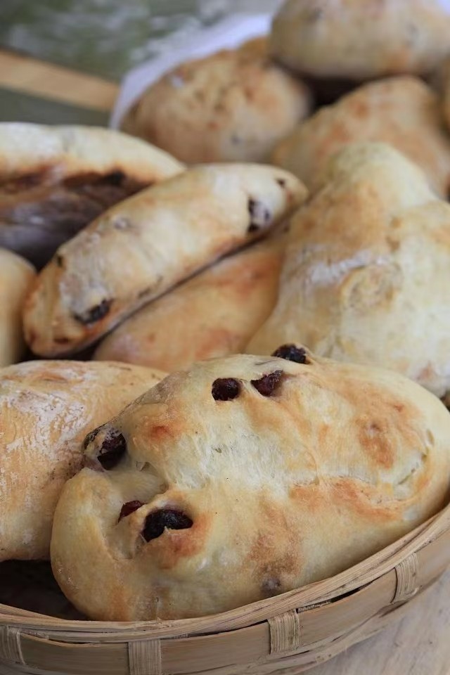 2、柴火高温短时烤,外脆里嫩,烘烤让面包表层有活性炭层,更香、脾胃更好运化