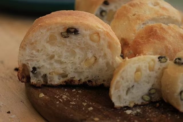 原料:有机面粉,橄榄油,纯净水,天然酵母,粉盐,黑豆,松仁