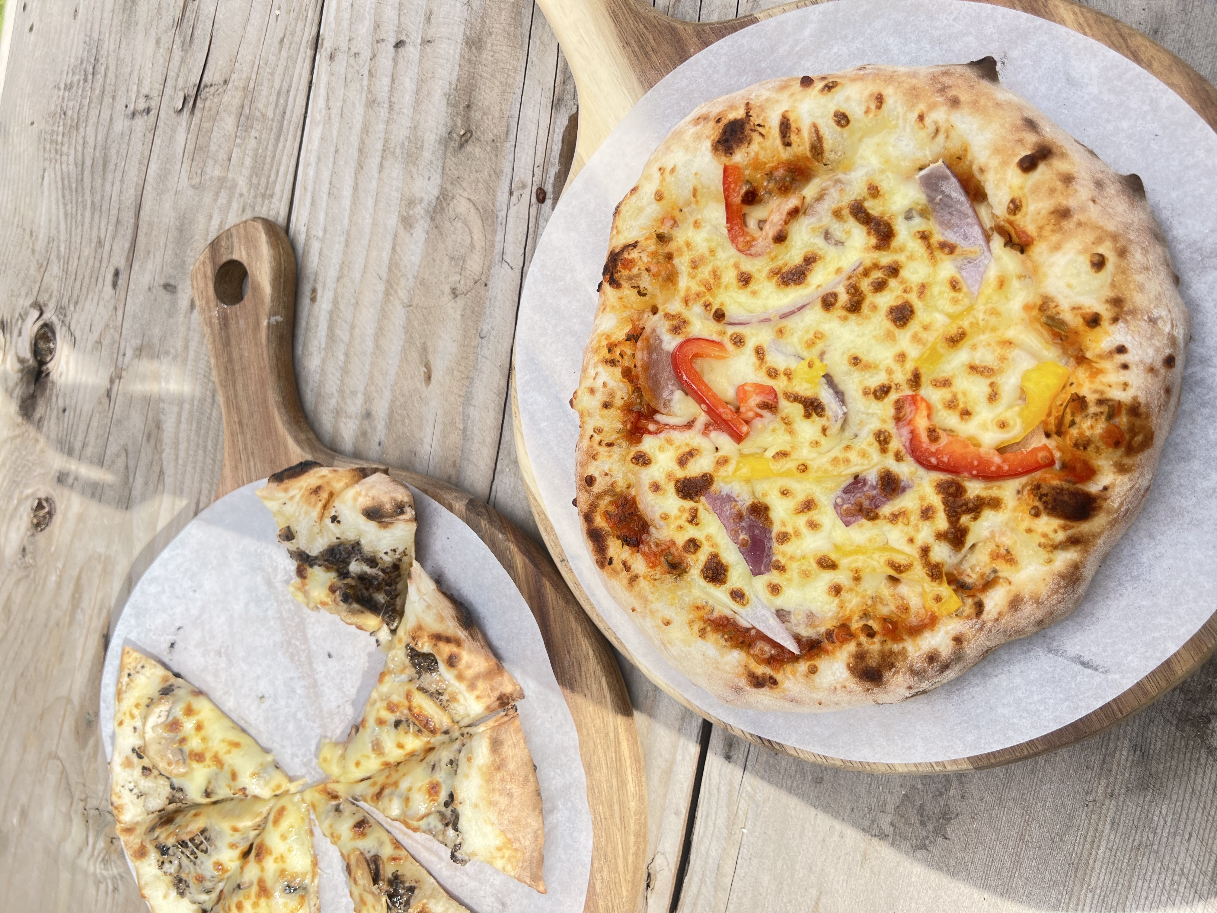 松露酱披萨(咸):有机面粉、天然酵母、少量粉盐、松露酱、口蘑、彩椒,芝士碎